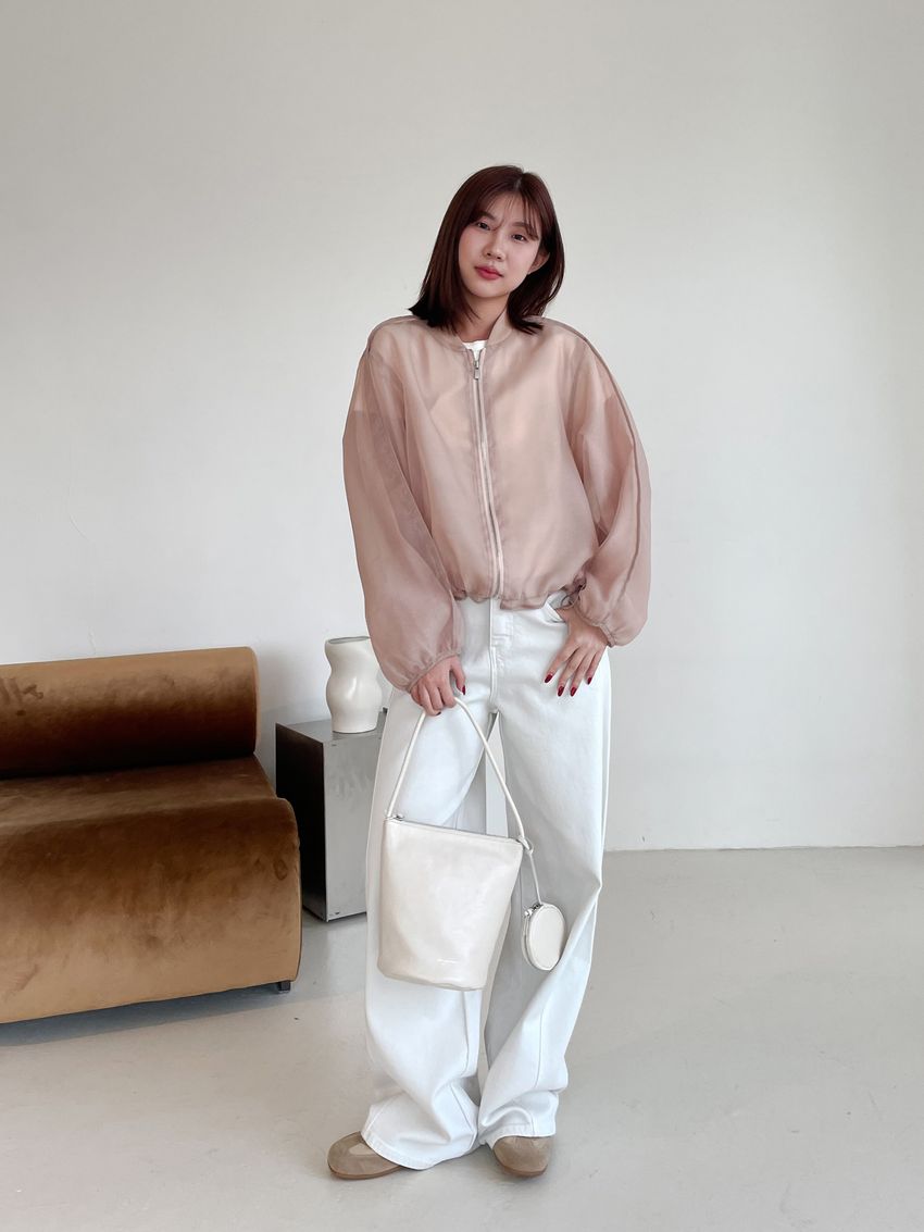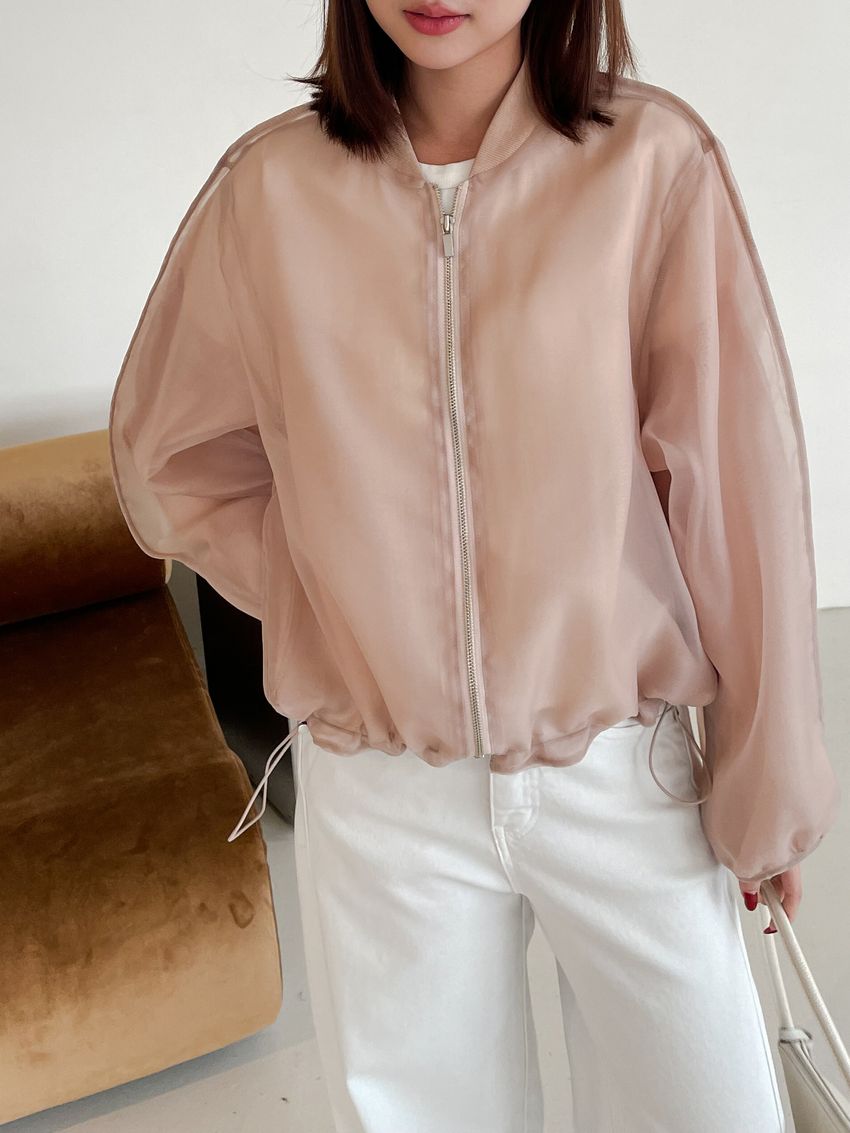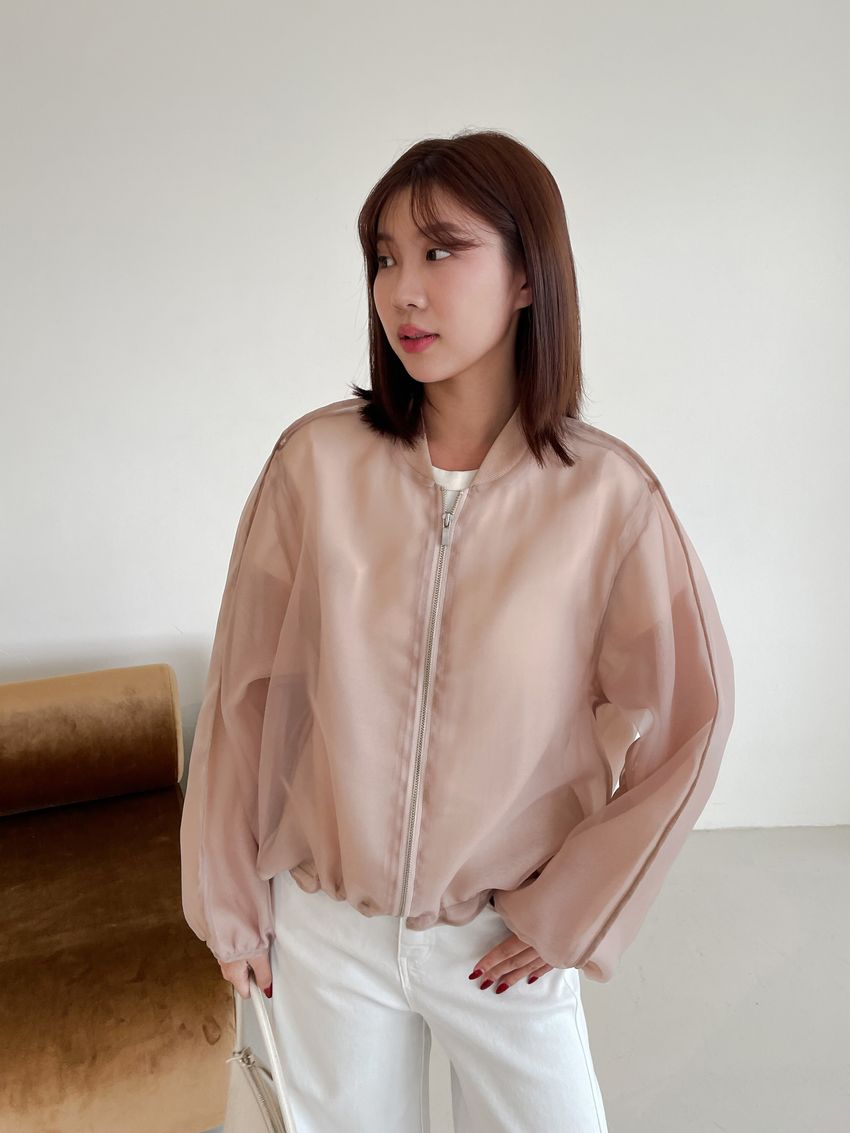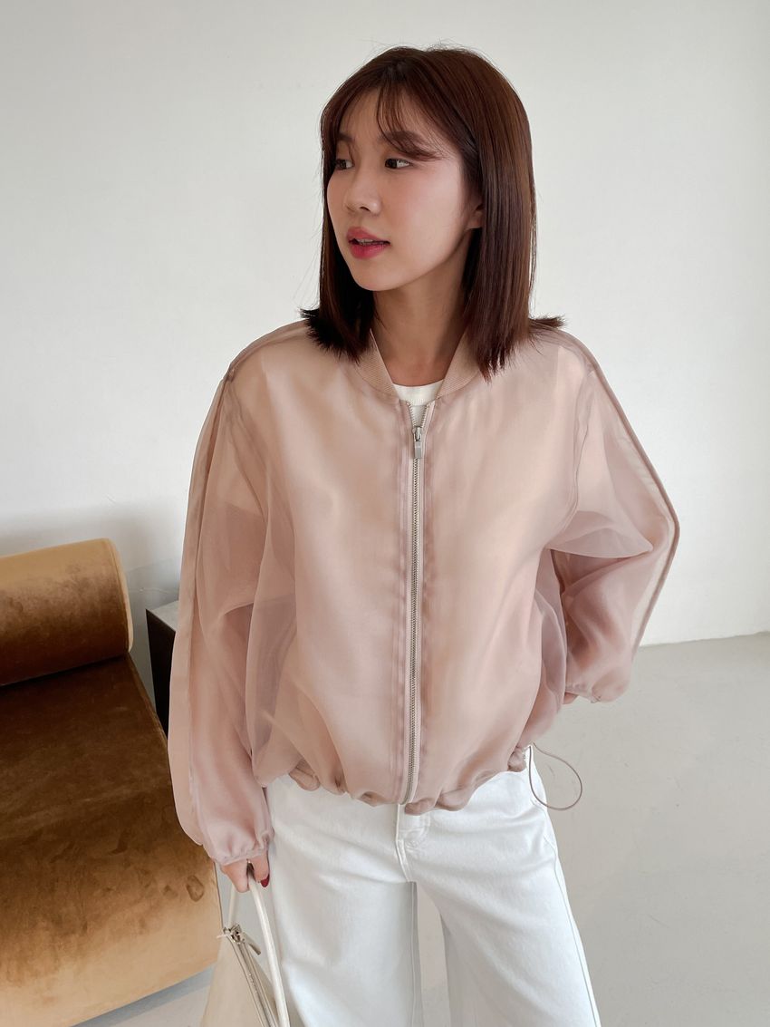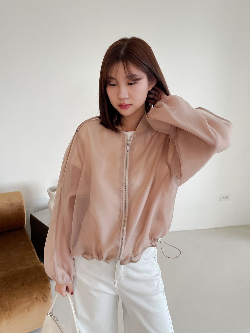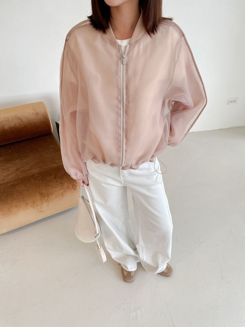 > Connie推薦款!雙層透紗拉鍊棒球外套(直播款)