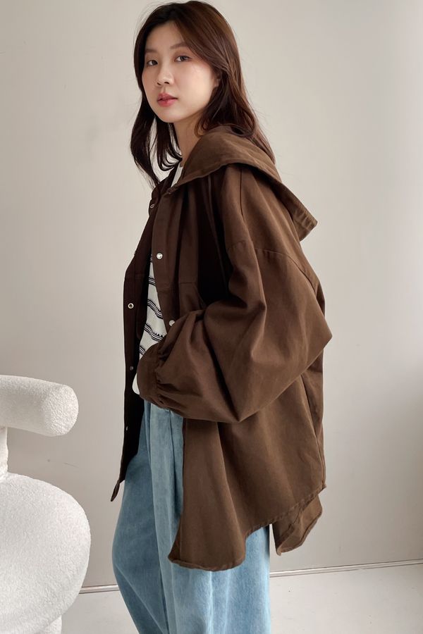 Connie推薦款!連帽立口袋壓釦襯衫外套