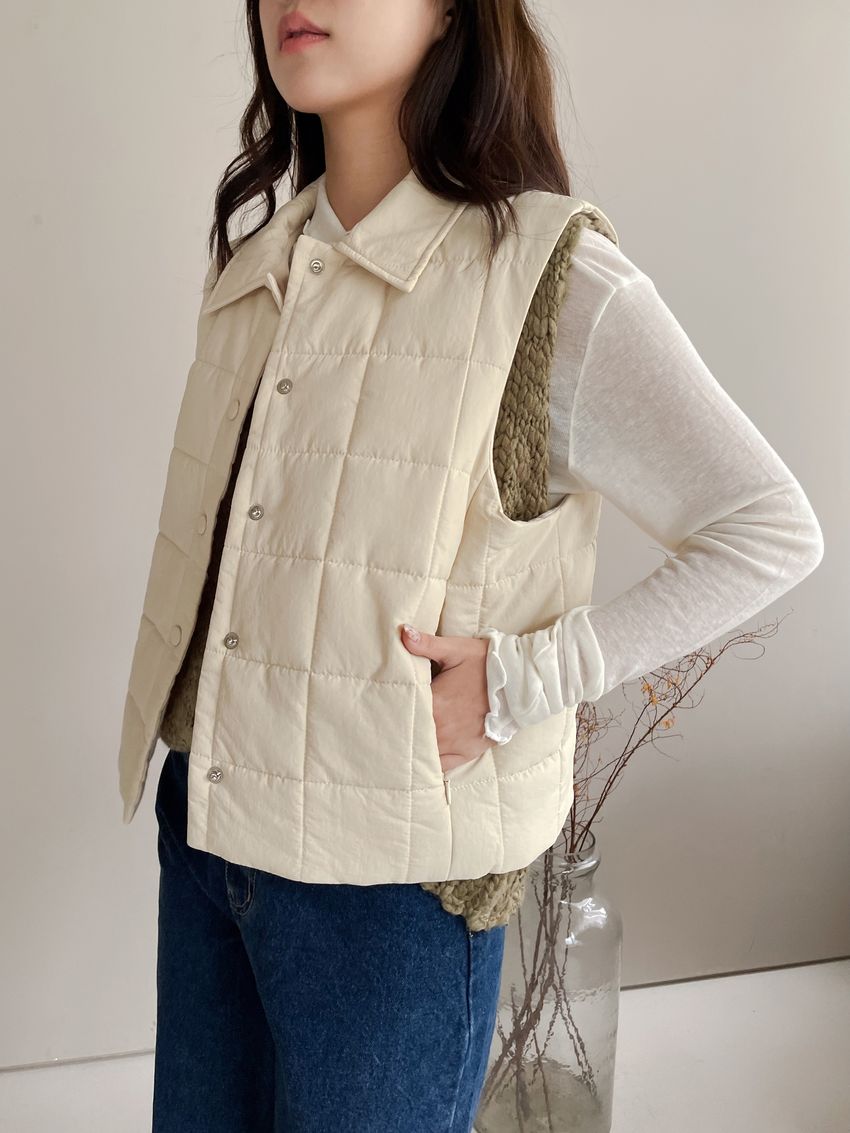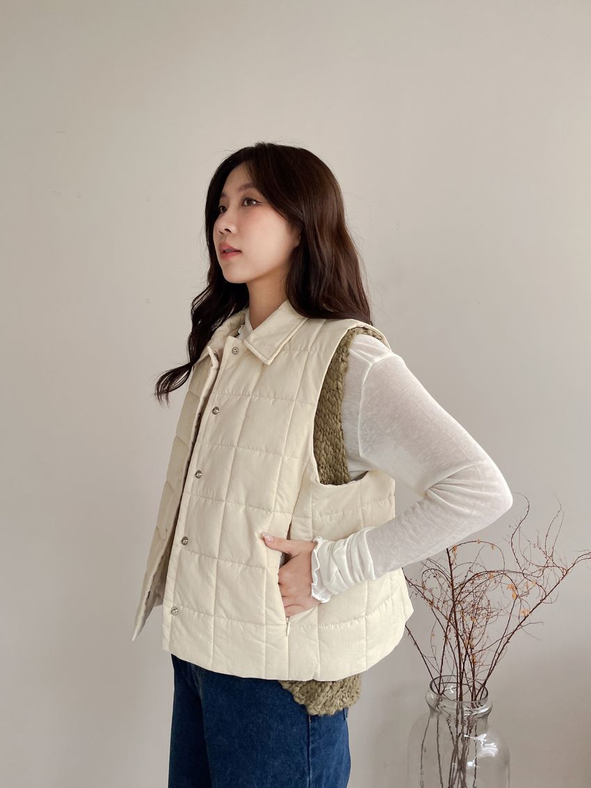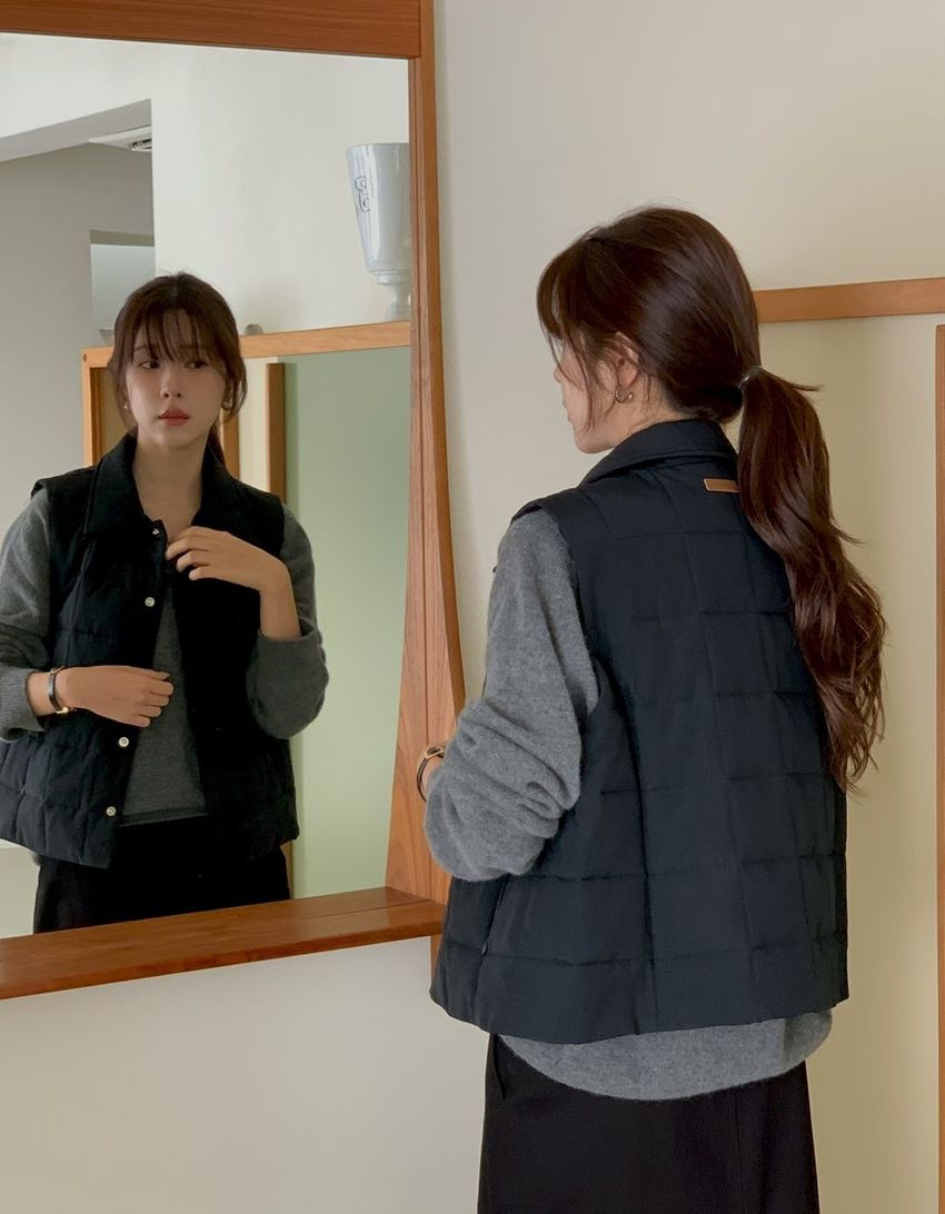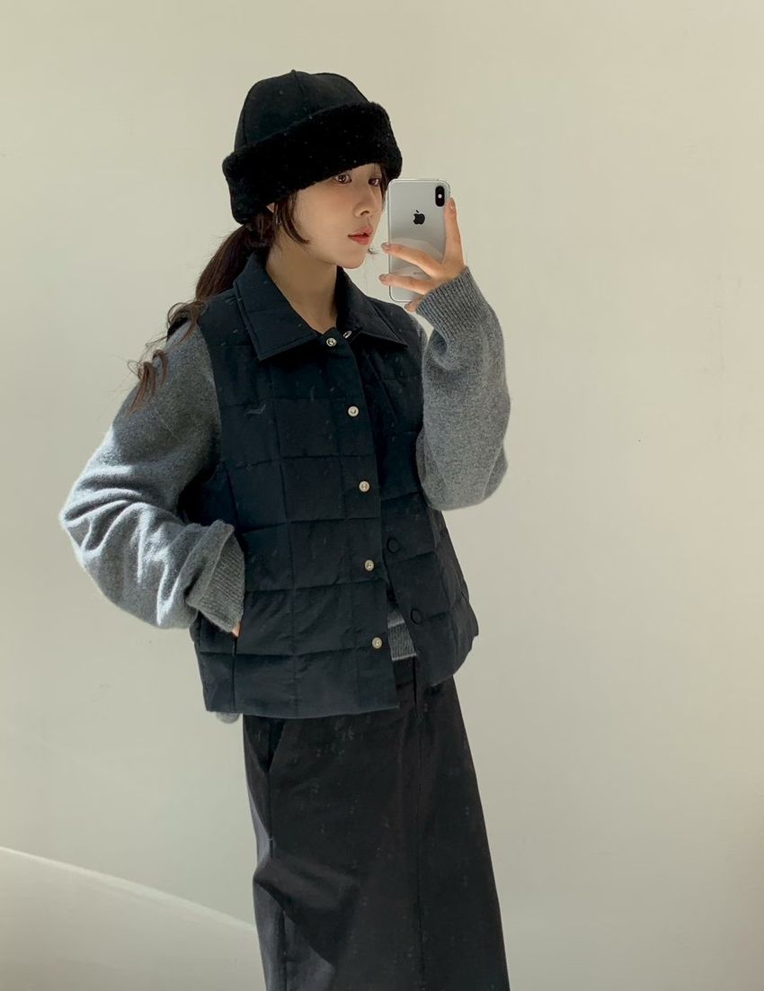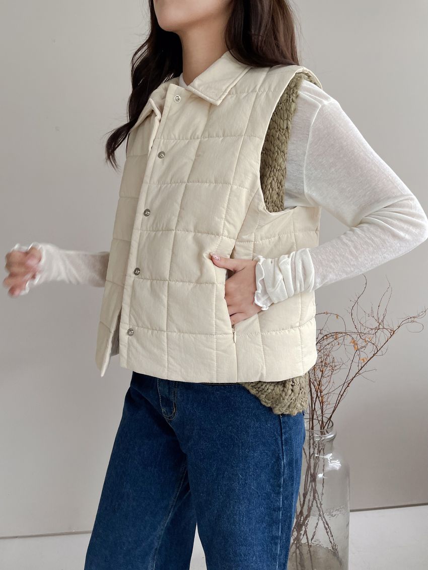 Connie推薦款!豆腐格紋小領鋪棉背心