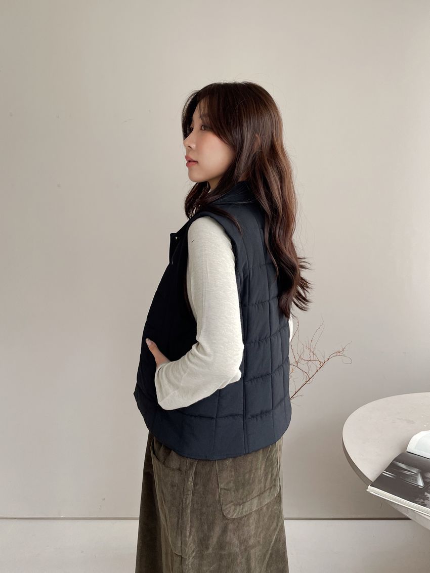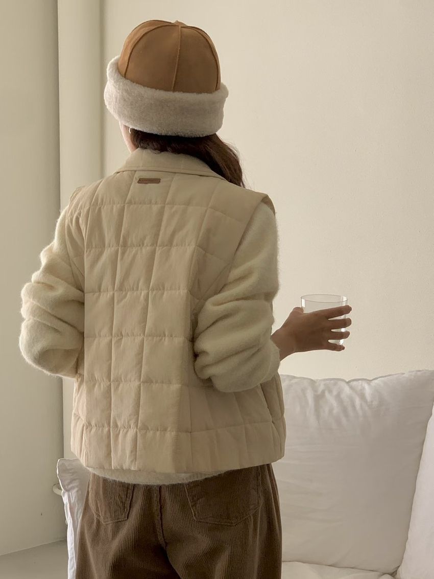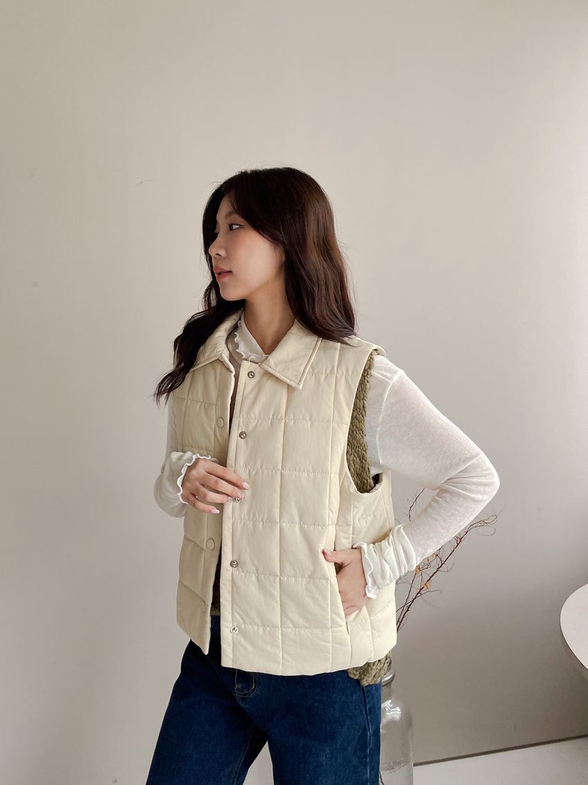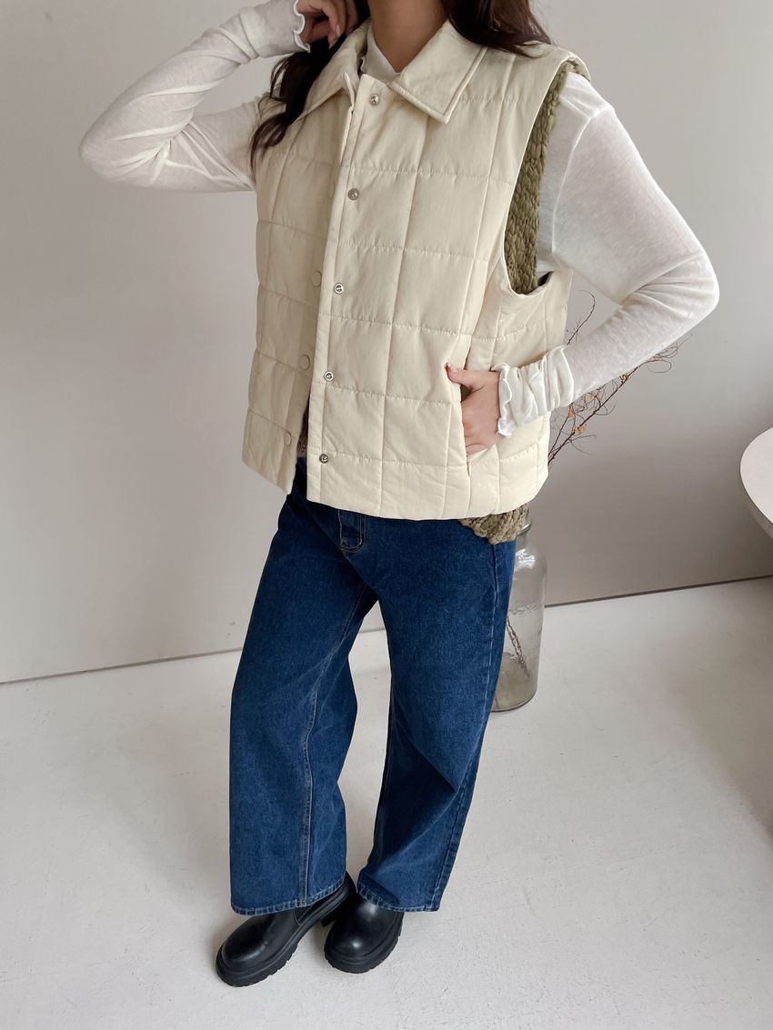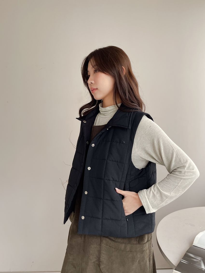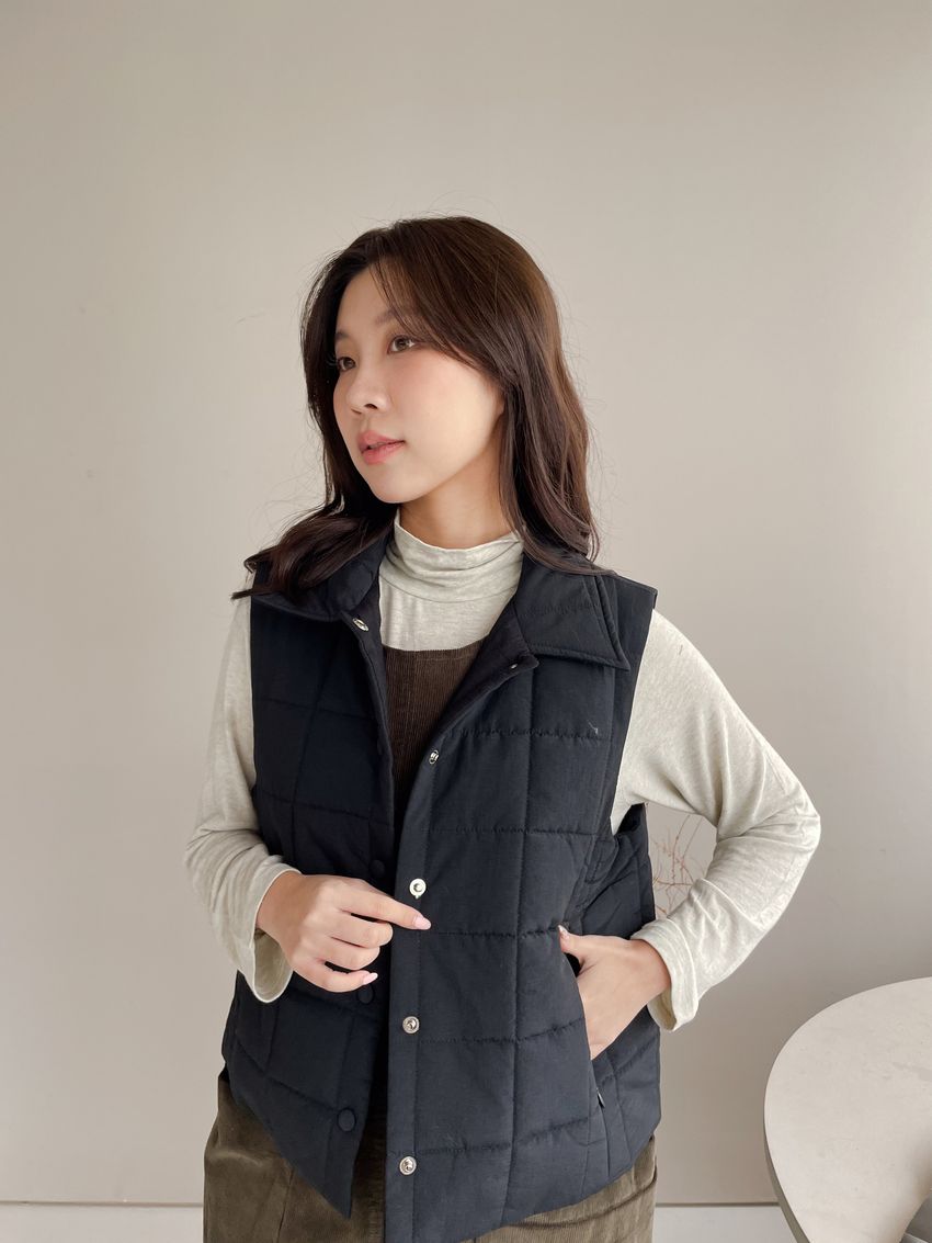Connie推薦款!豆腐格紋小領鋪棉背心