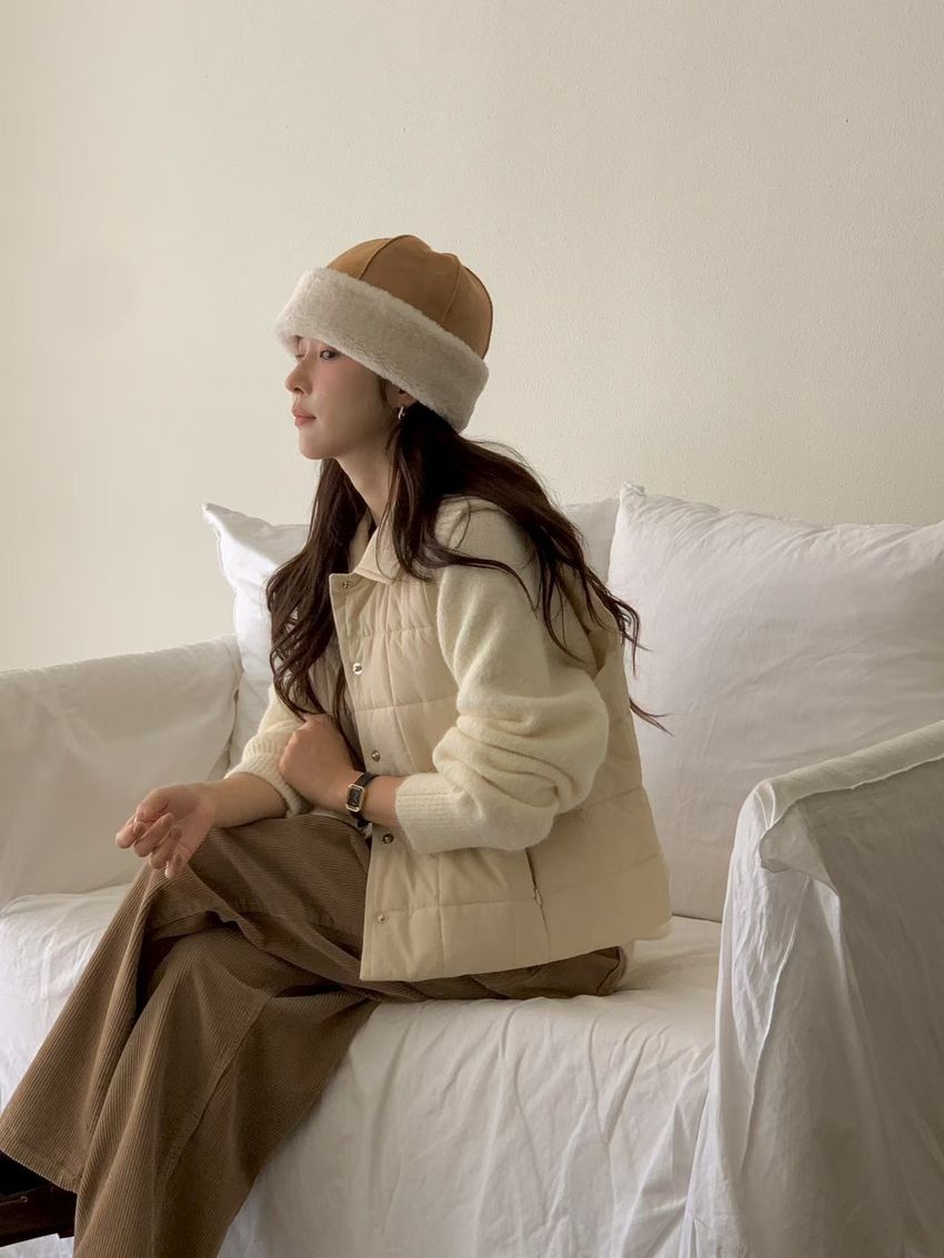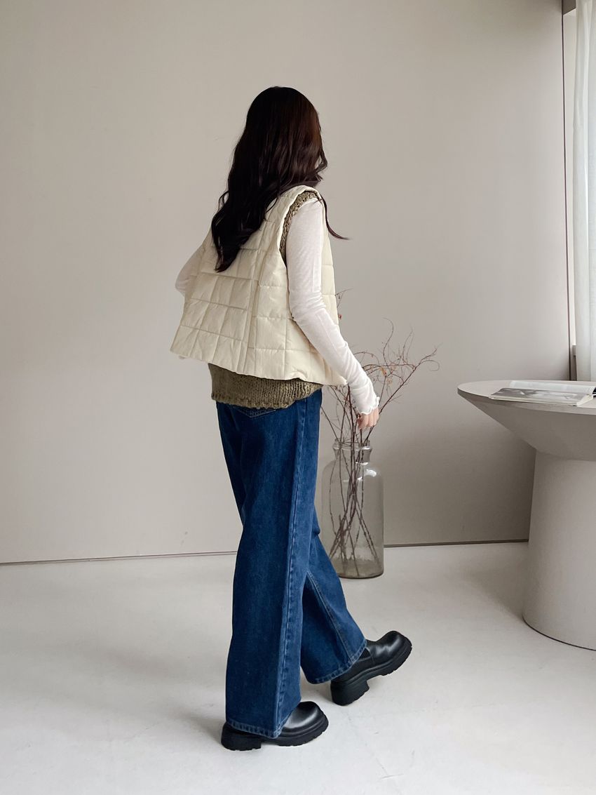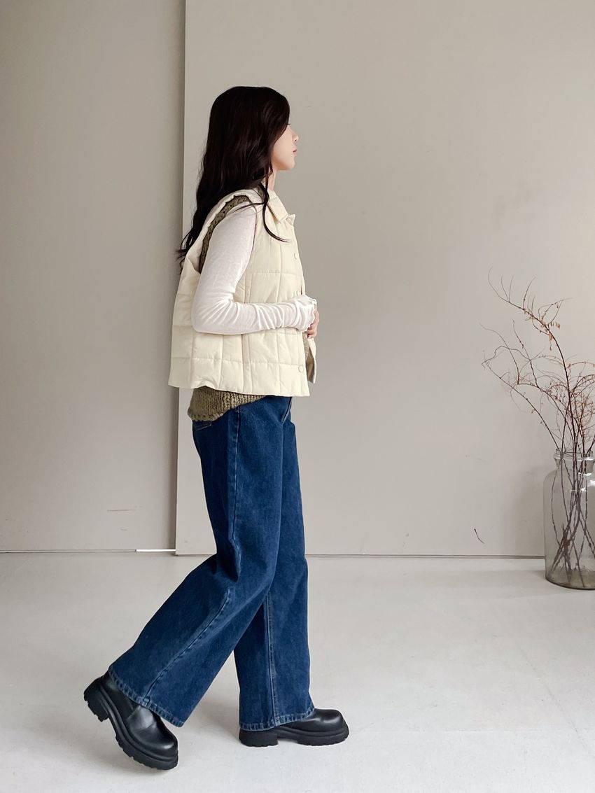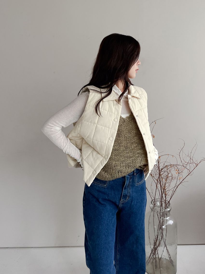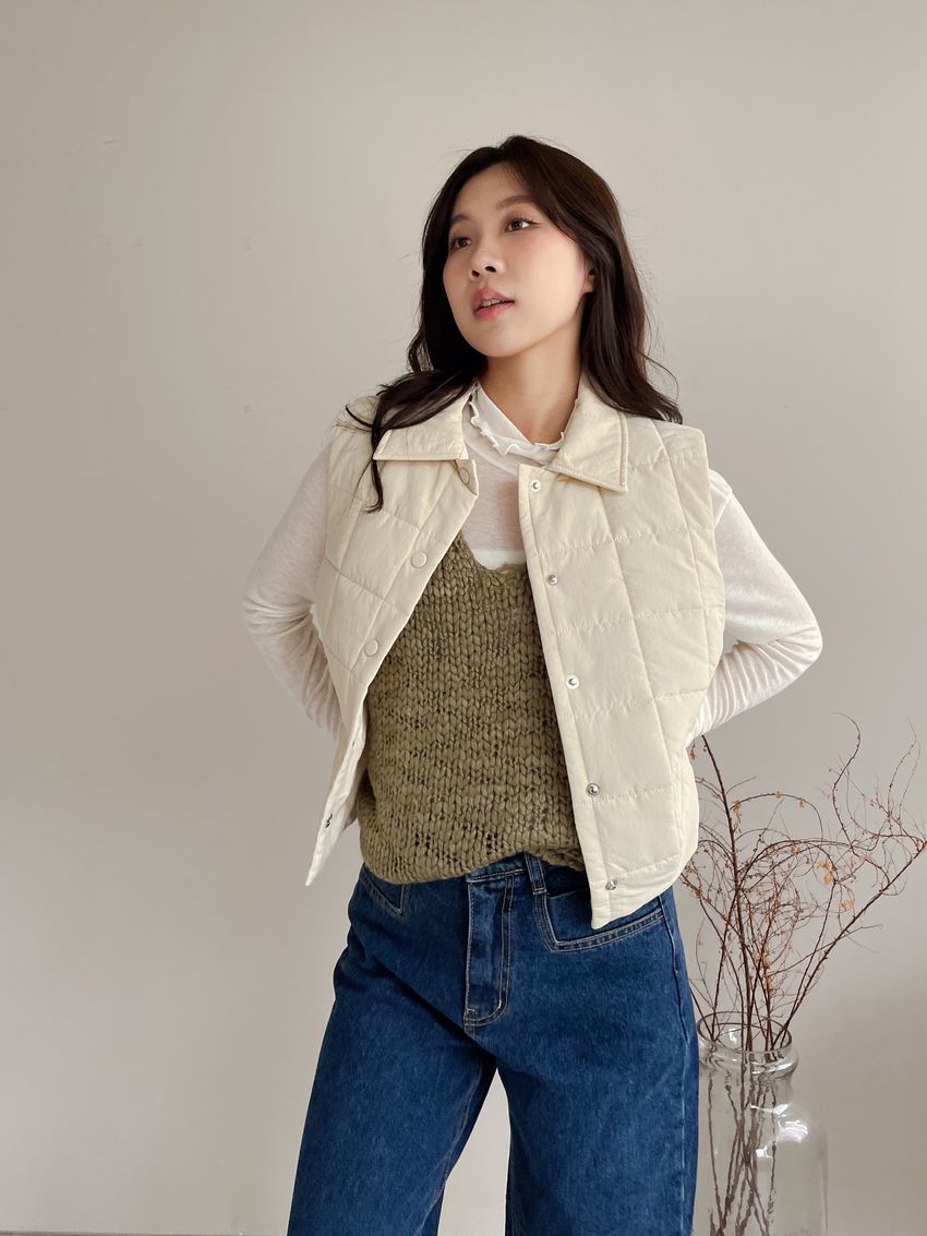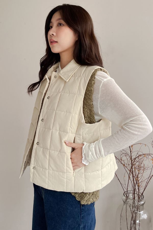 Connie推薦款!豆腐格紋小領鋪棉背心