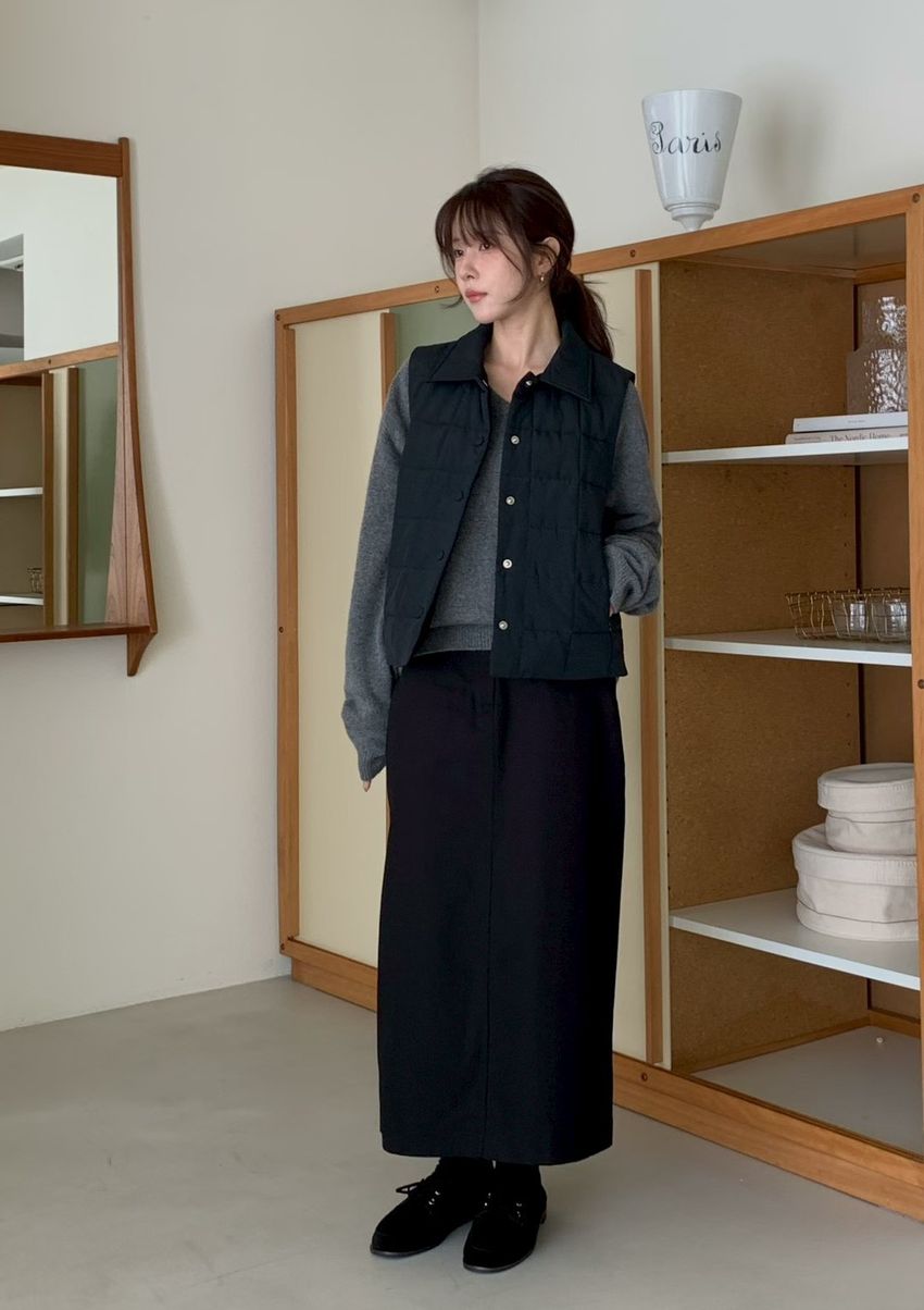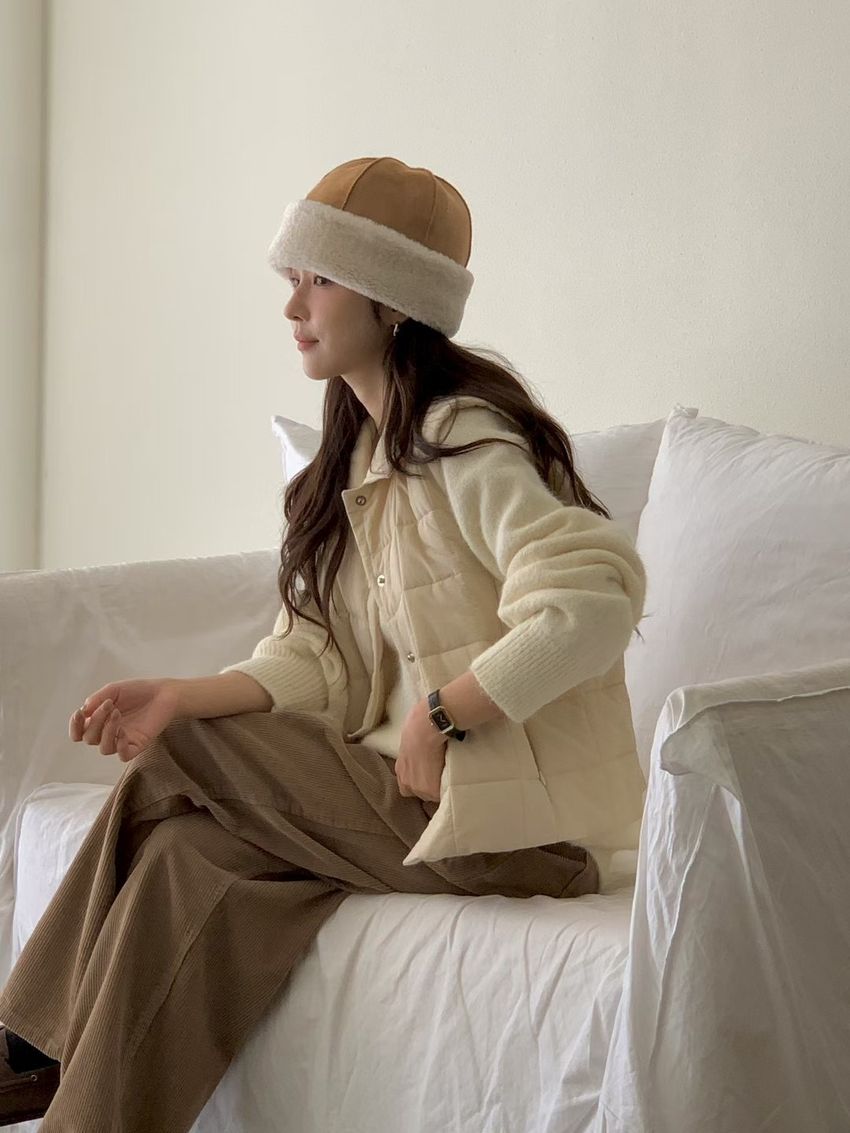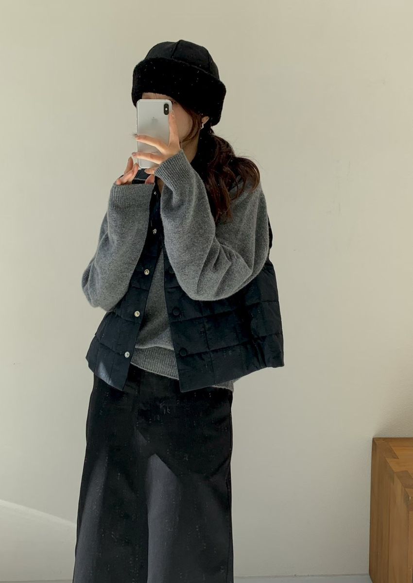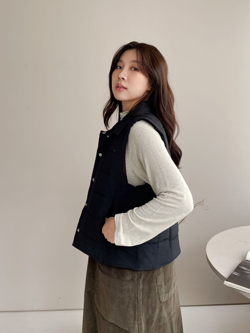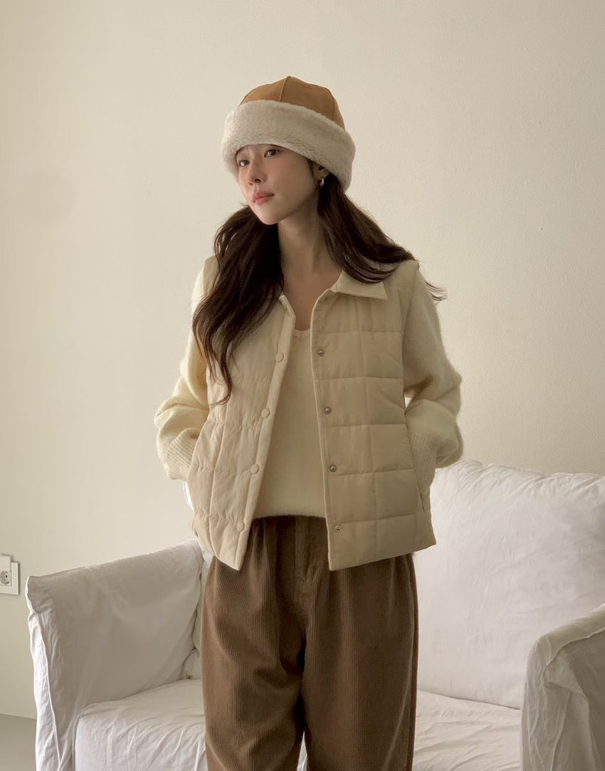 Connie推薦款!豆腐格紋小領鋪棉背心