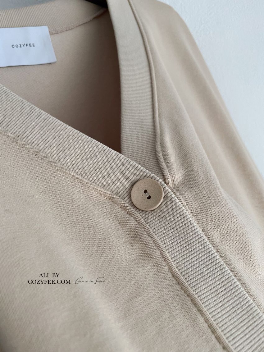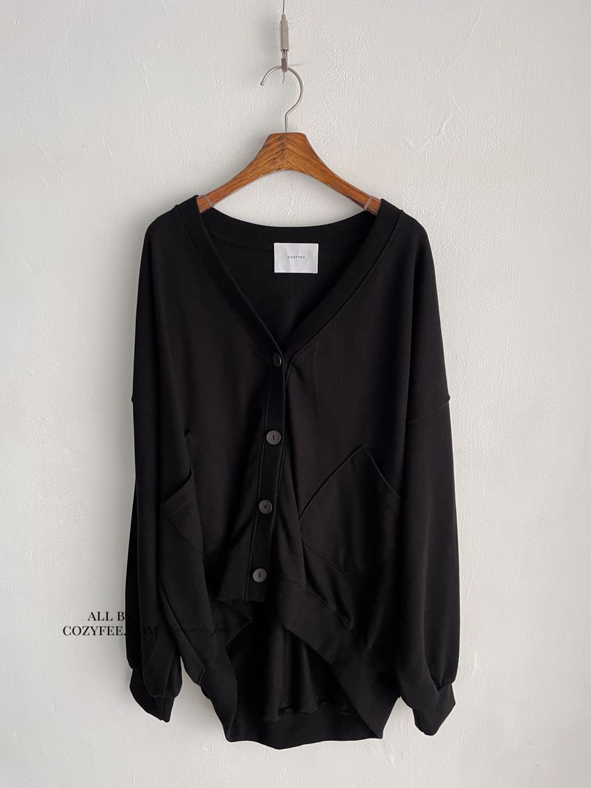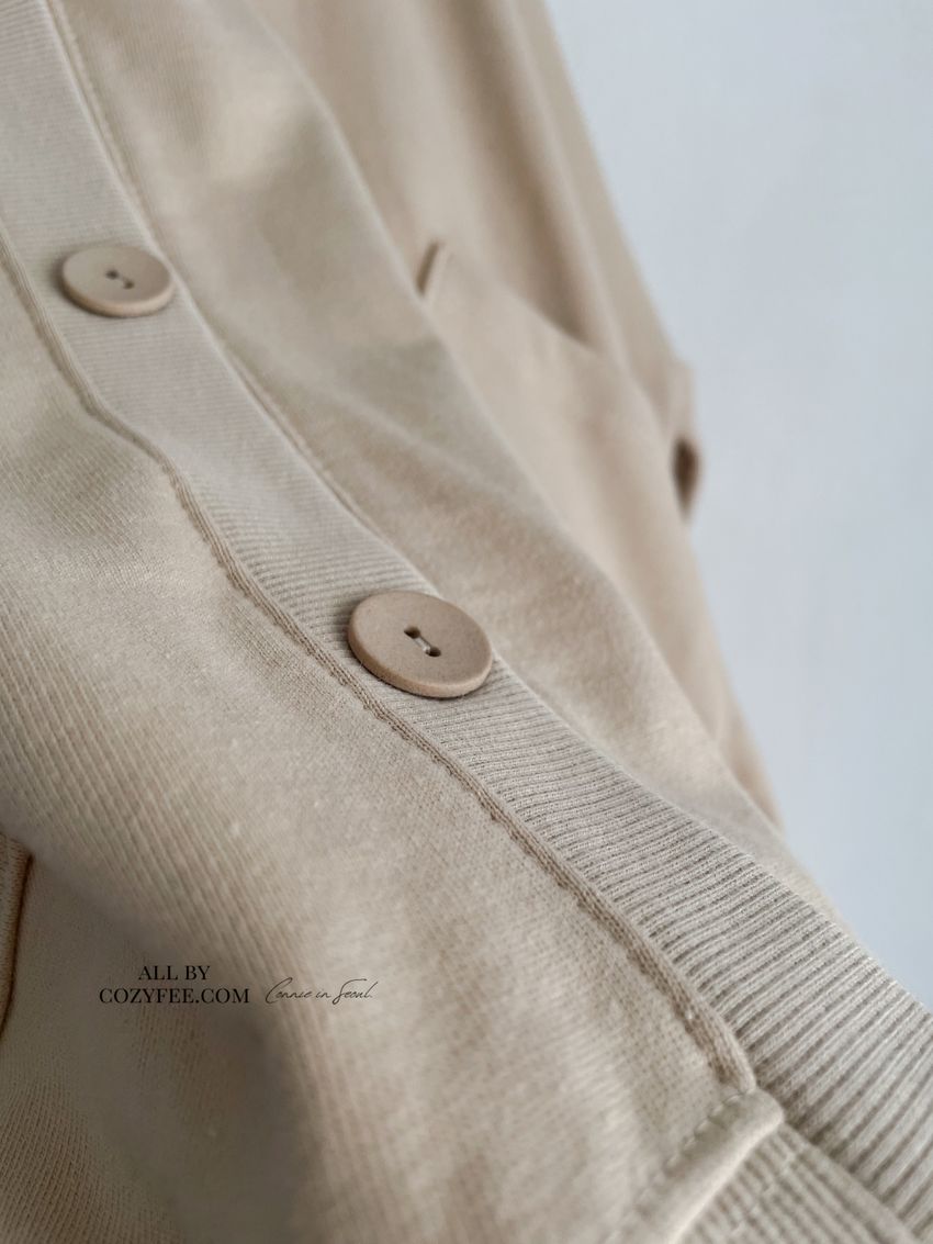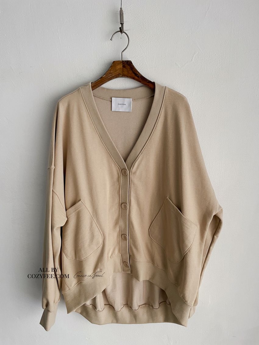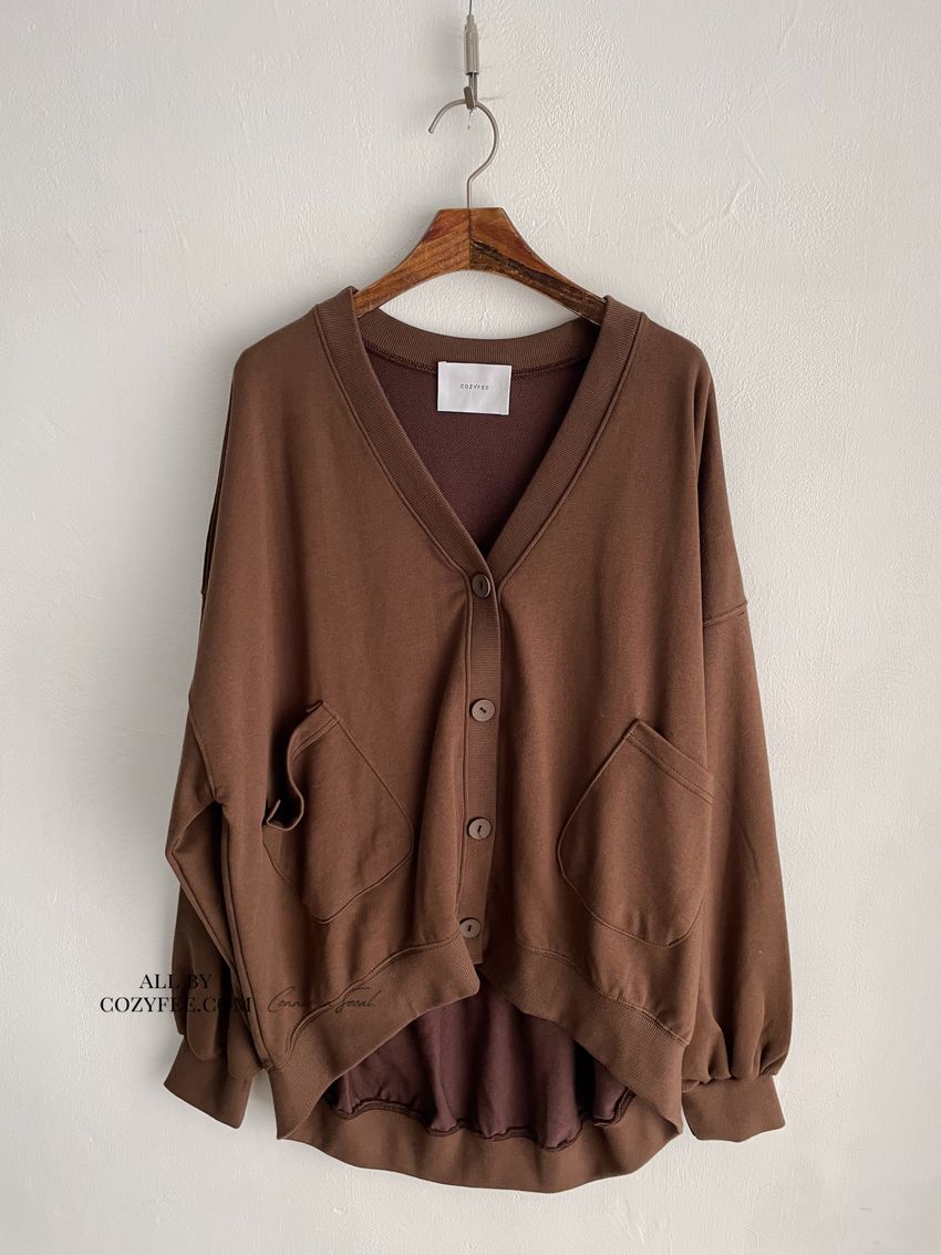 > 斜口袋棉質開襟寬鬆外套