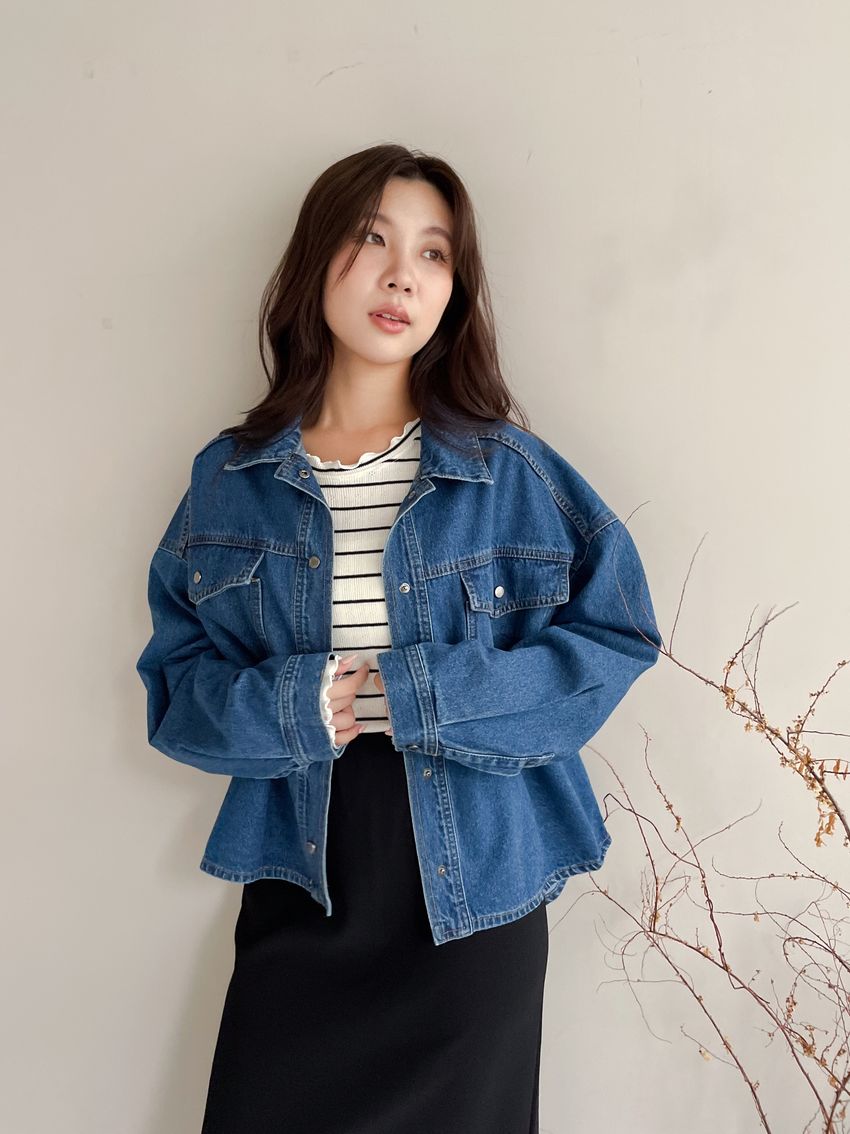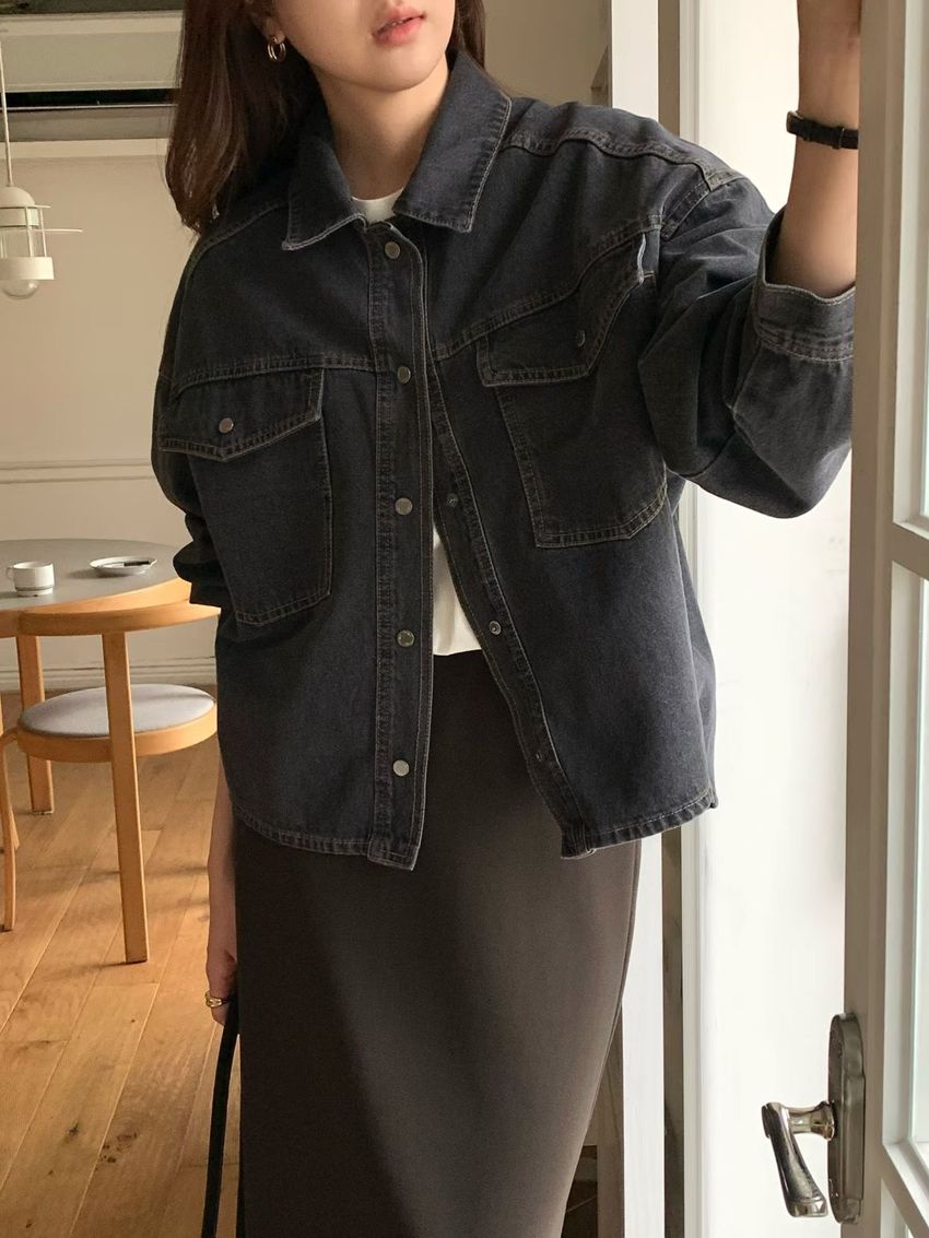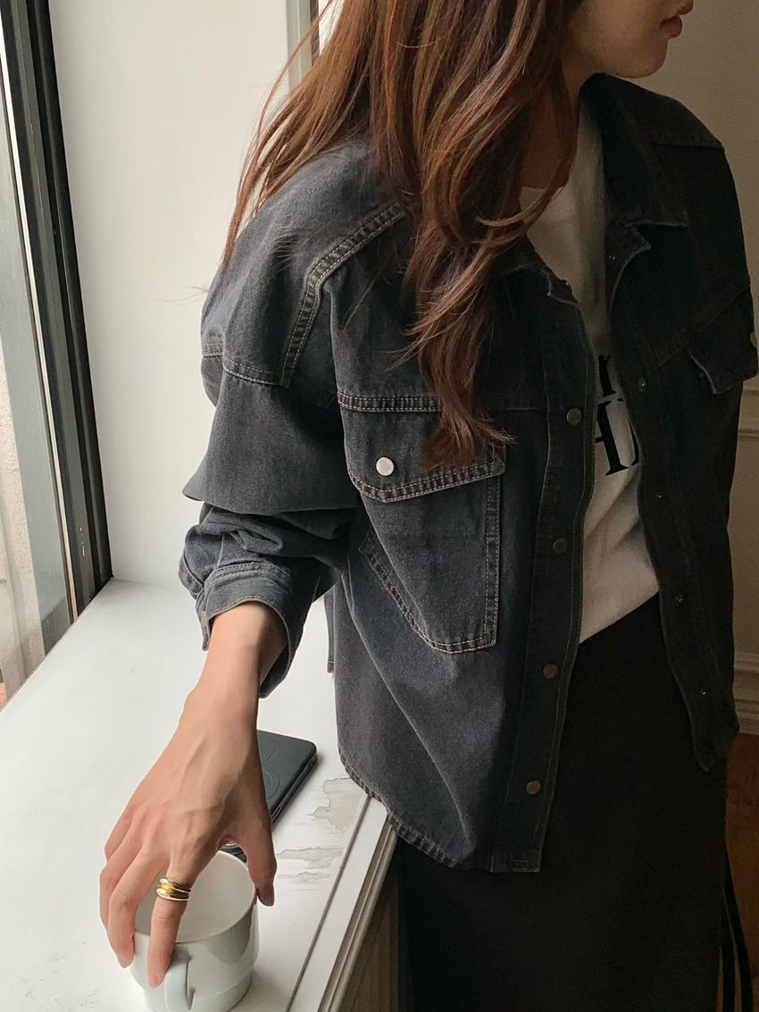 > Connie推薦款!單寧翻開口袋襯衫外套