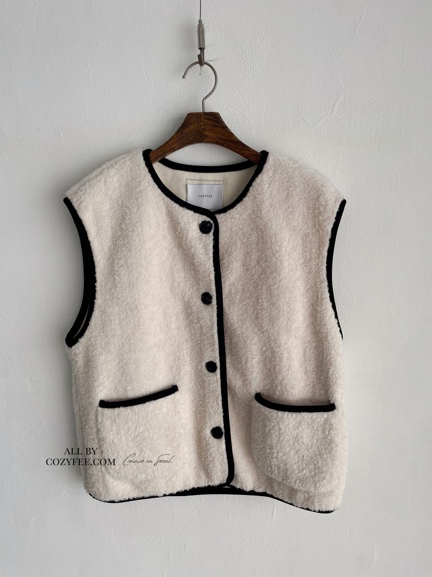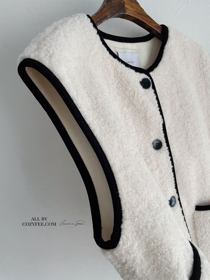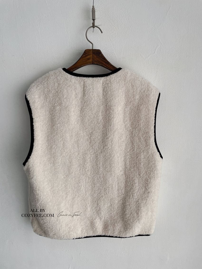Connie推薦款!黑滾邊小熊毛背心(直播款)