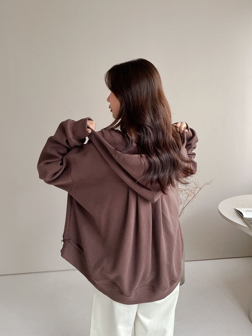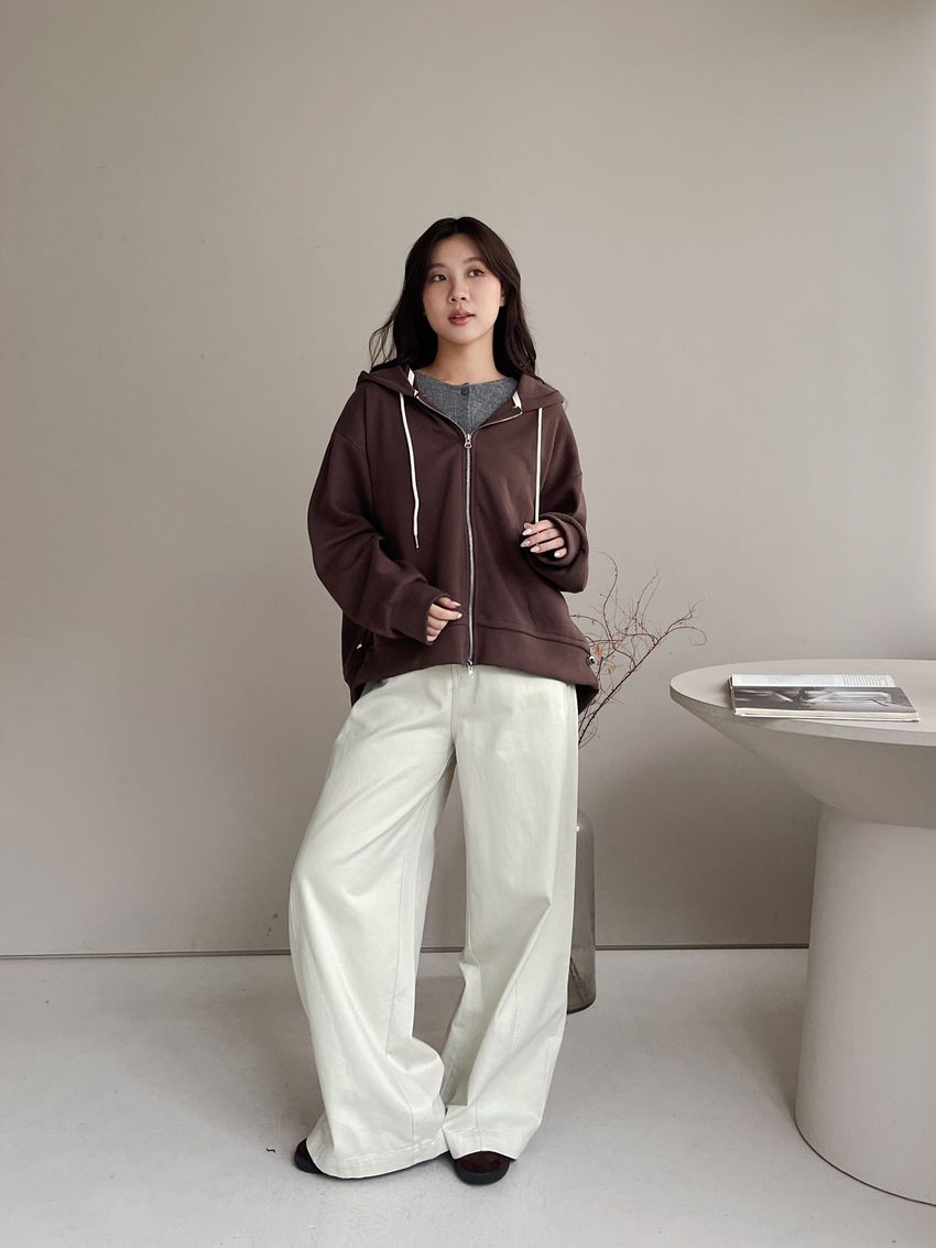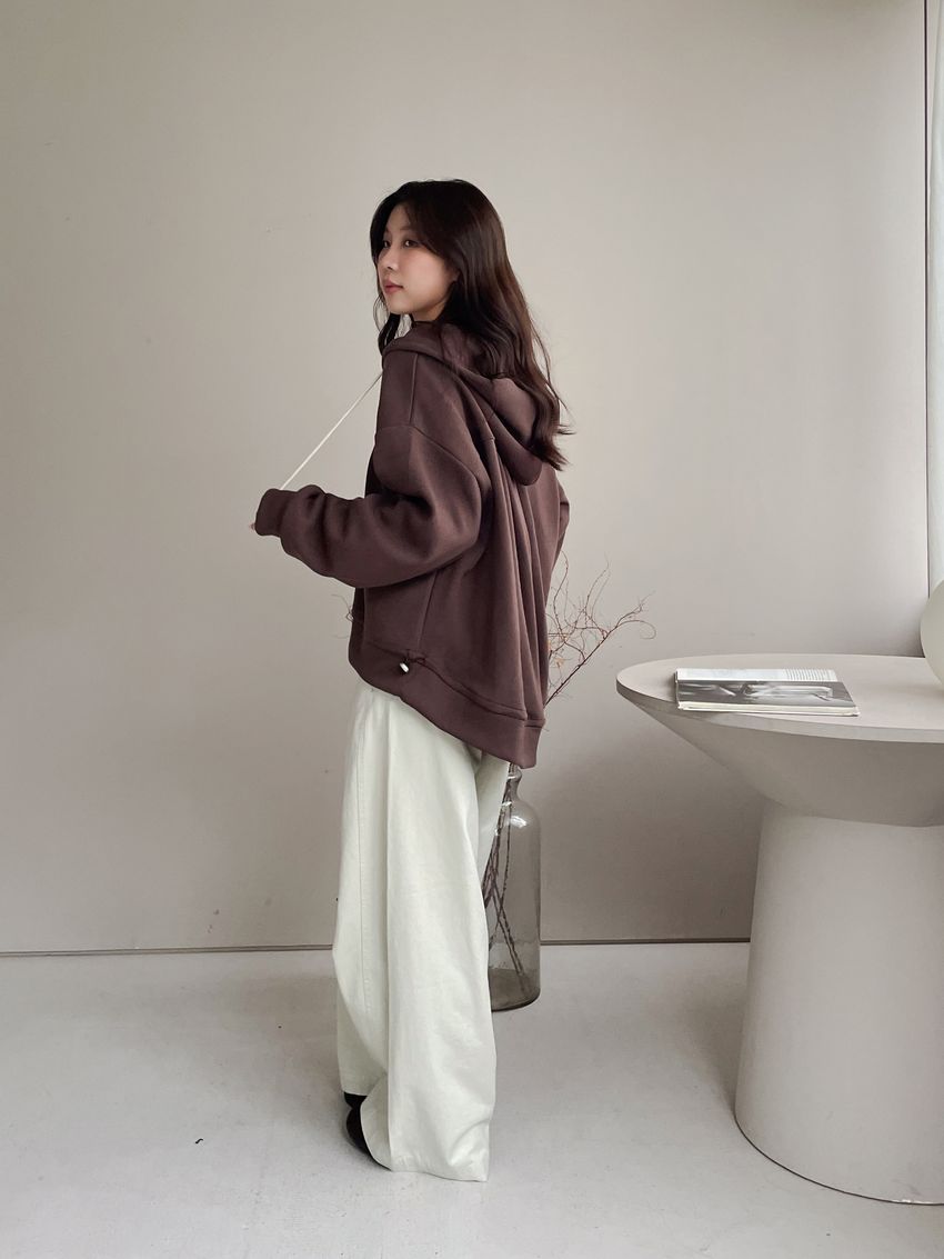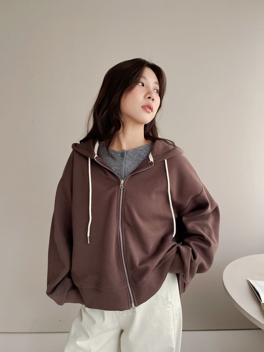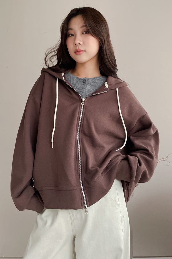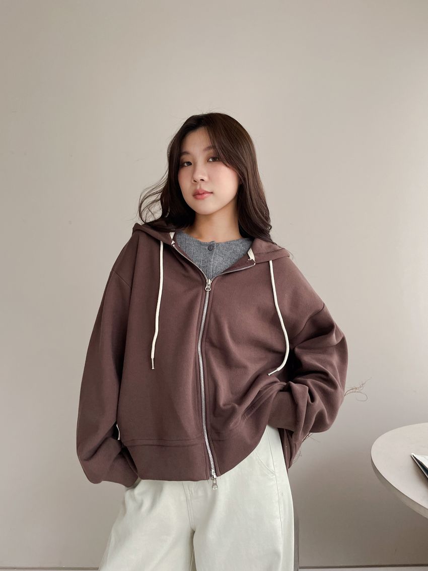 連帽弧型剪裁拉鍊外套
