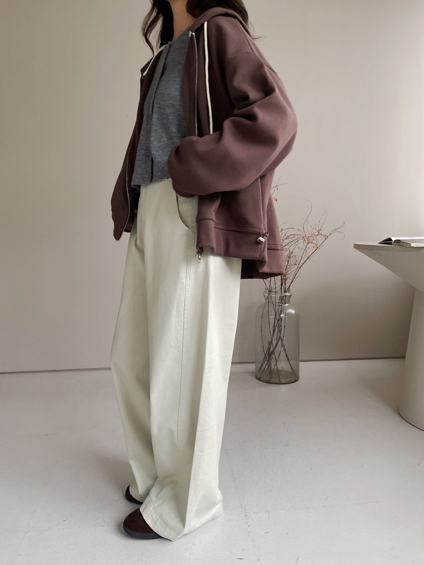 > 連帽弧型剪裁拉鍊外套