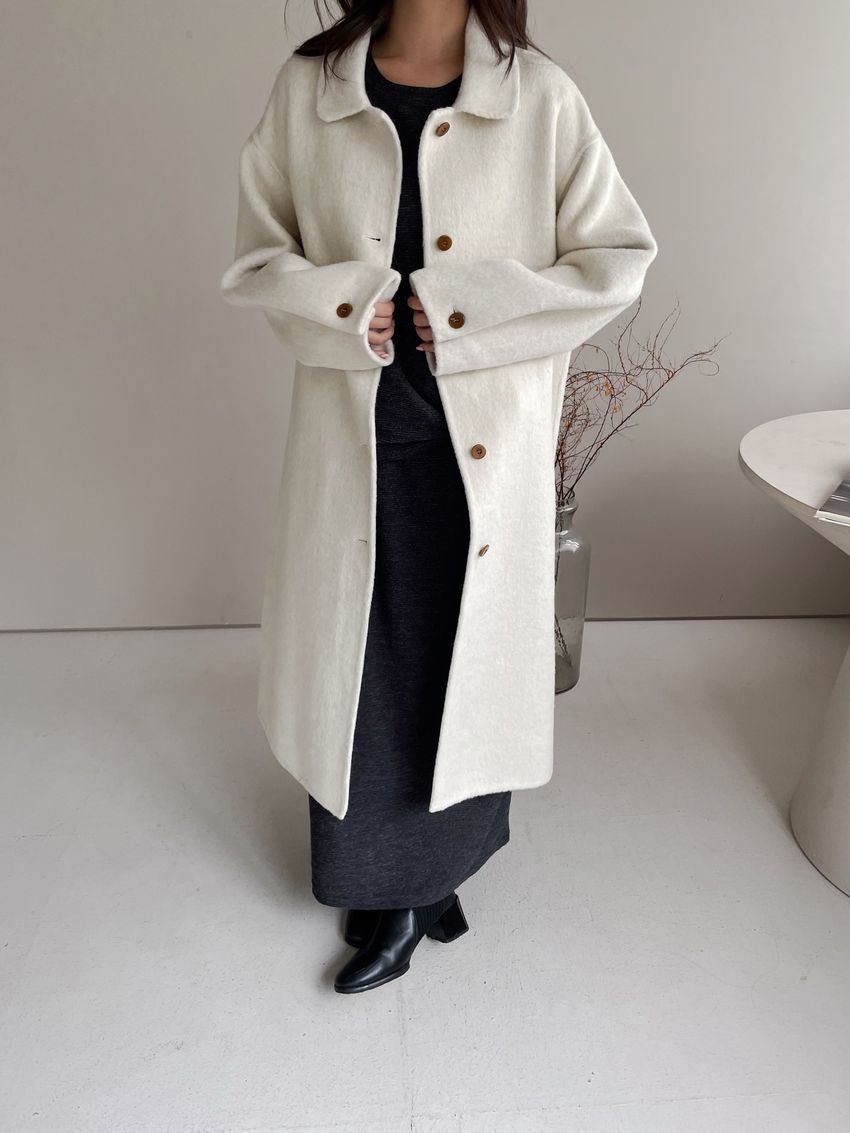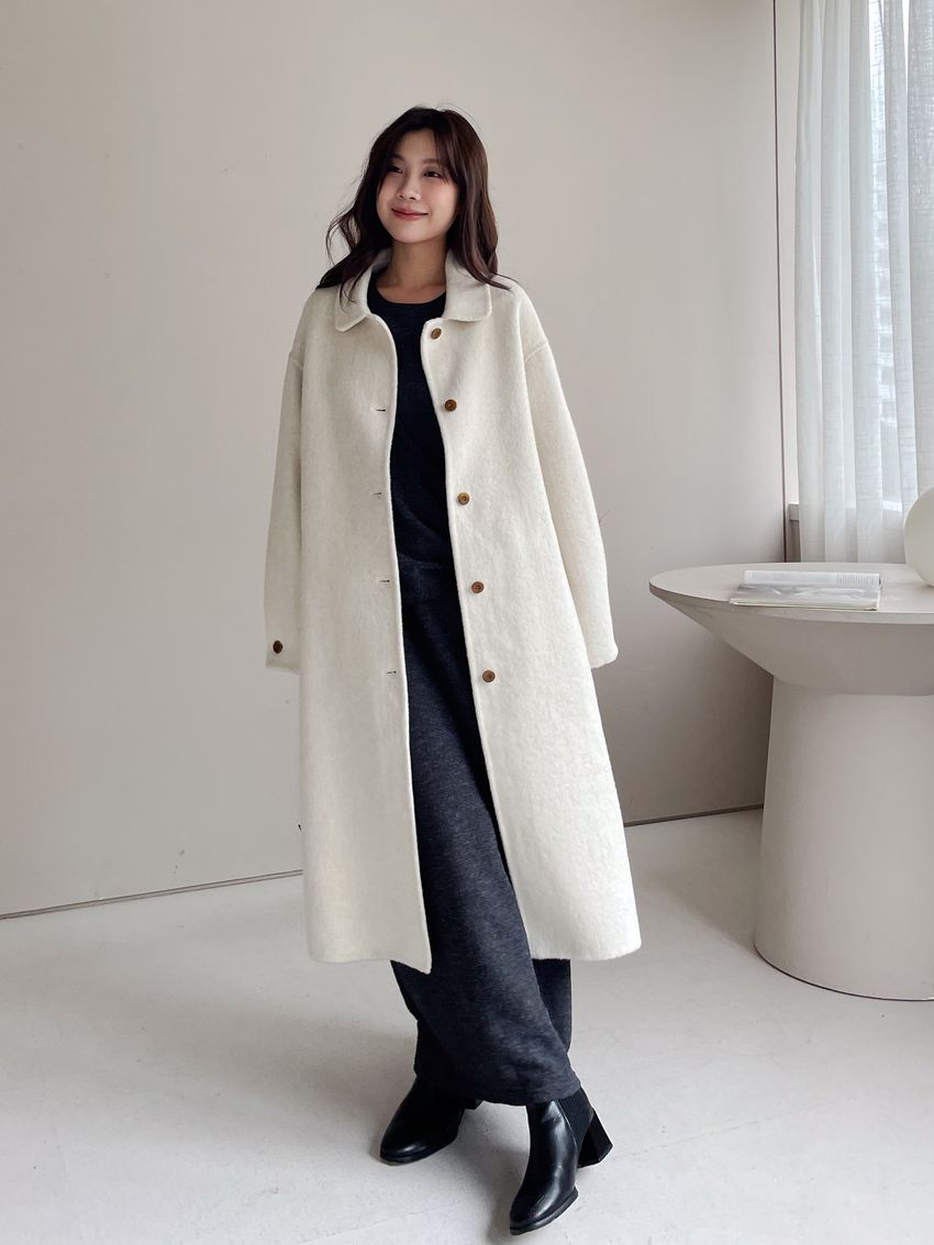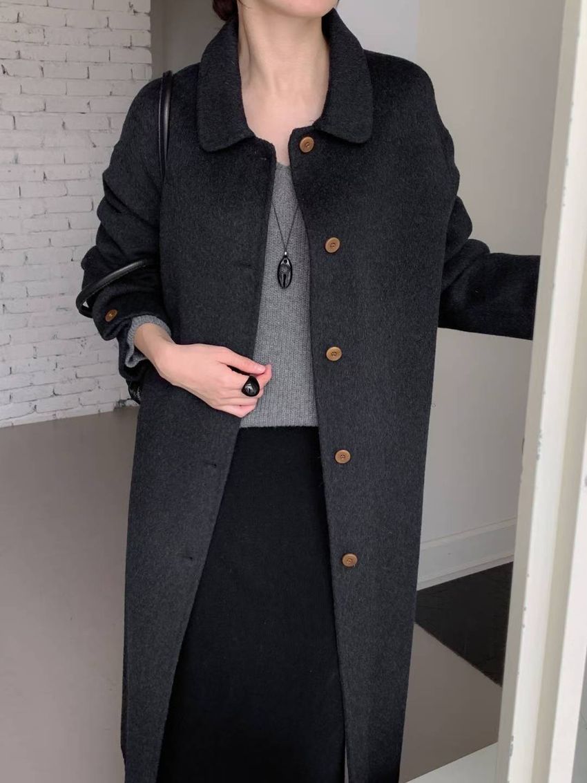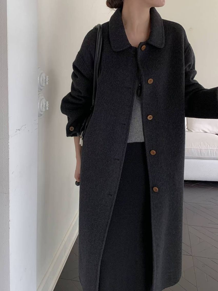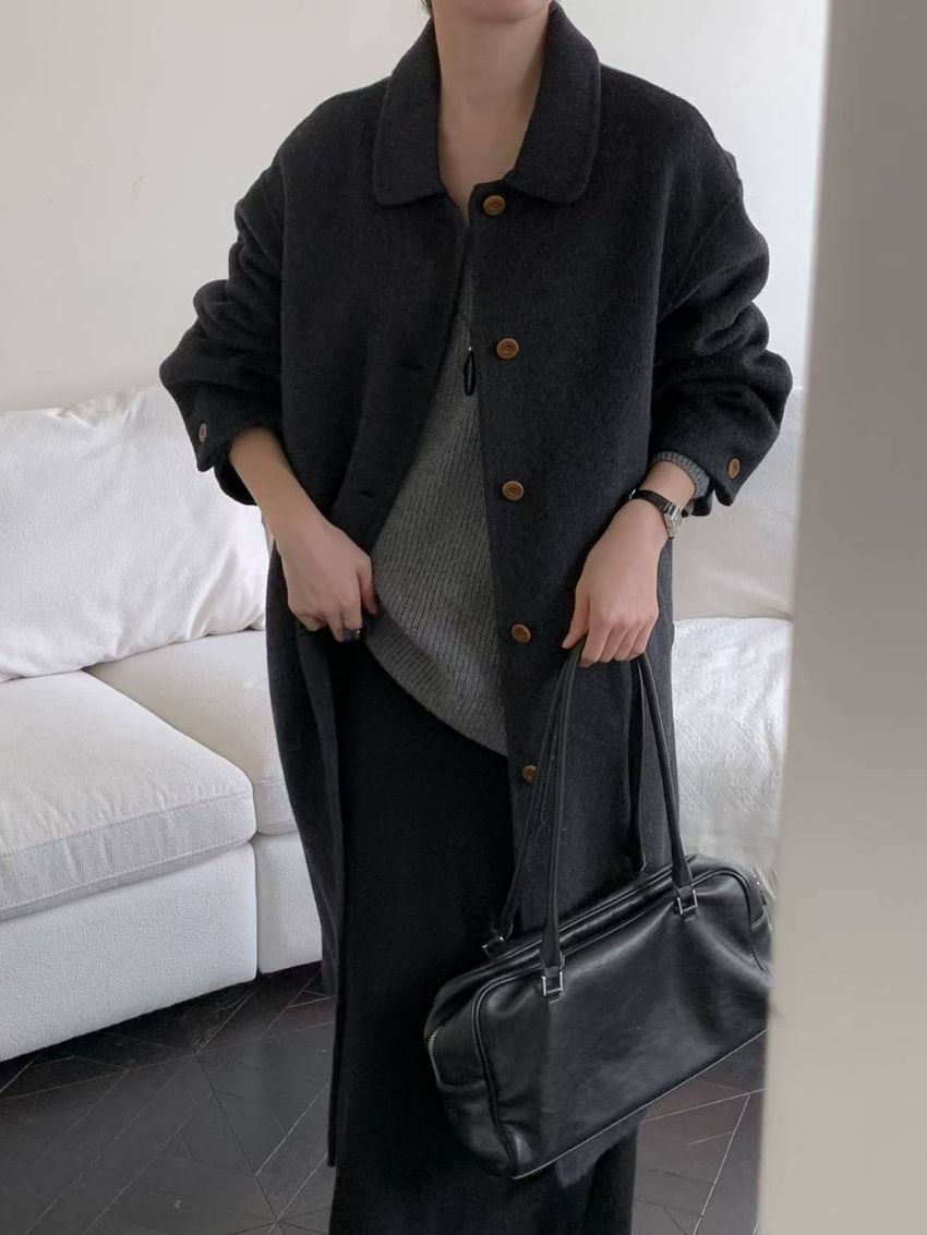 > 經典長版摺袖100%手工羊毛大衣(特)