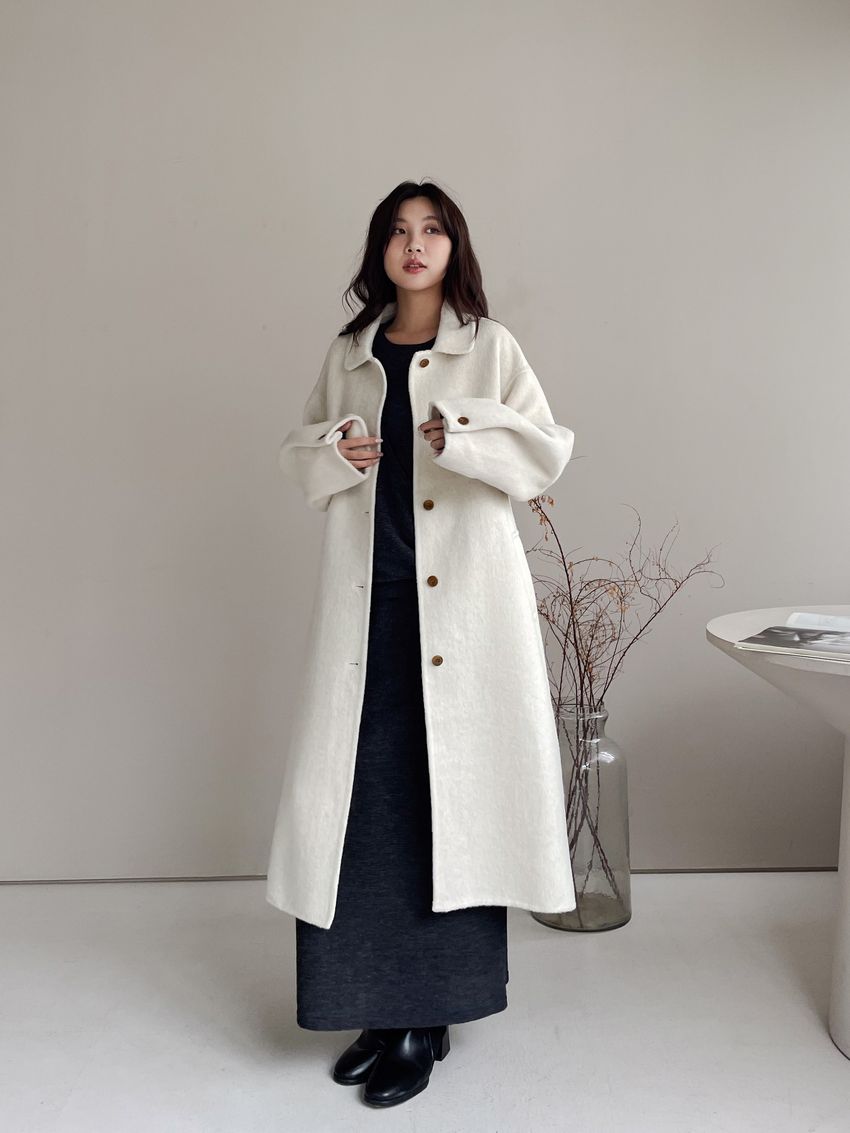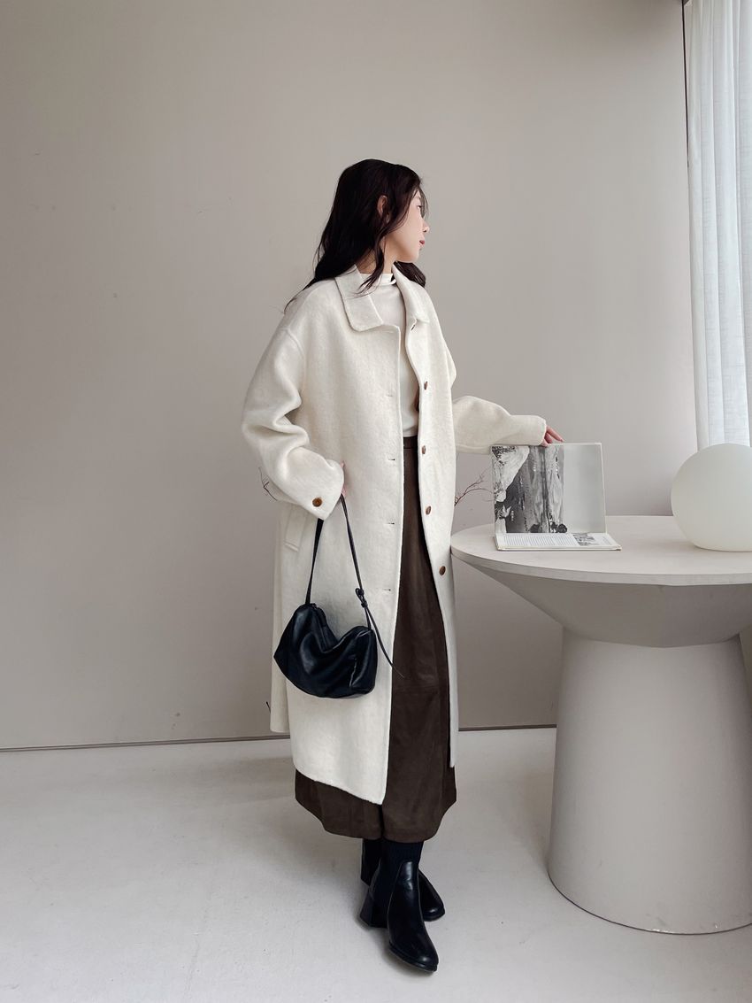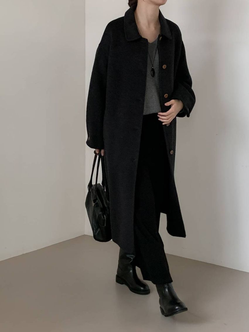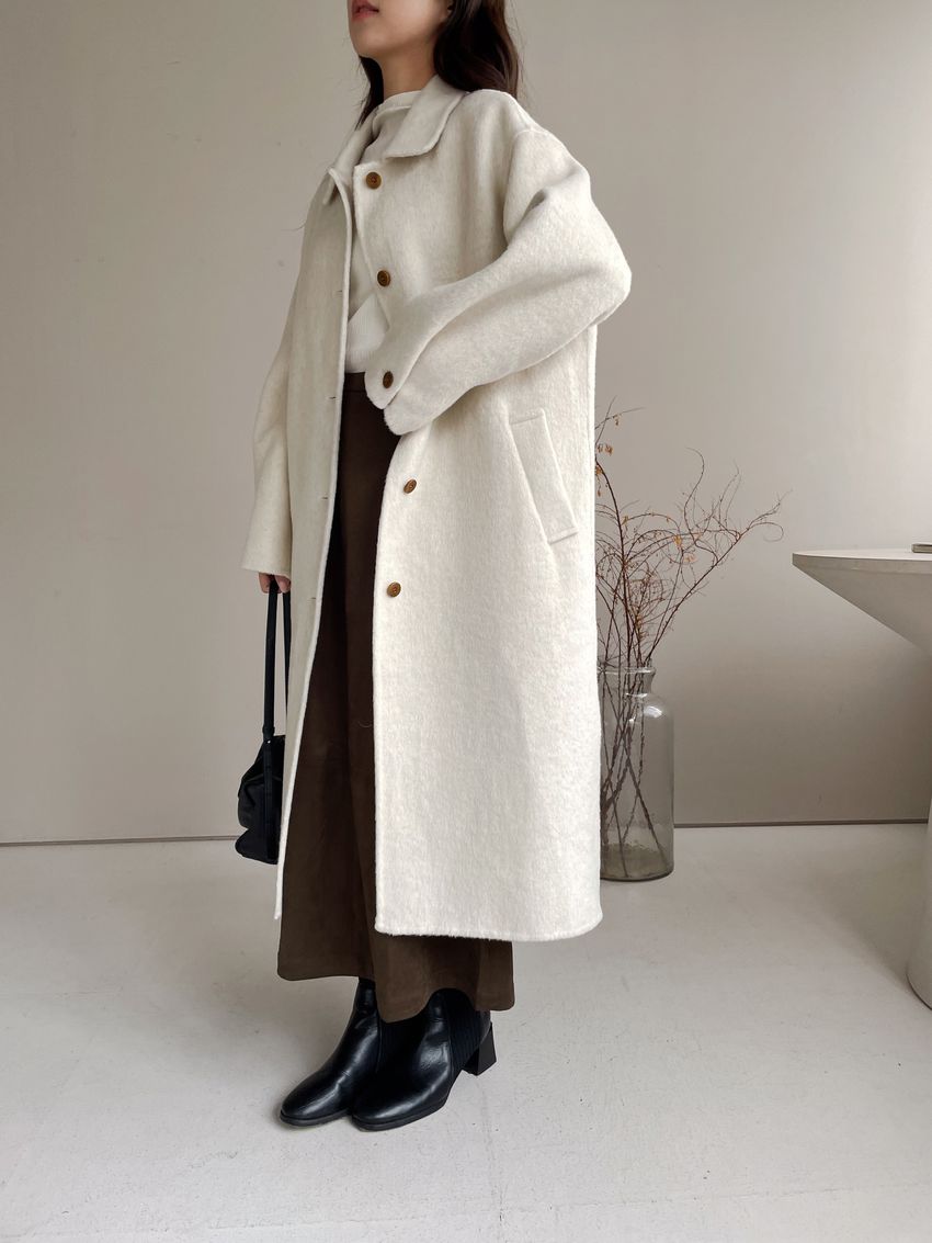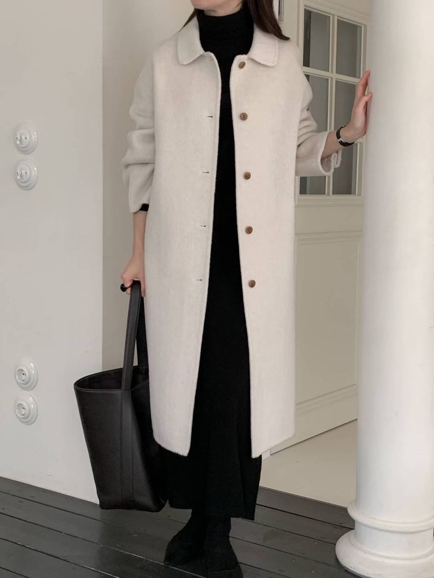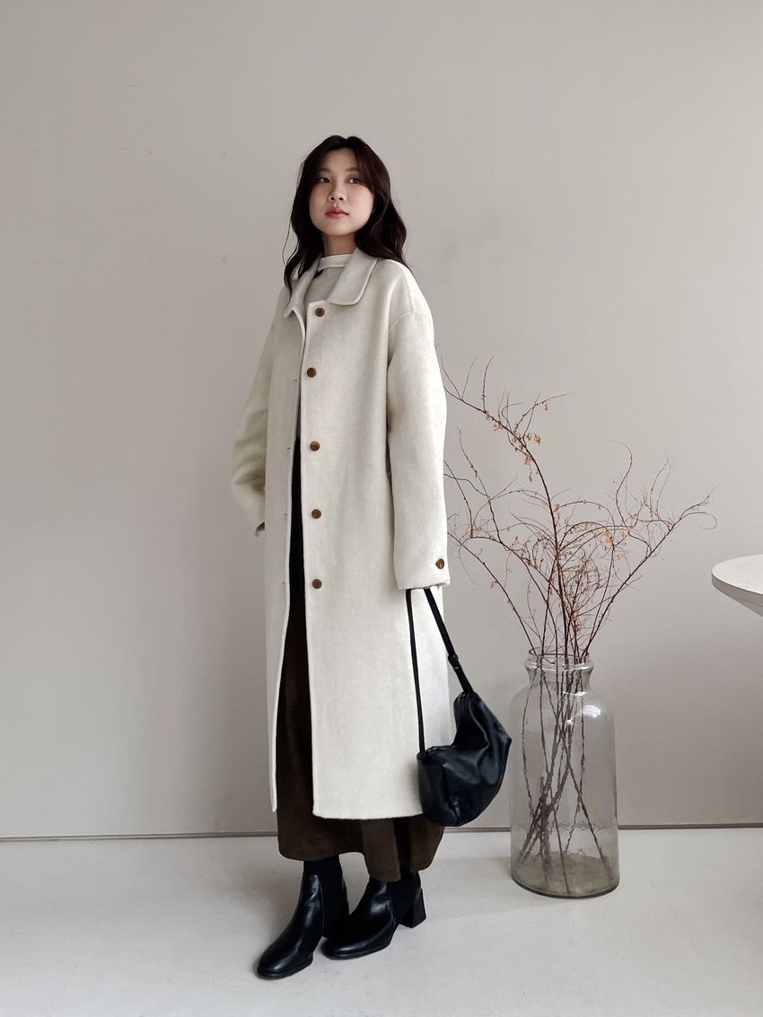 > 經典長版摺袖100%手工羊毛大衣(特)