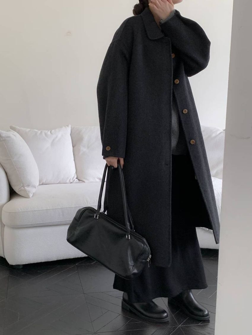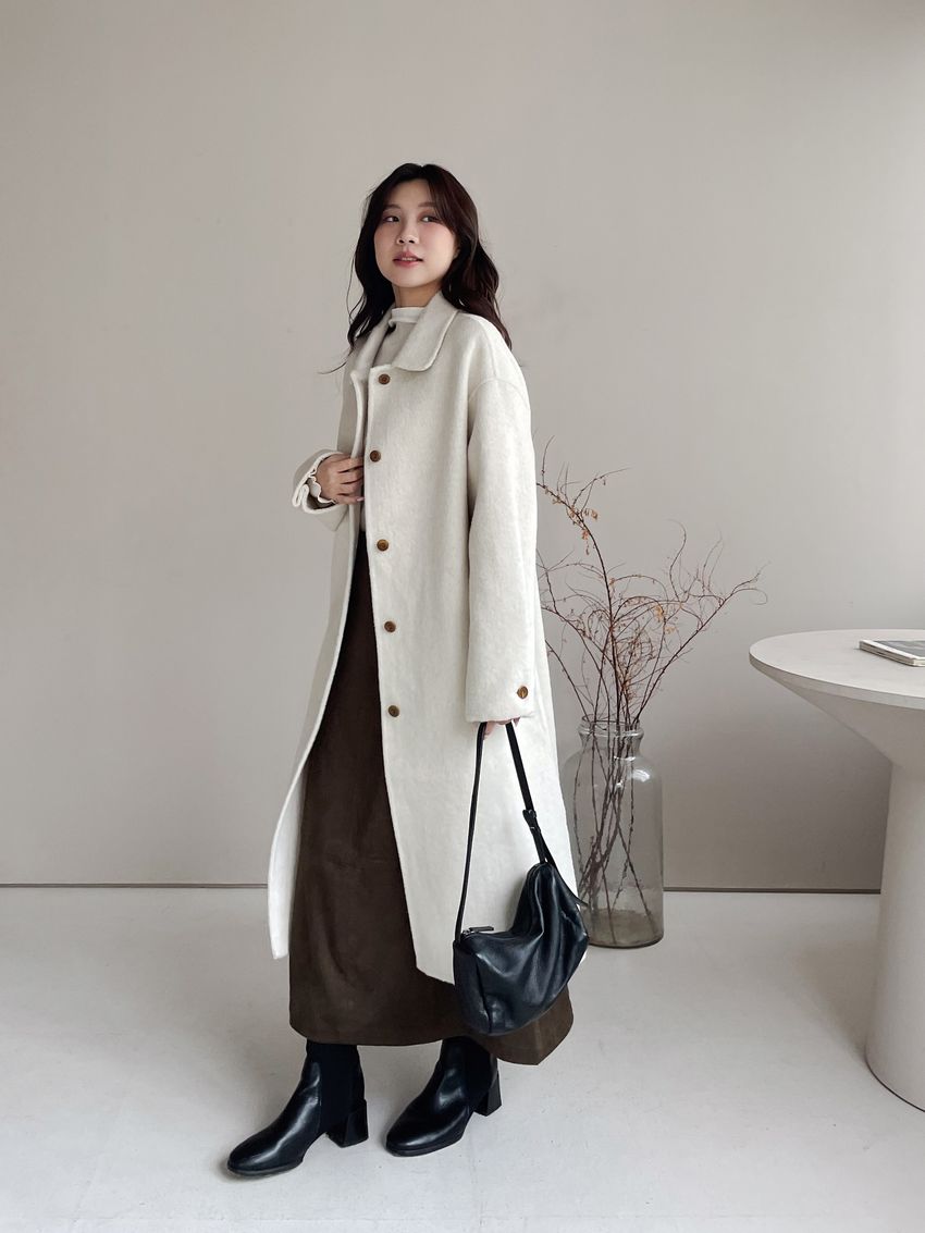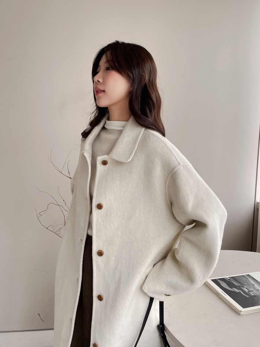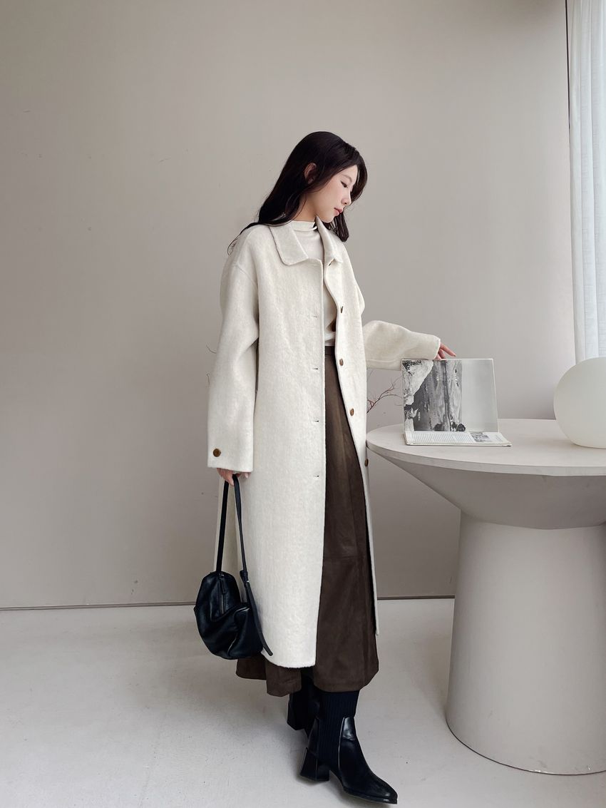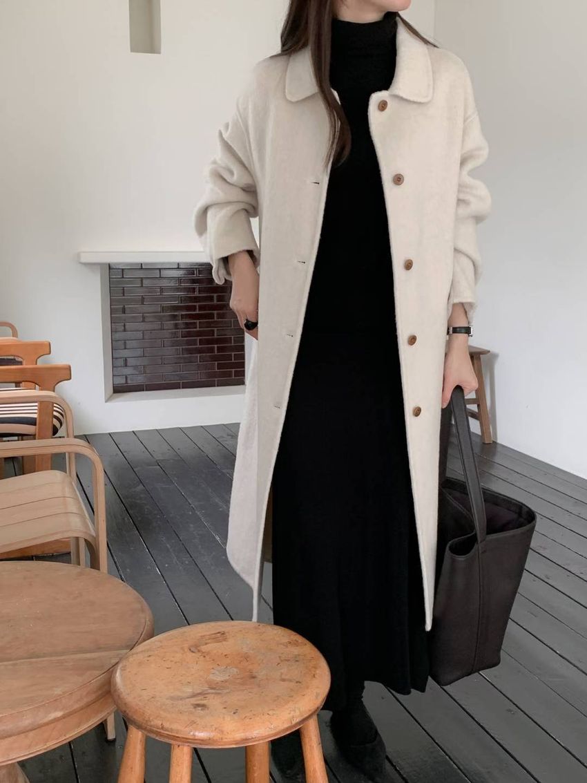 > 經典長版摺袖100%手工羊毛大衣(特)