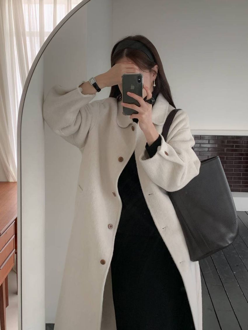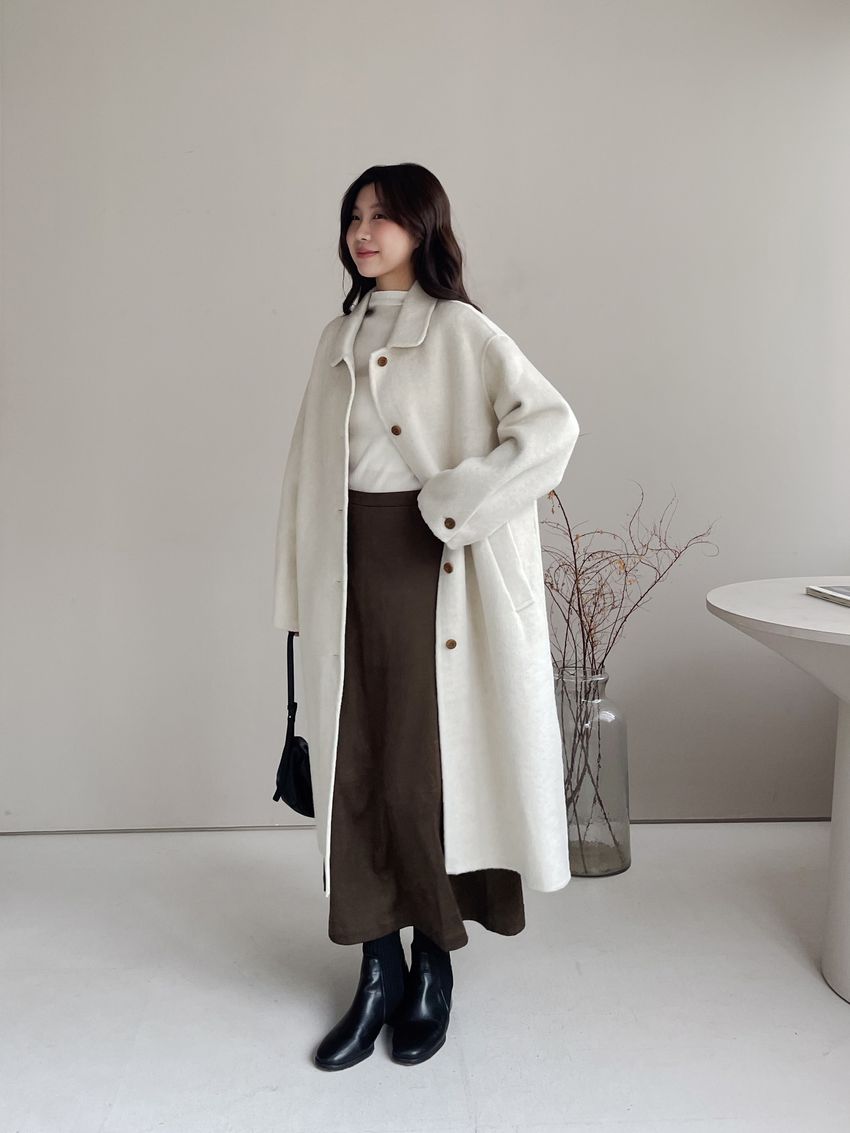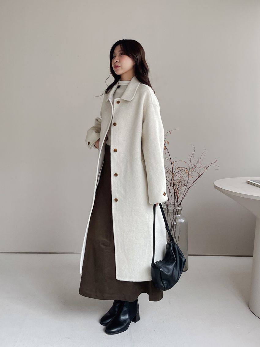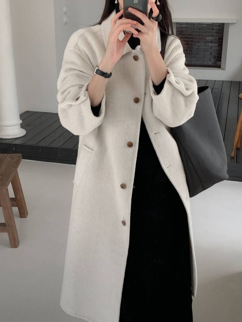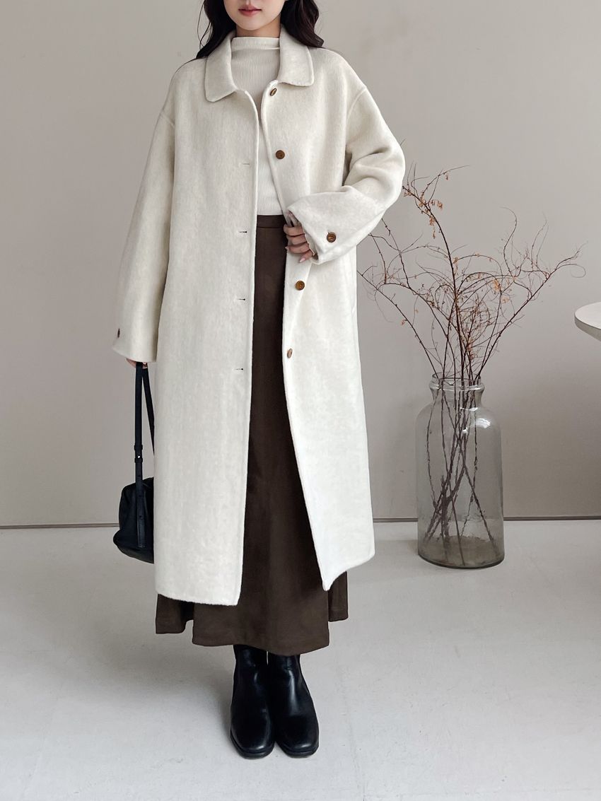 > 經典長版摺袖100%手工羊毛大衣(特)