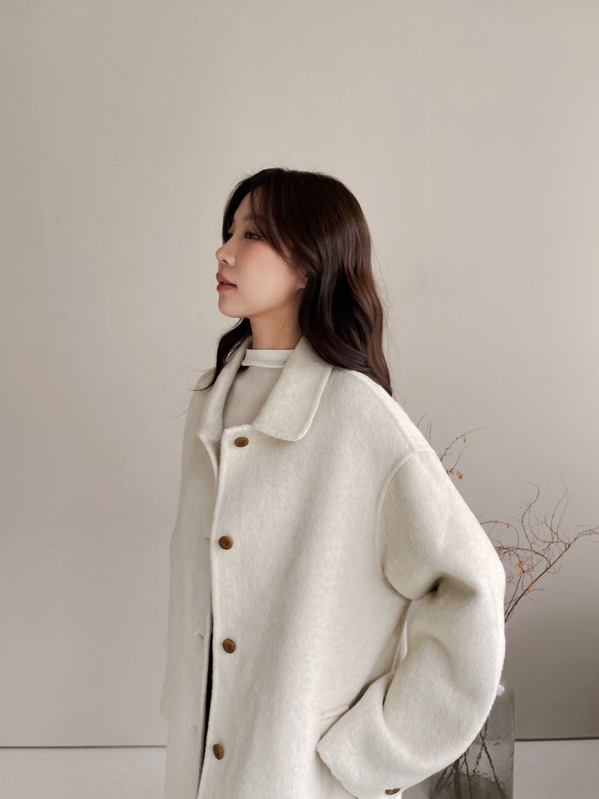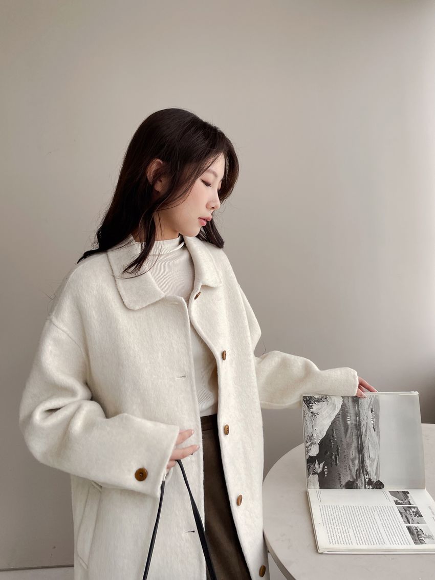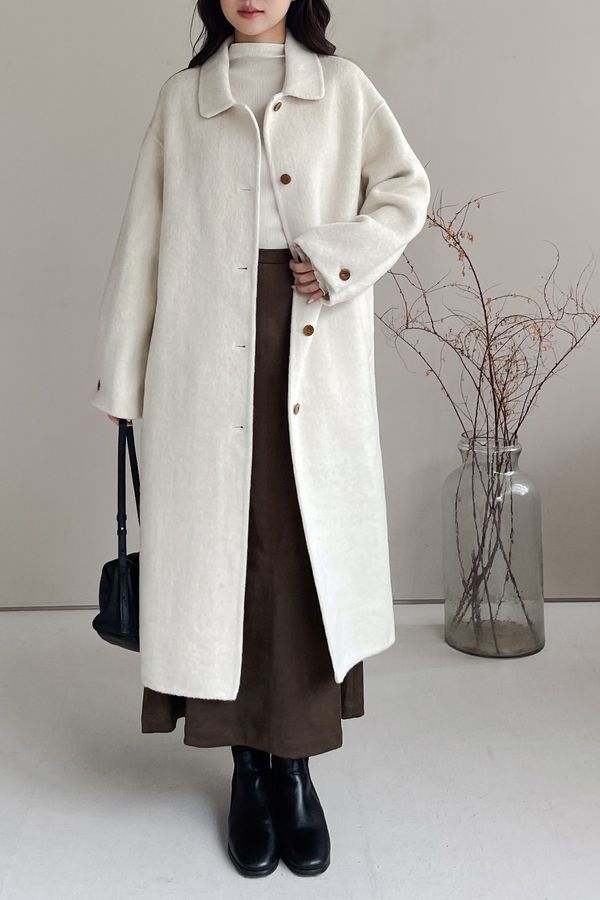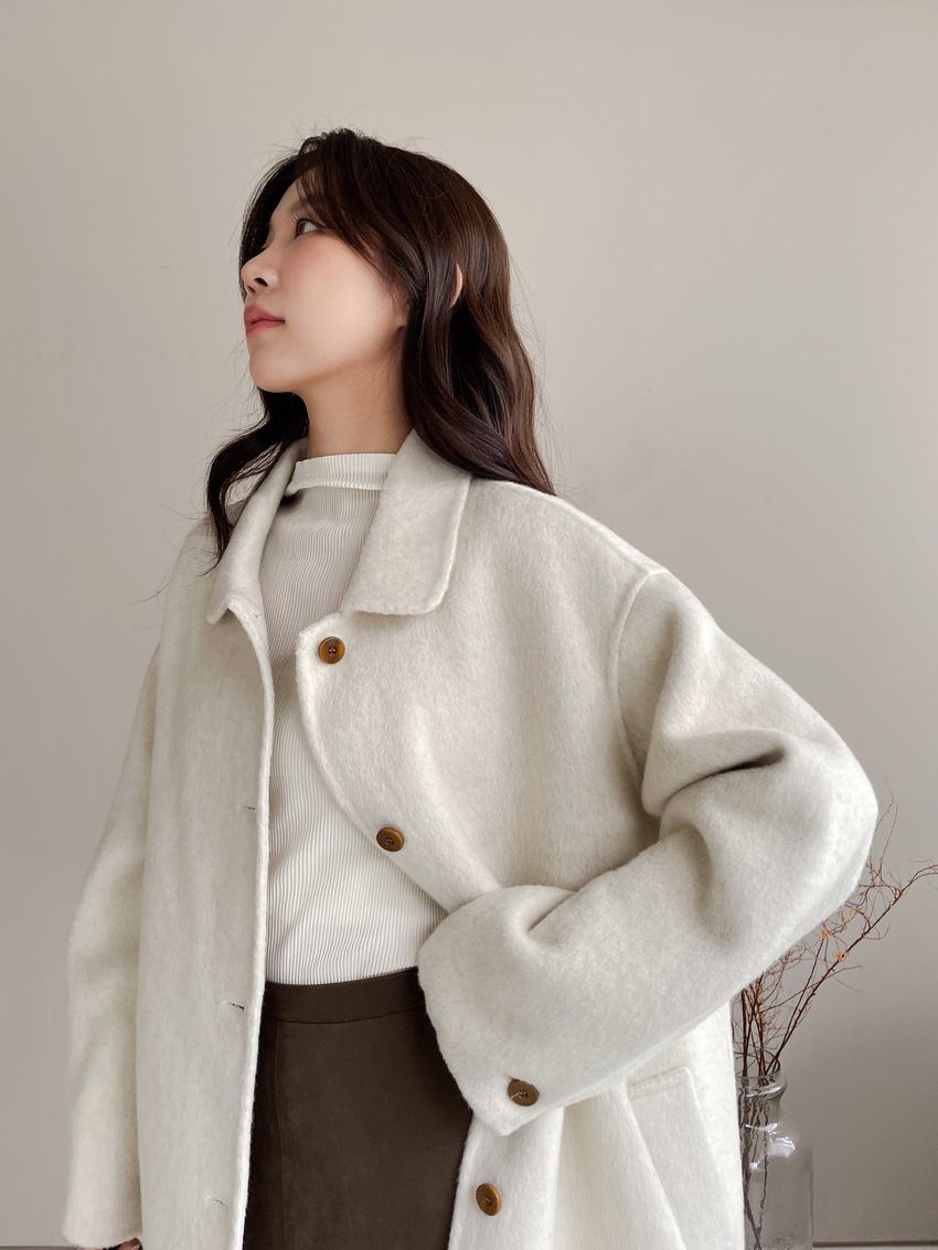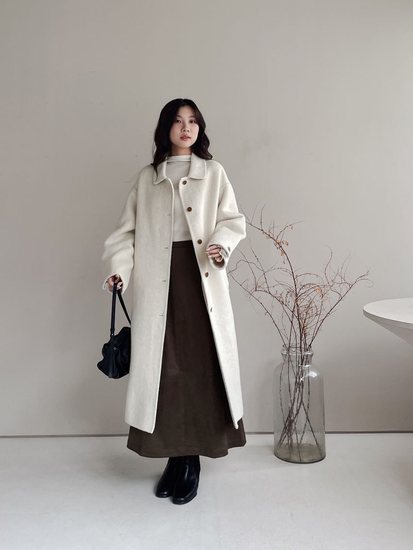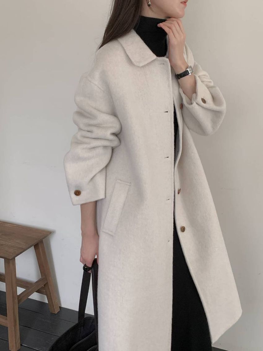 > 經典長版摺袖100%手工羊毛大衣(特)