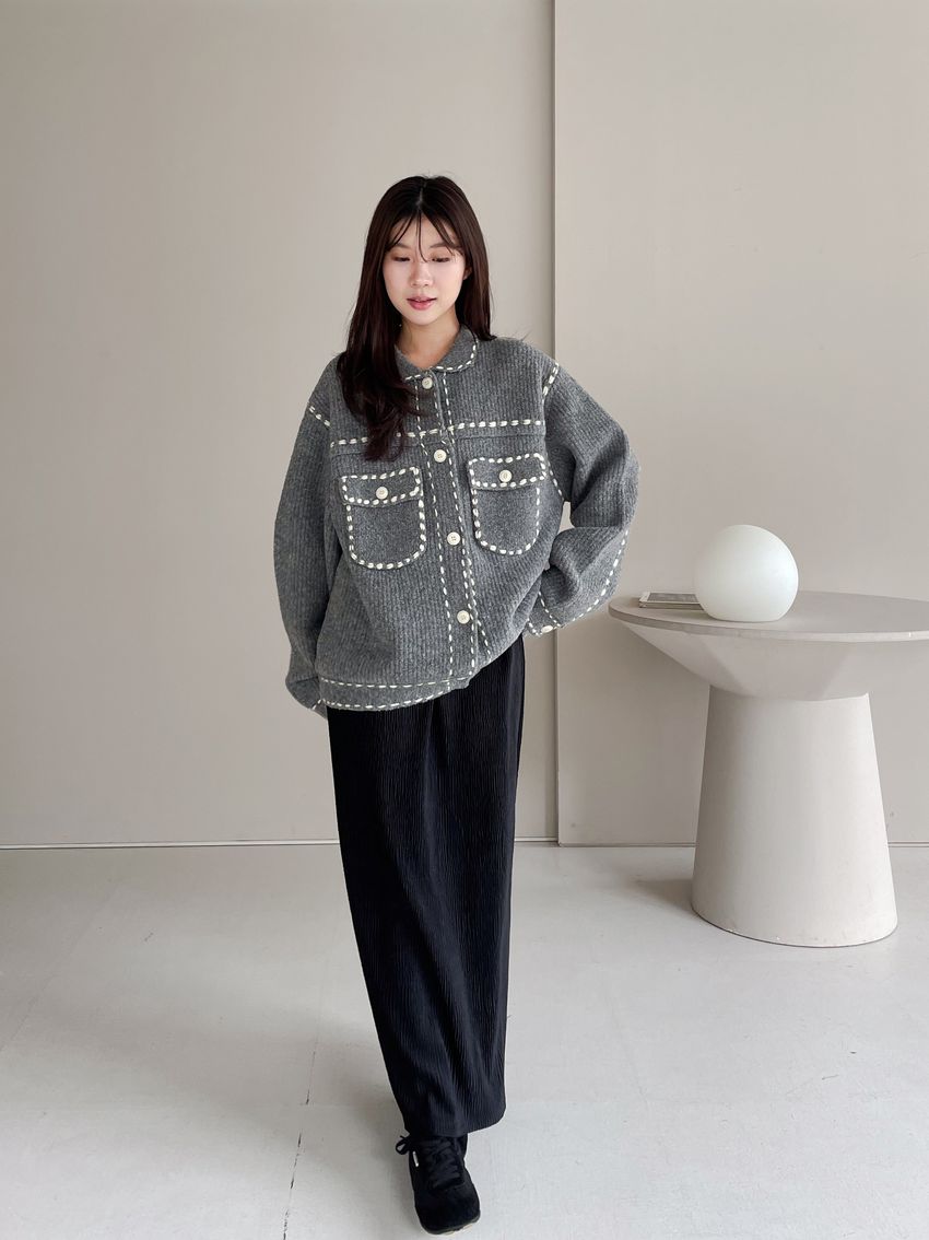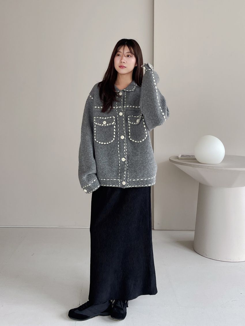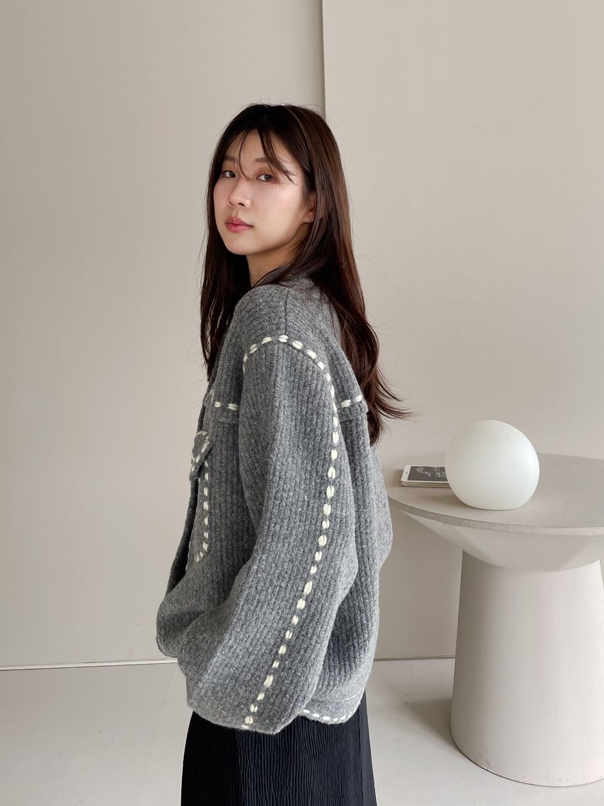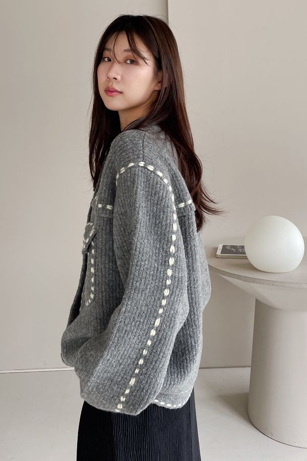 Connie推薦款!虛線口袋羊毛針織外套(特)