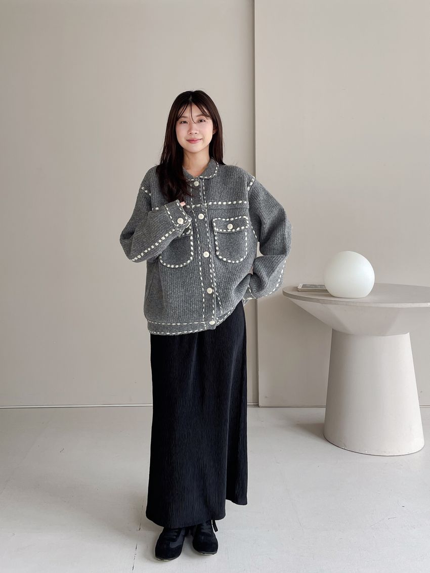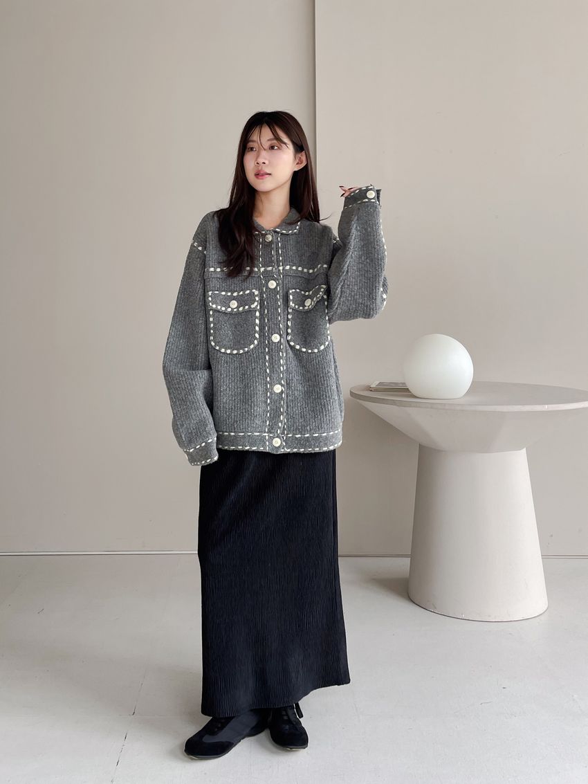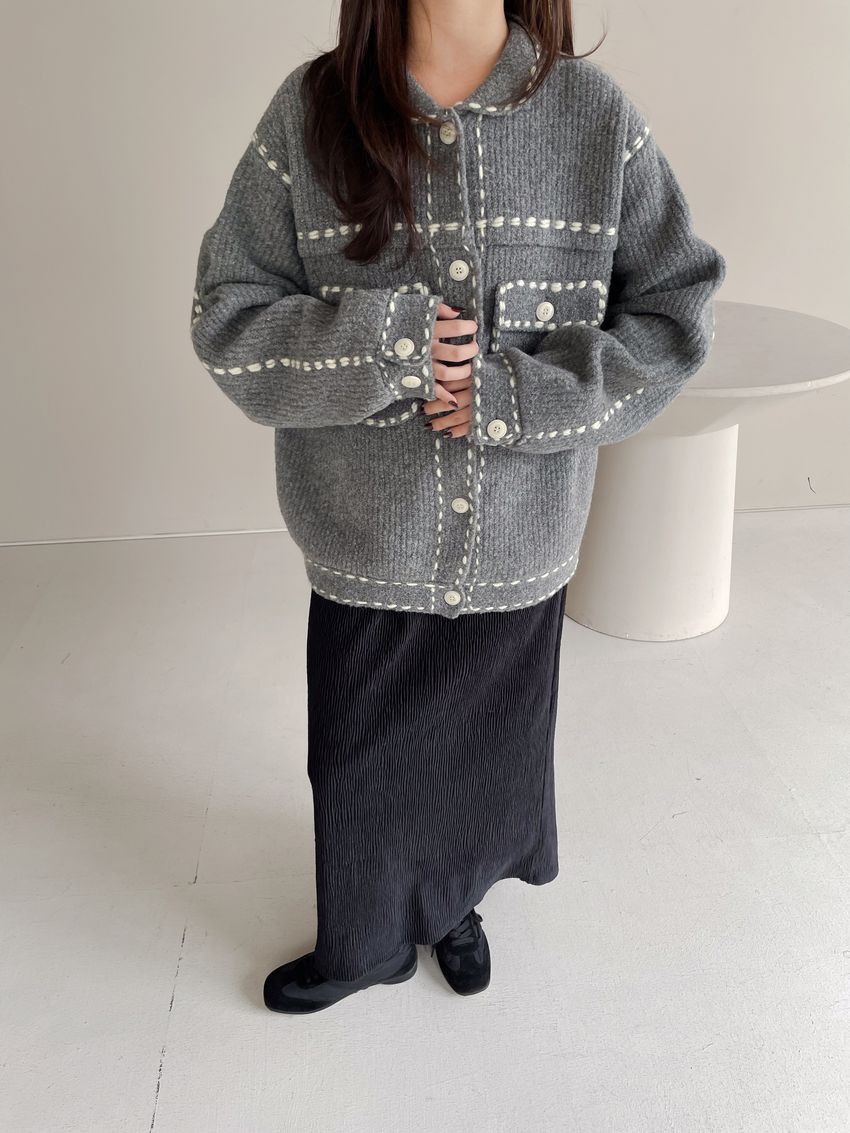 Connie推薦款!虛線口袋羊毛針織外套(特)