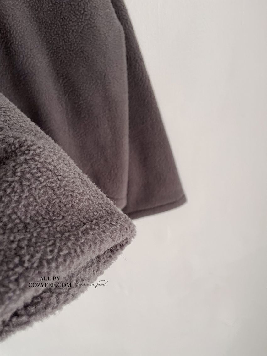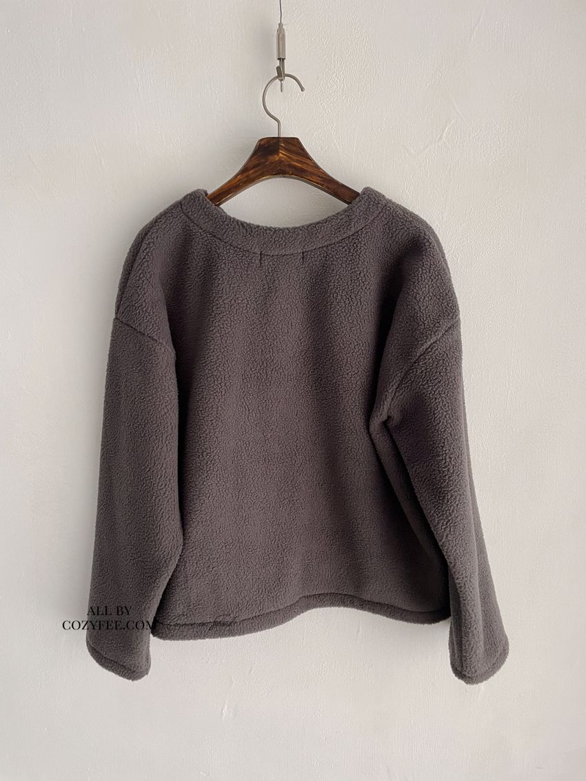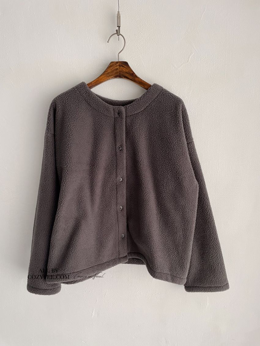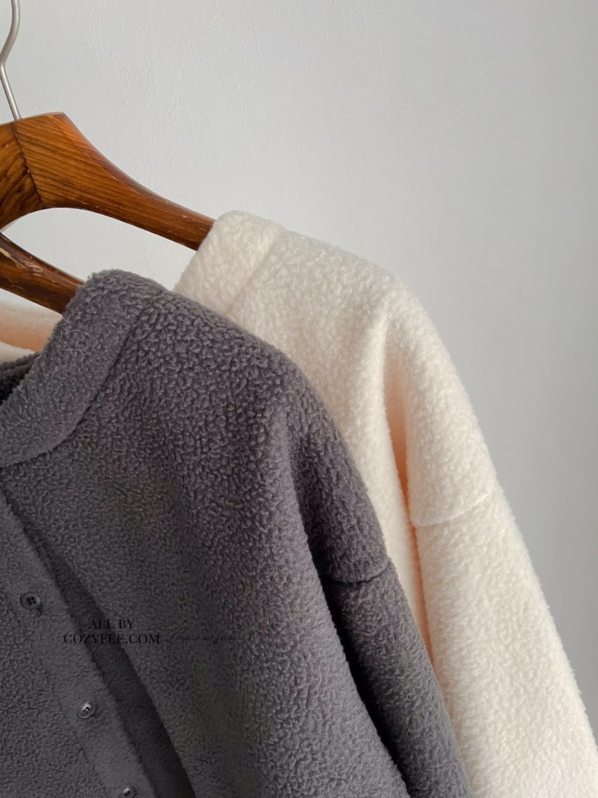 > 圓釦素色絨毛外套