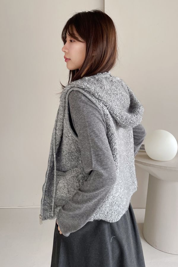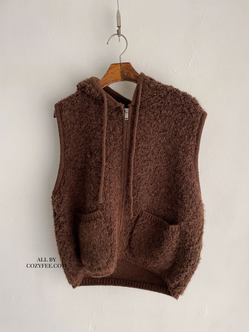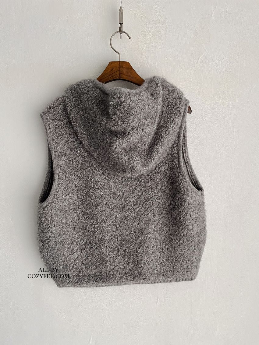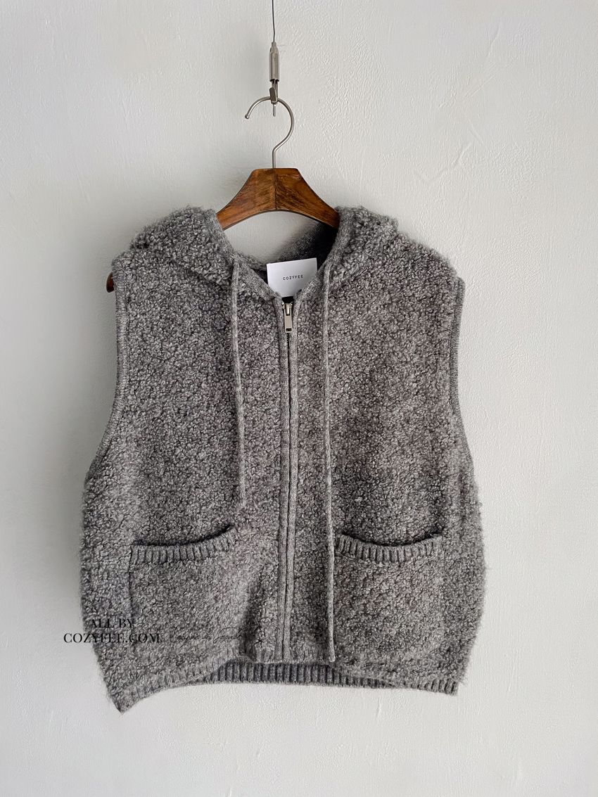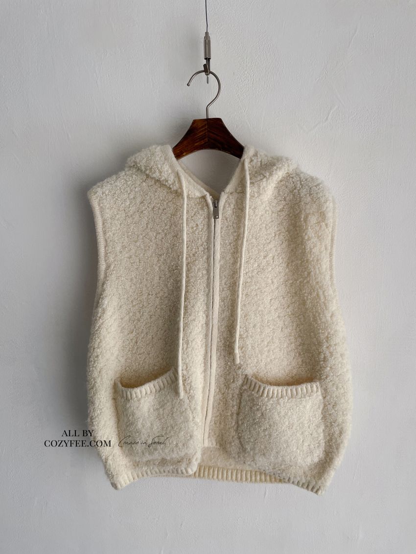 > 羊咩咩針織拉鍊連帽背心(直播款)