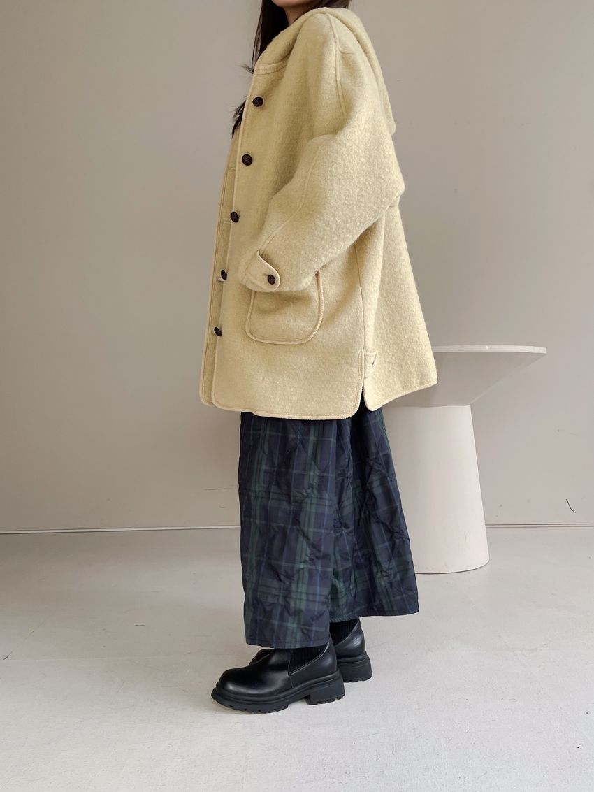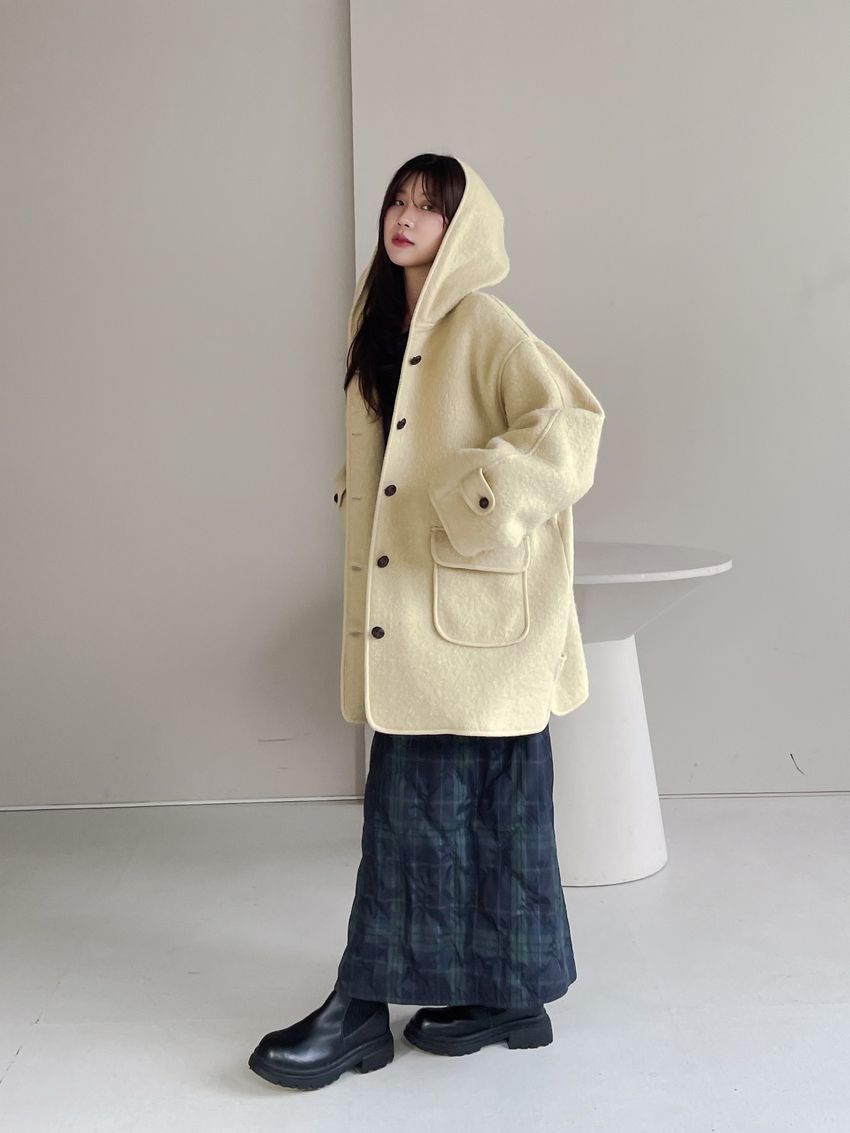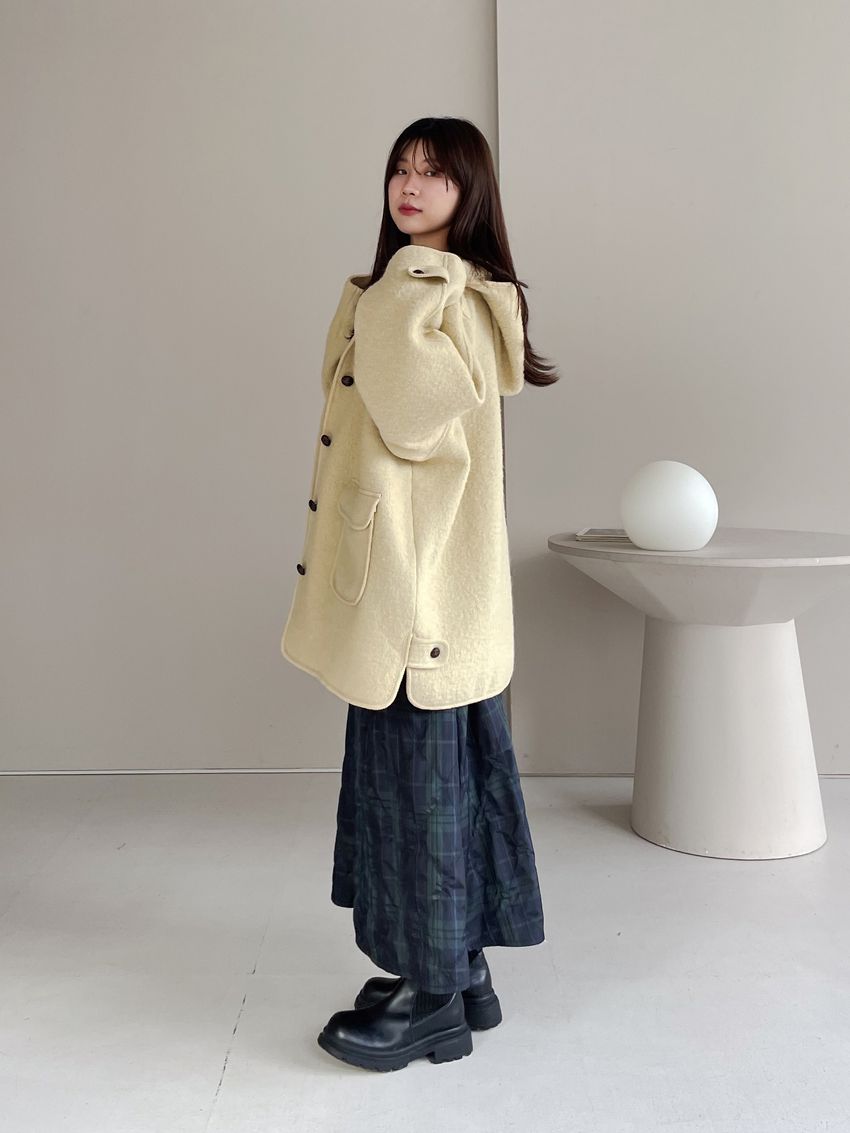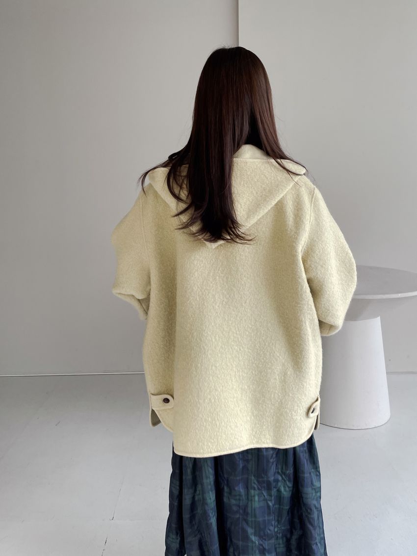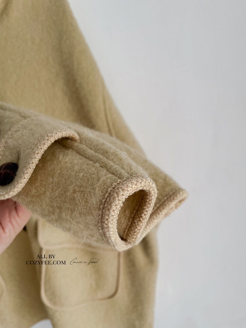 > 羊駝毛木釦連帽大衣(特)