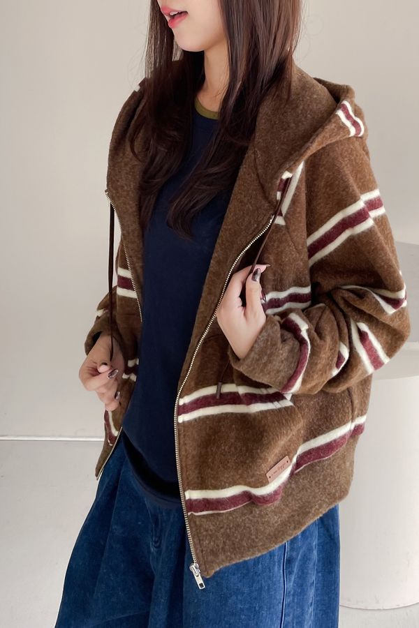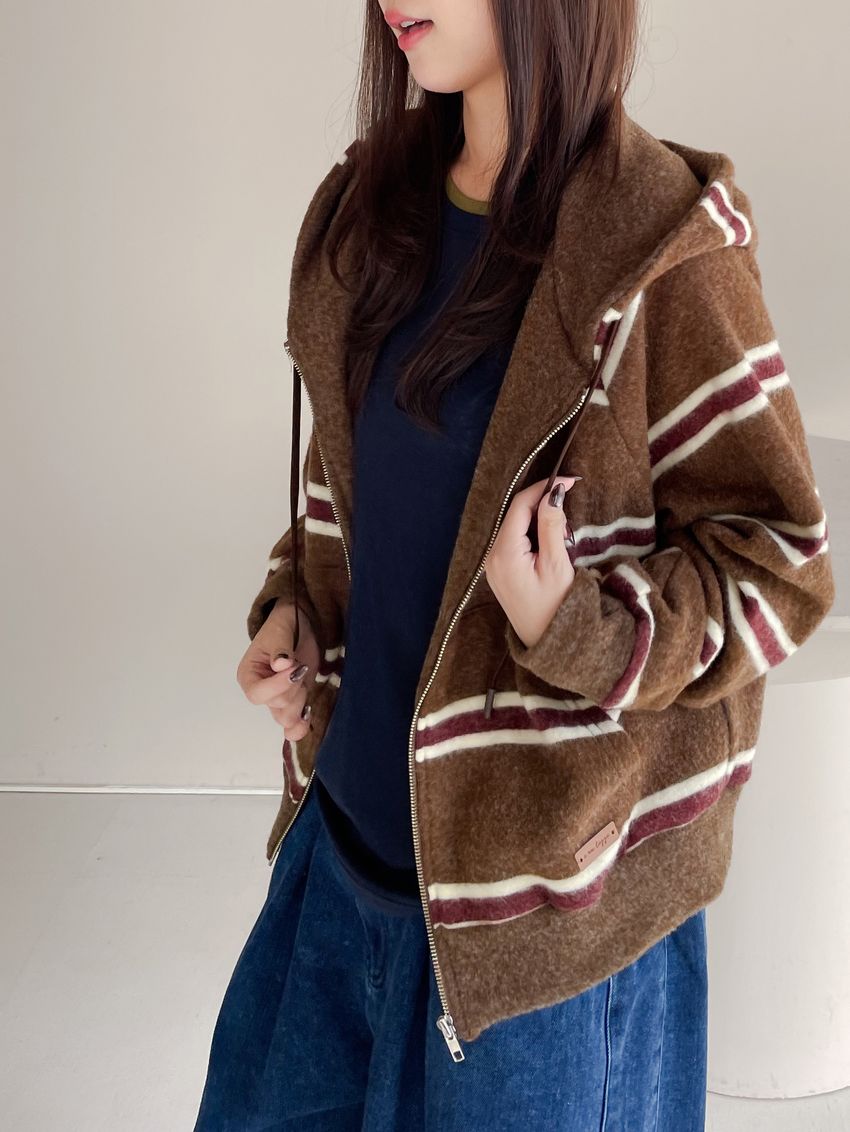 > Connie推薦款!拉鍊連帽小皮標磨毛外套
