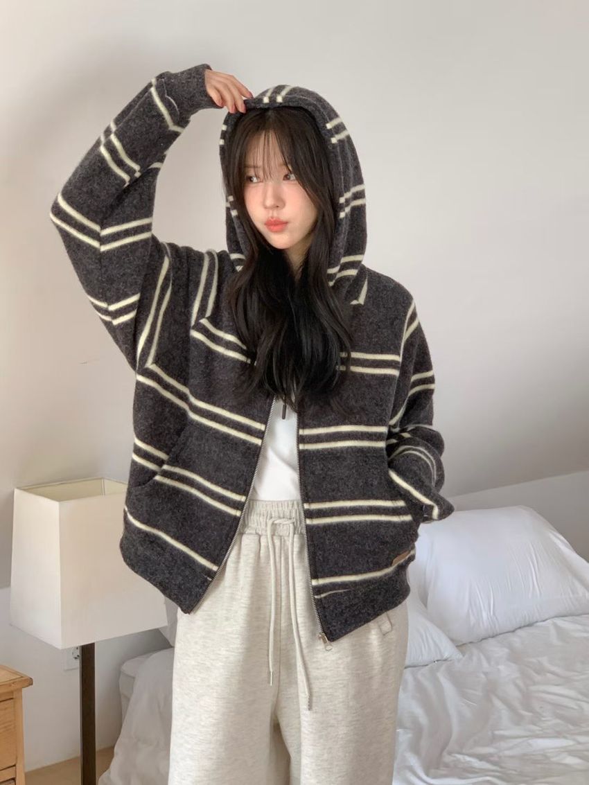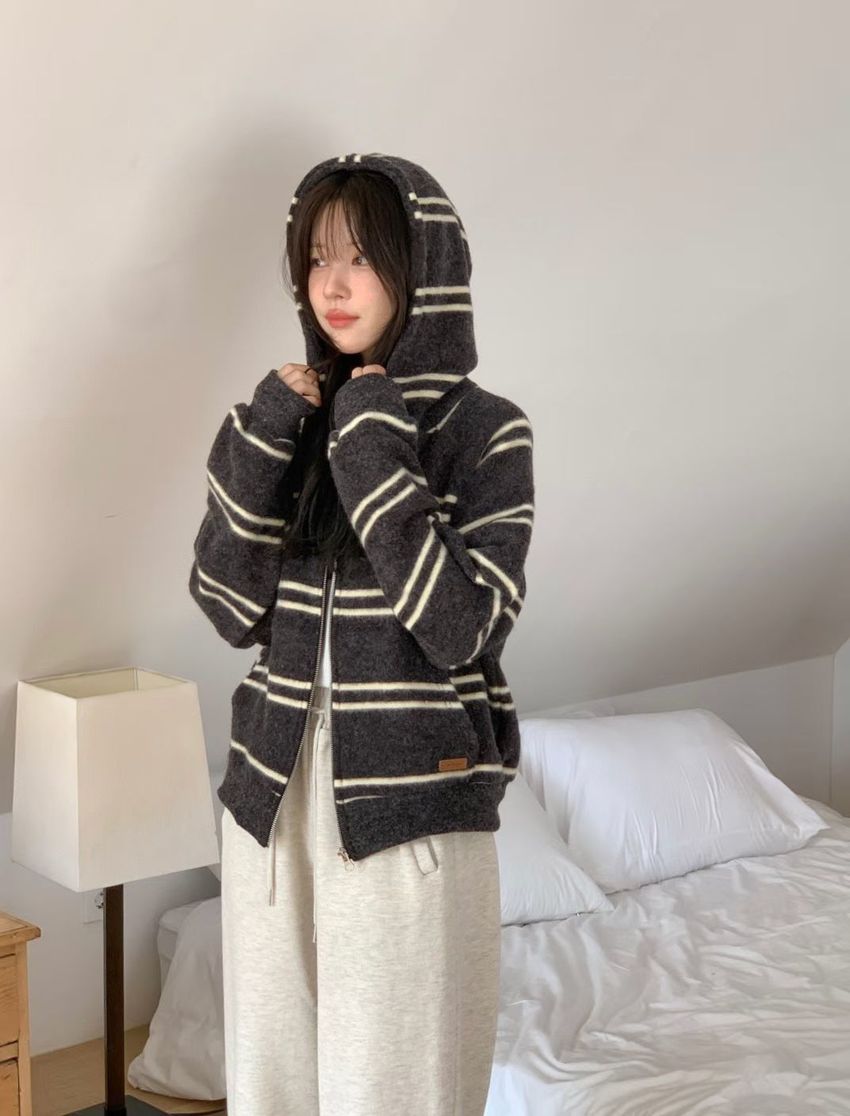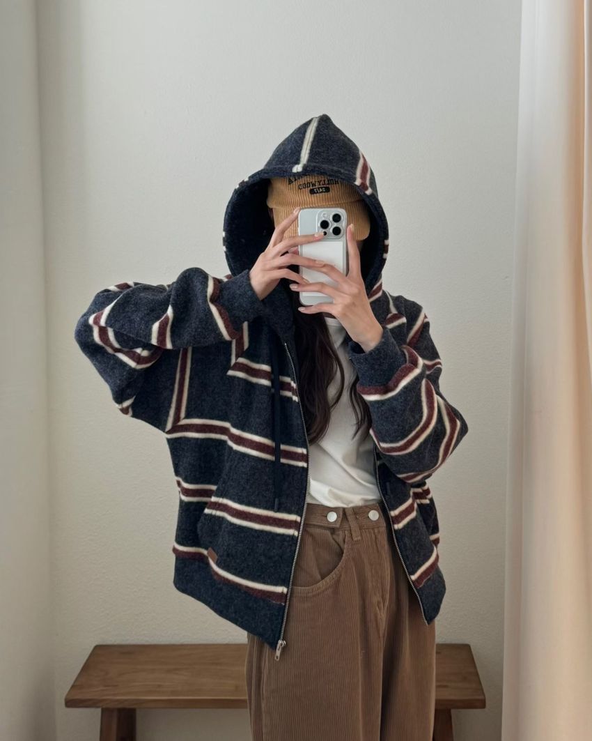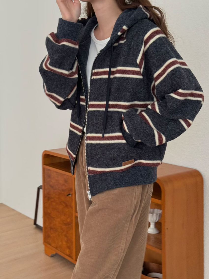 > Connie推薦款!拉鍊連帽小皮標磨毛外套(直播款)