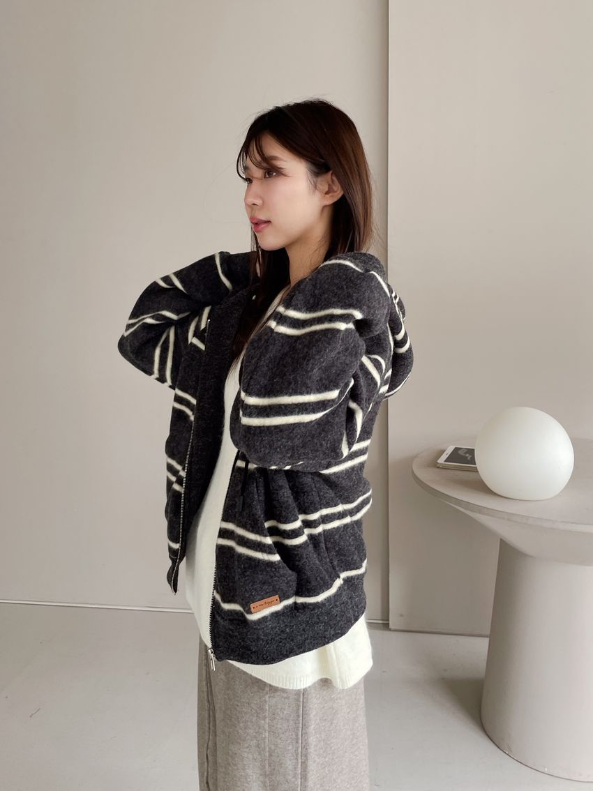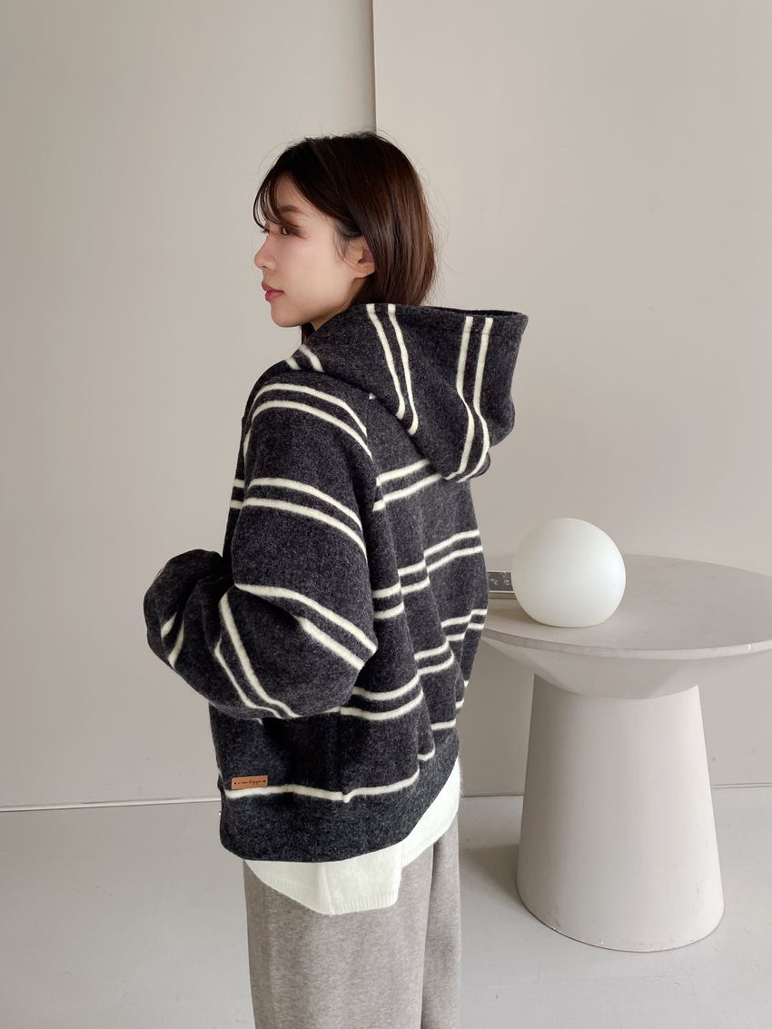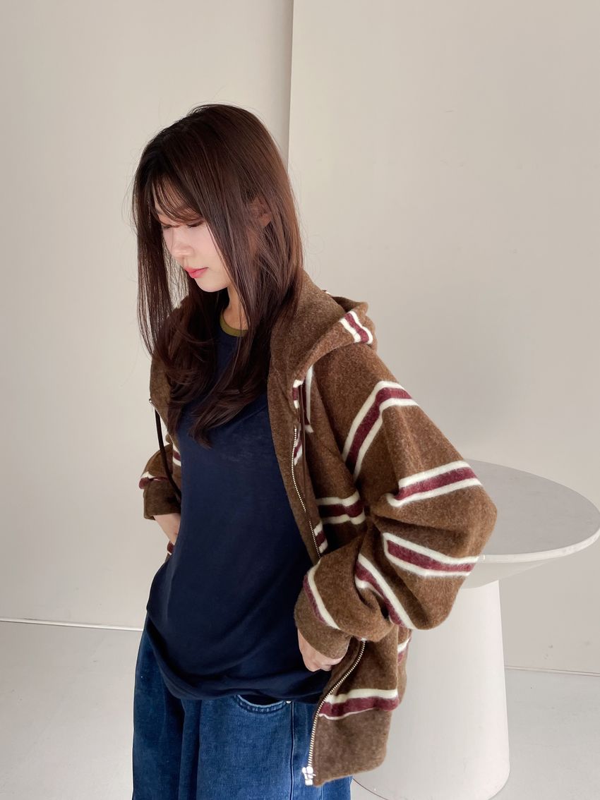 Connie推薦款!拉鍊連帽小皮標磨毛外套