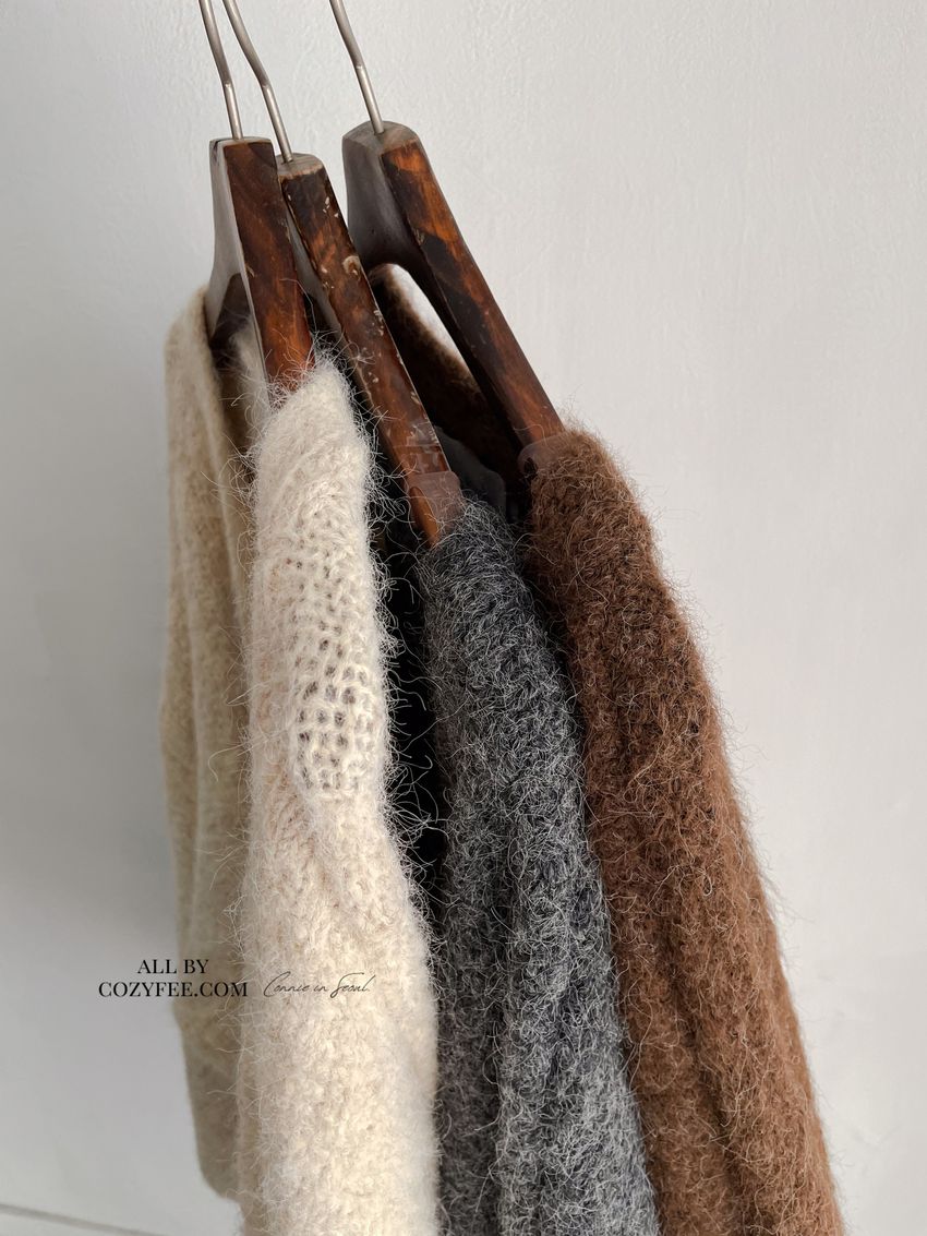 11%wool 11%nylon 41%poly 35%acrylic 2%span開襟無釦設計米杏色 / 深灰色 / 咖啡色model / Yen - 159cm / 44kg 腰24 臀34開始處7:19開始處1:45:45