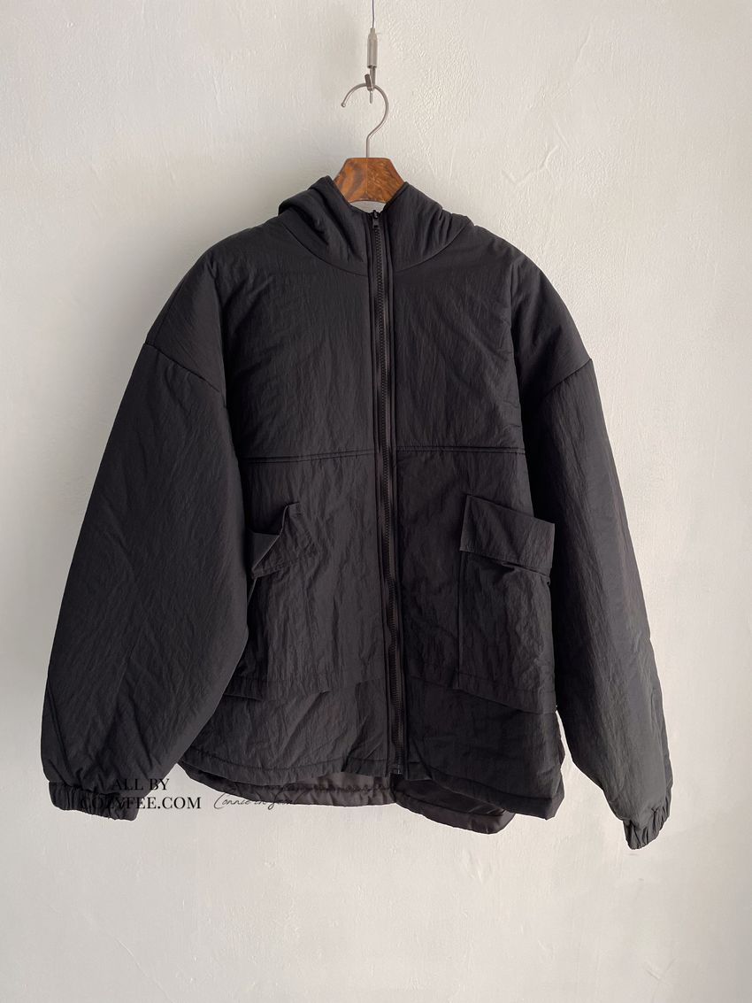> 直立口袋連帽滑布外套(特)(直播款)