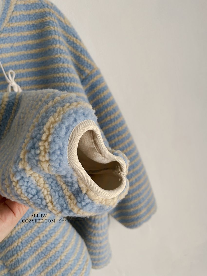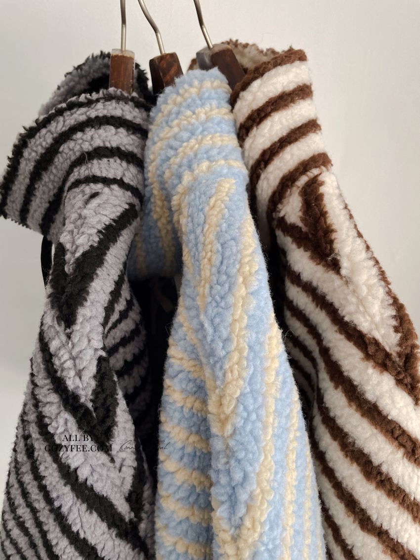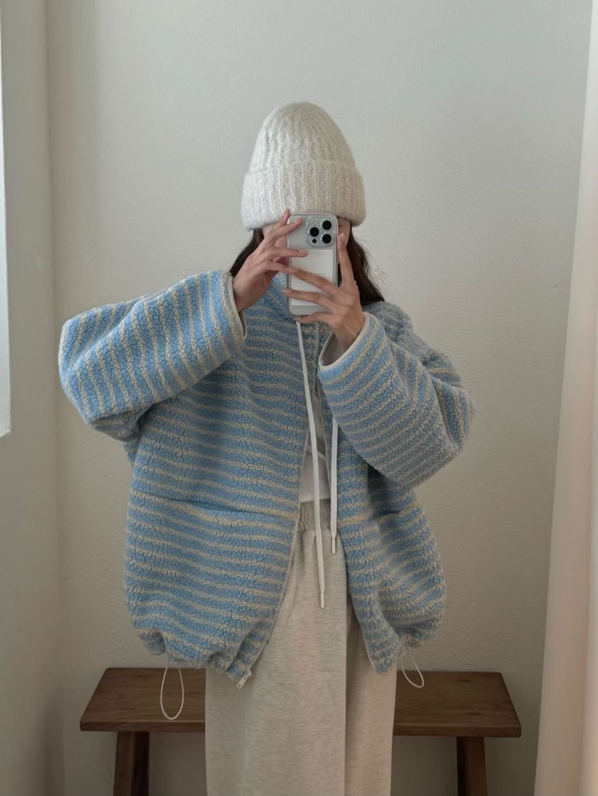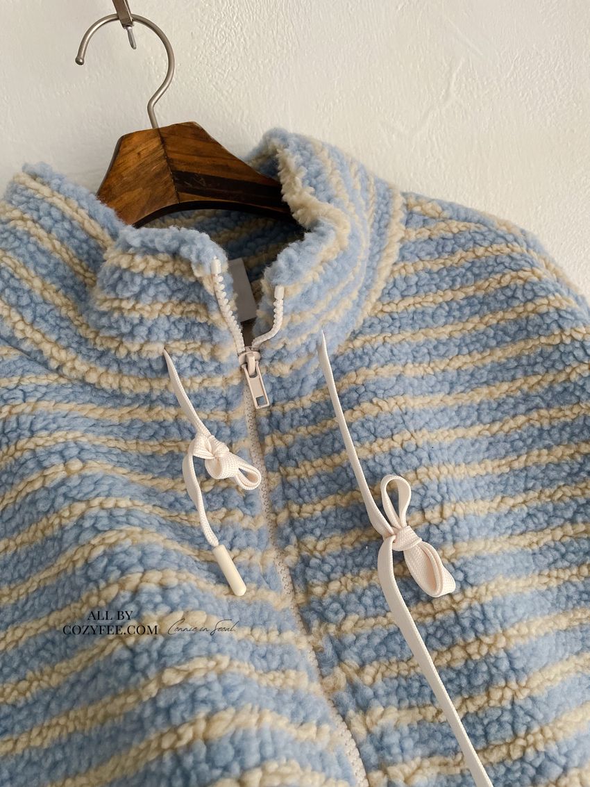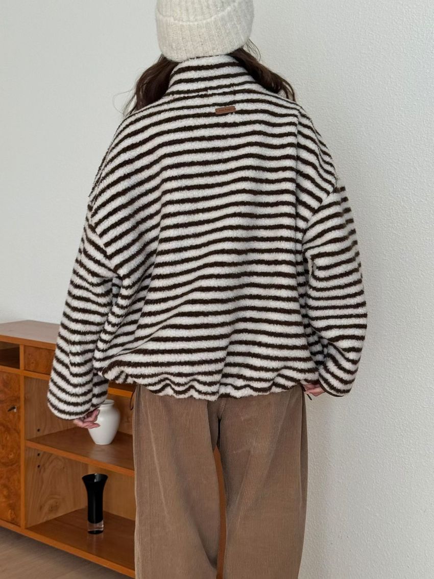 Connie推薦款!立領條紋羔羊毛拉鍊外套(特)(直播款)