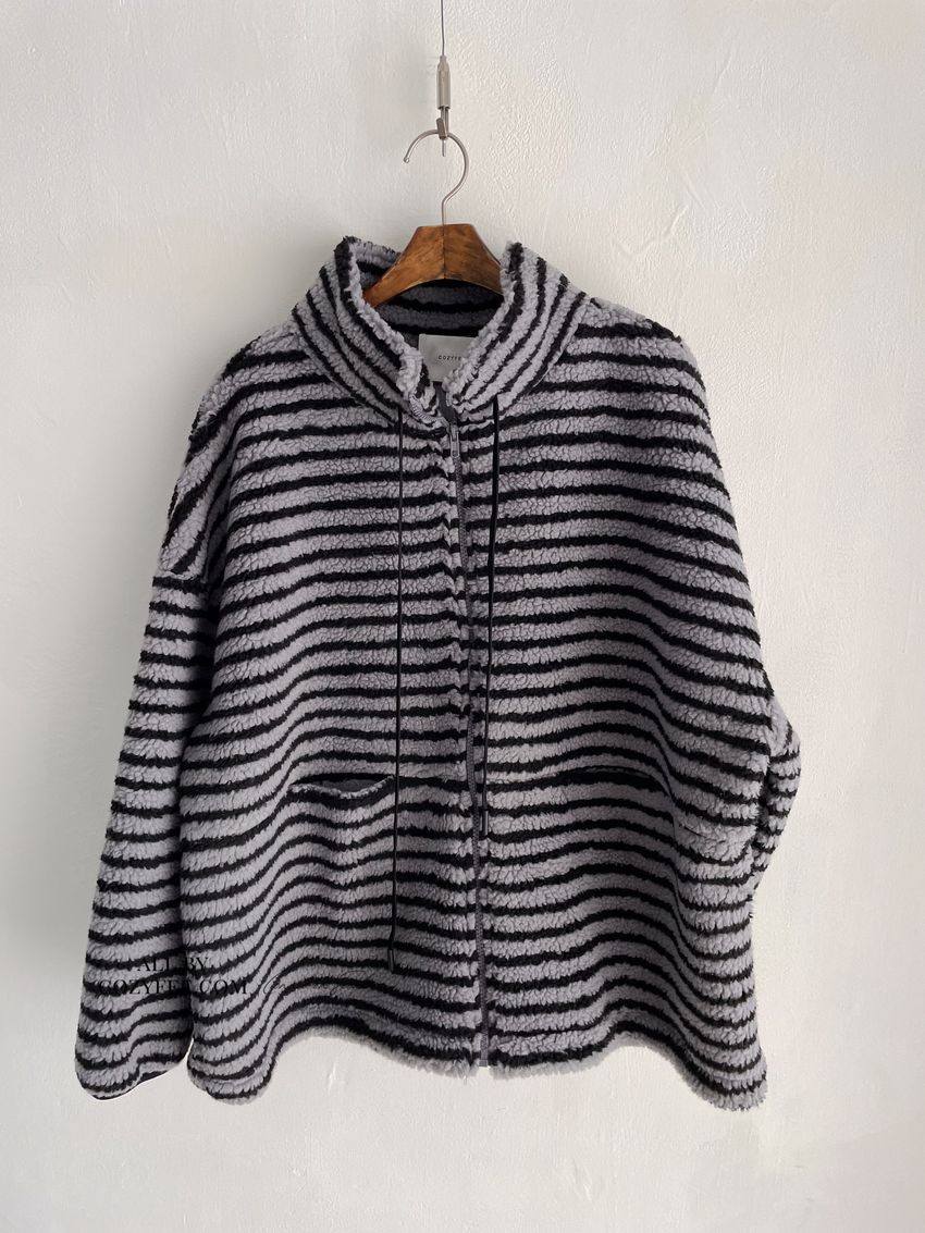 > Connie推薦款!立領條紋羔羊毛拉鍊外套(特)(直播款)