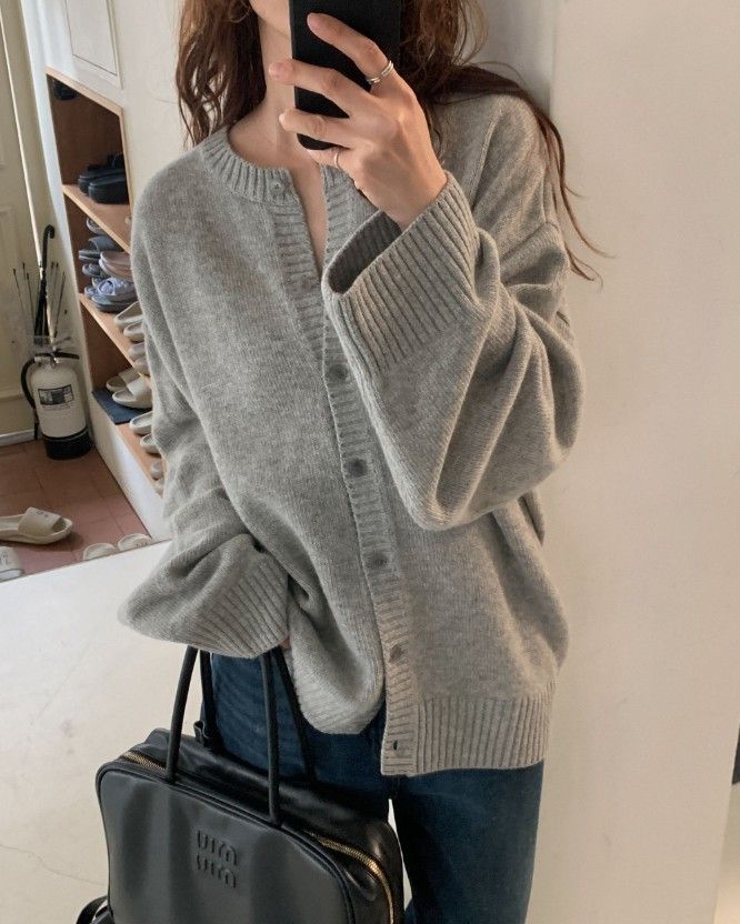 > 鬆弛寬大羊毛針織外套