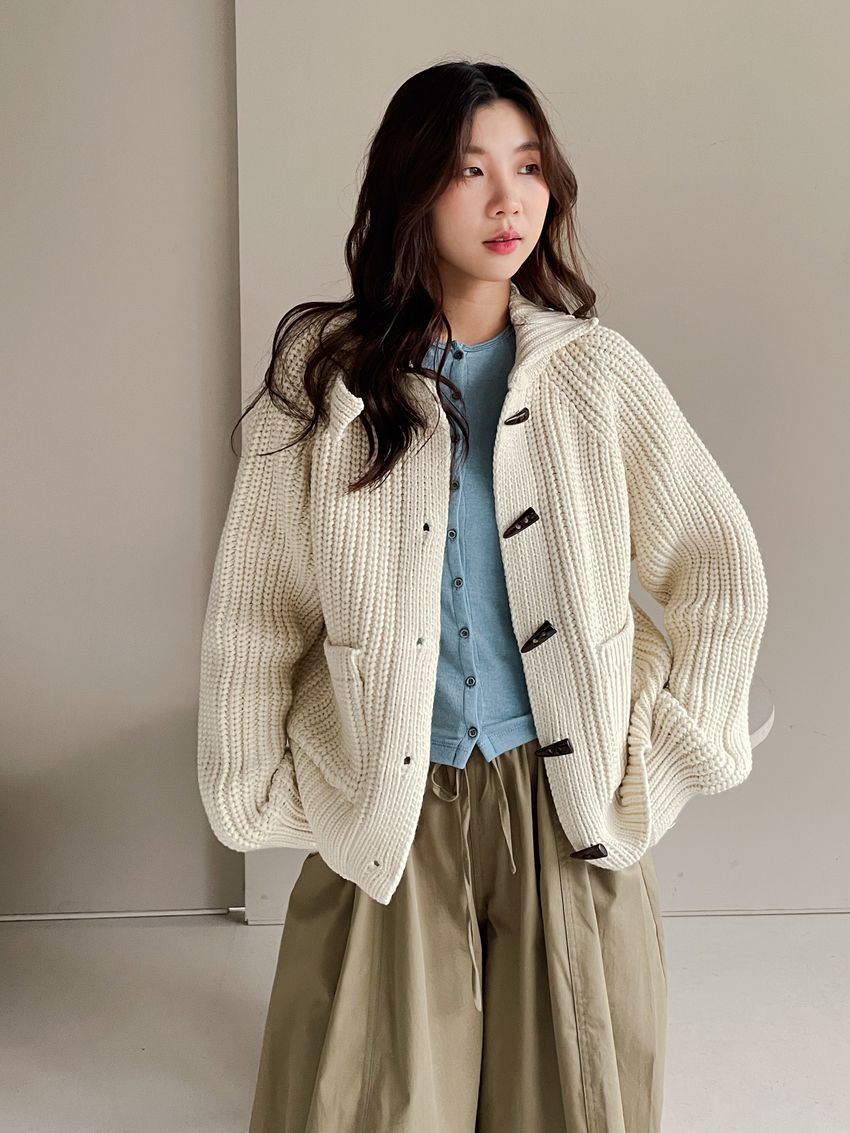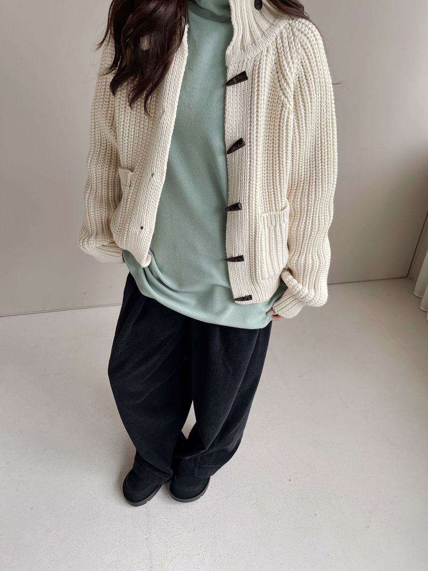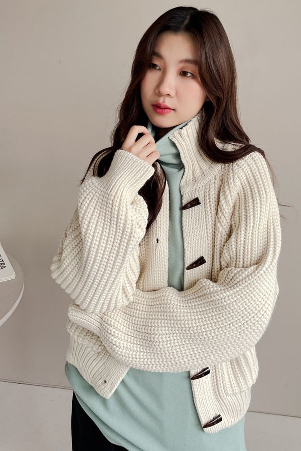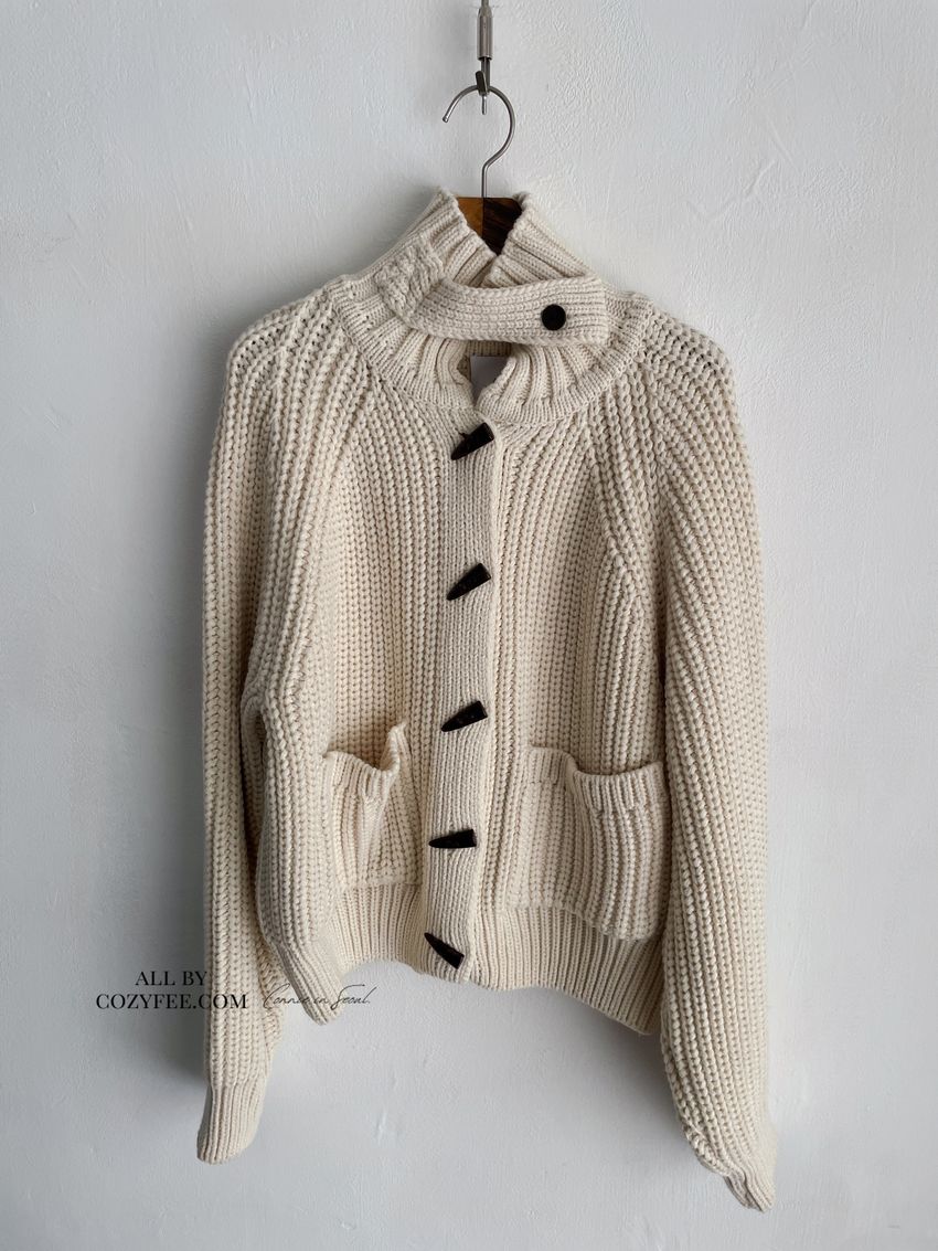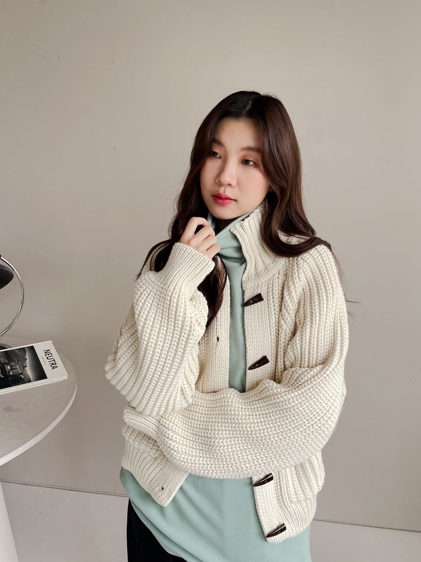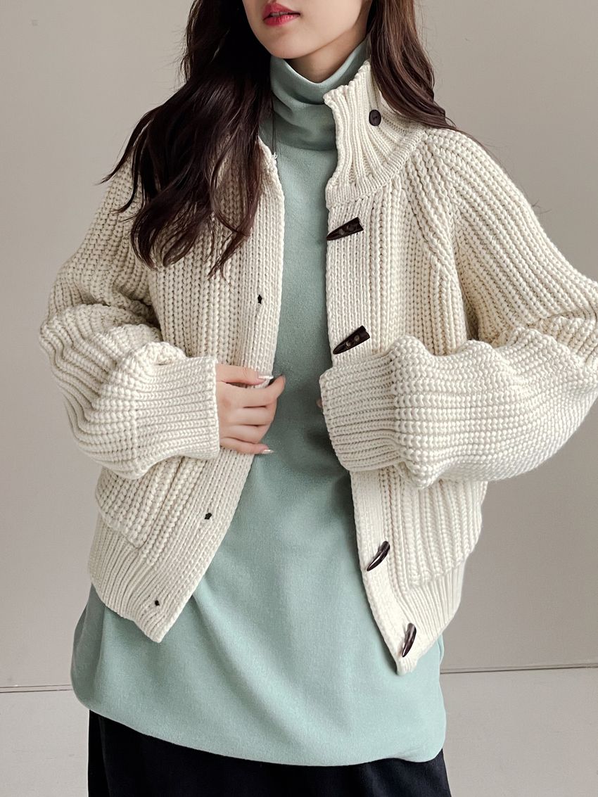 > 牛角釦立領勾織外套