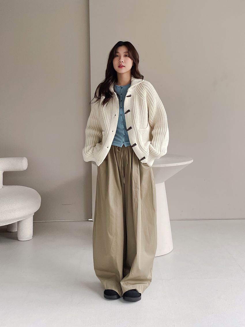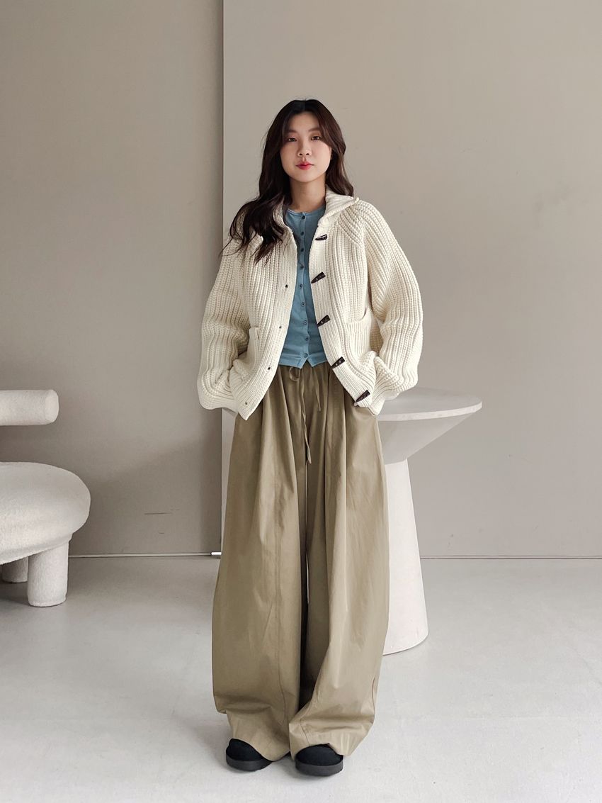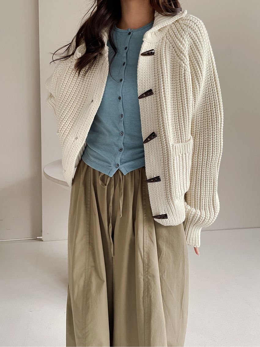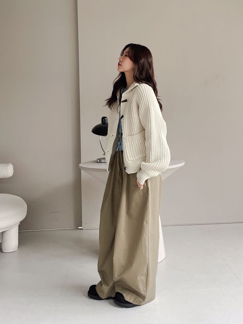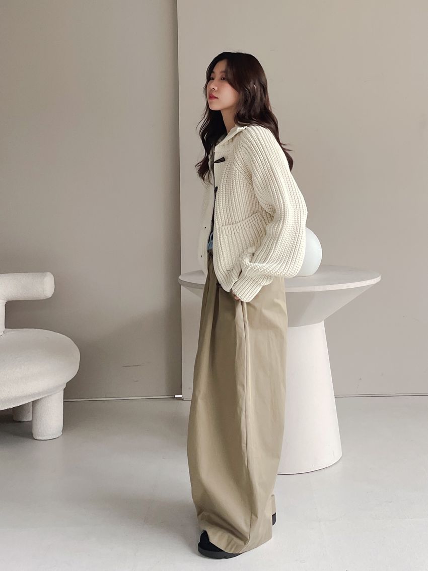 > 牛角釦立領勾織外套