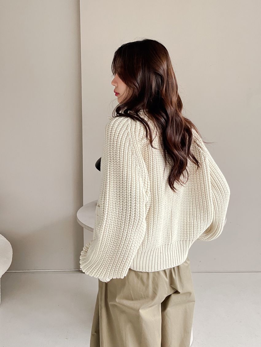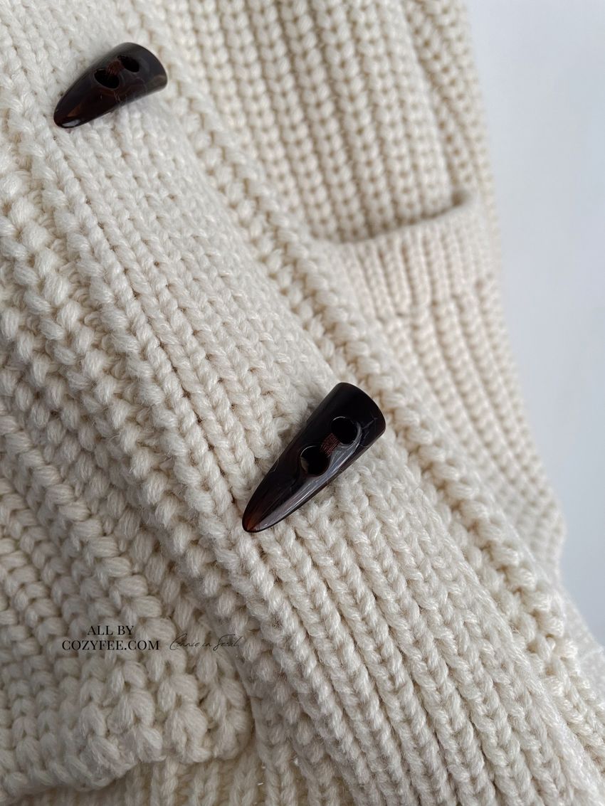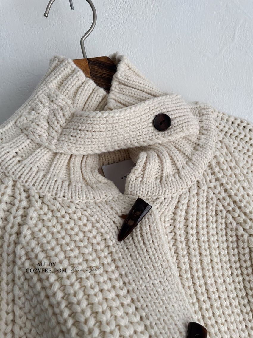 牛角釦立領勾織外套