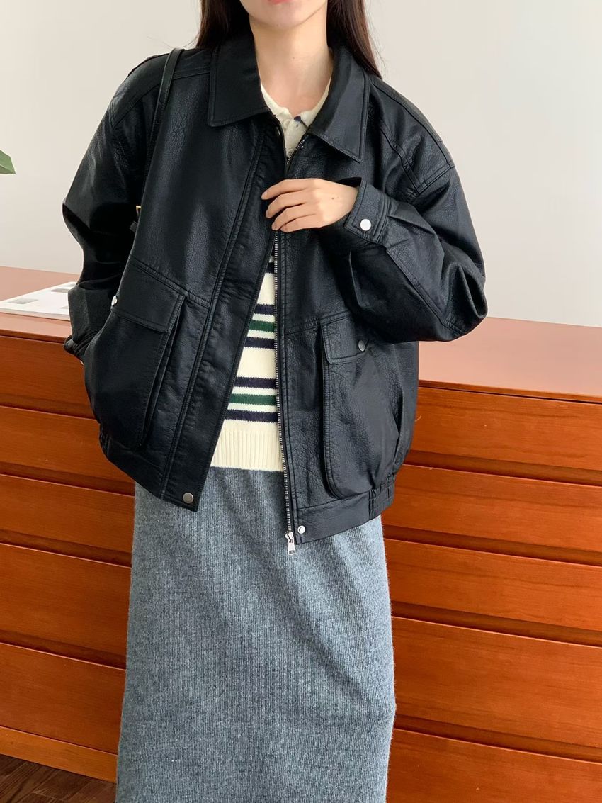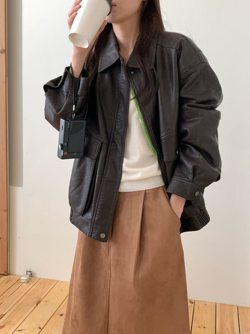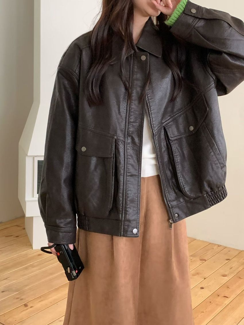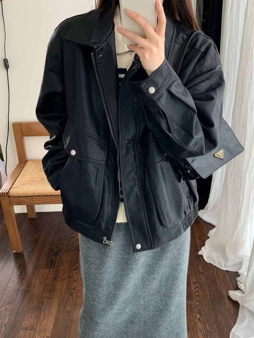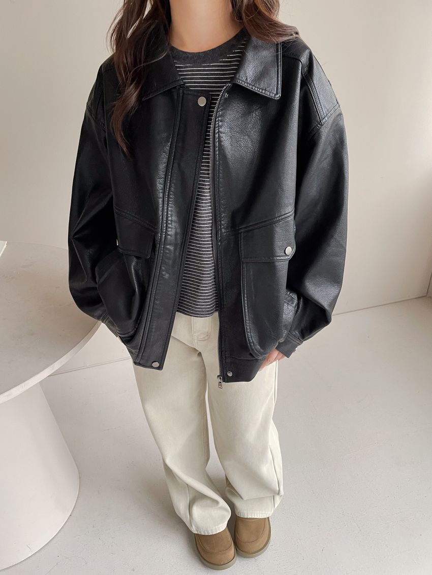 > Connie推薦款!經典百搭翻領皮外套(特)