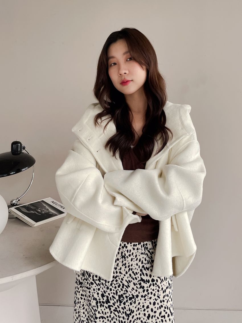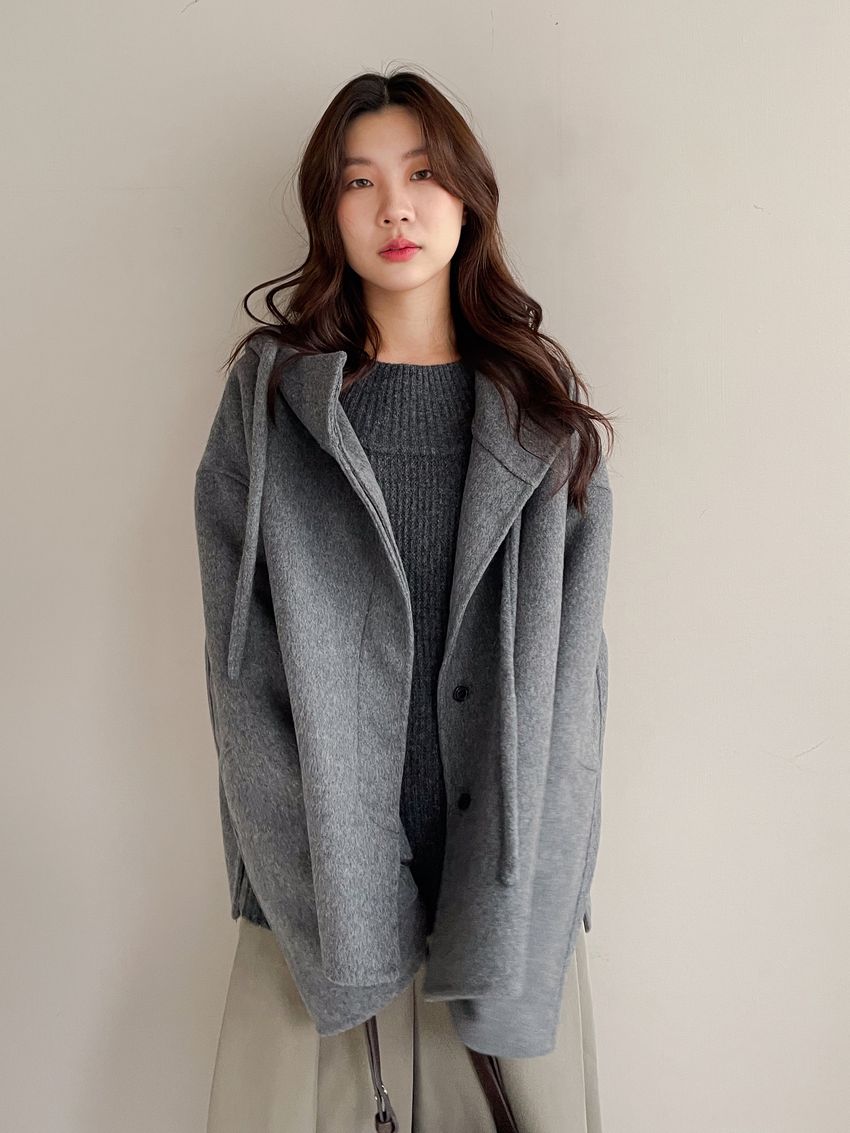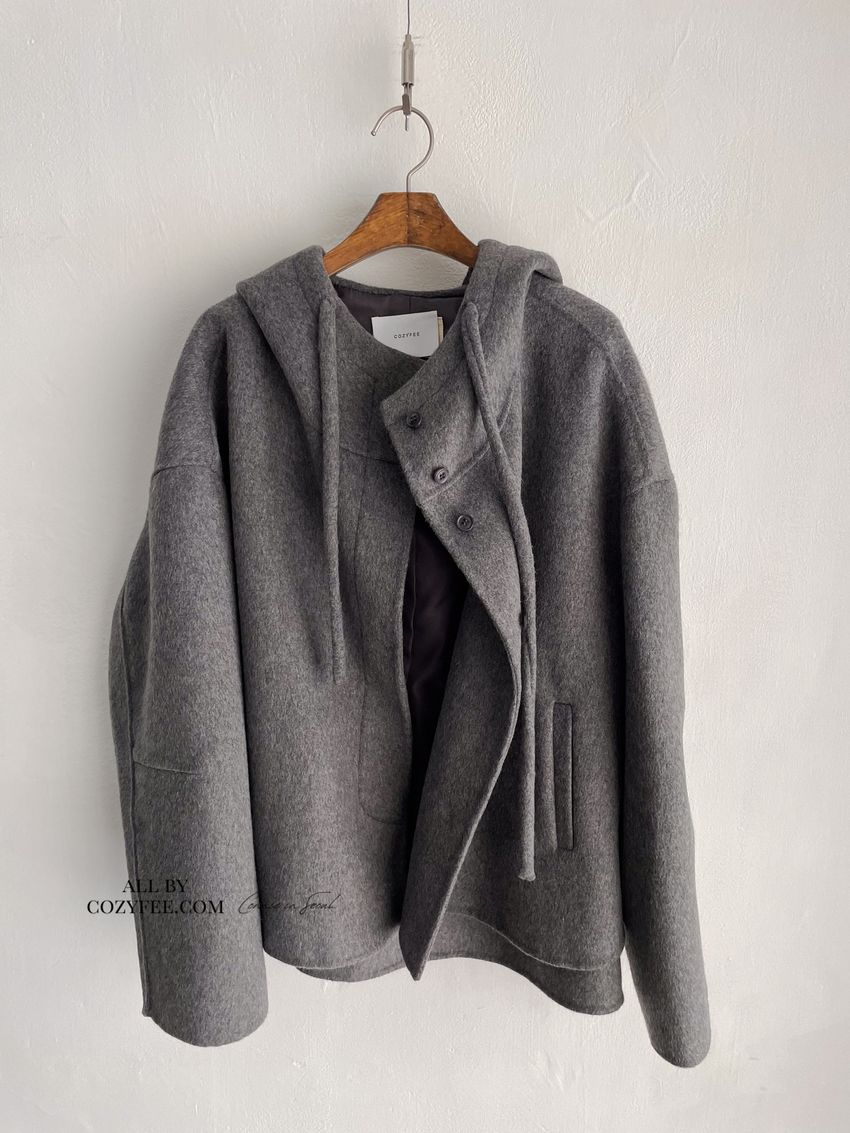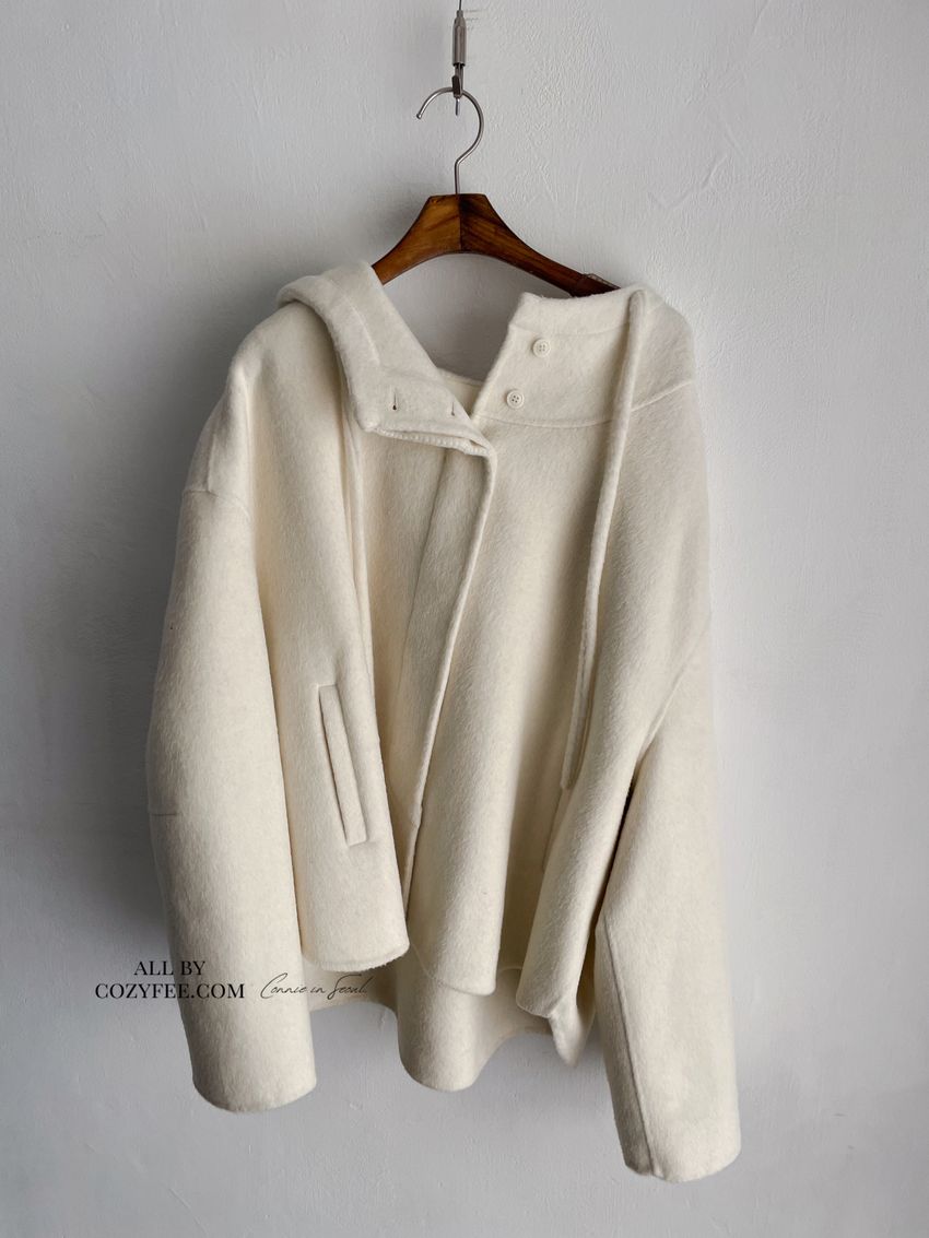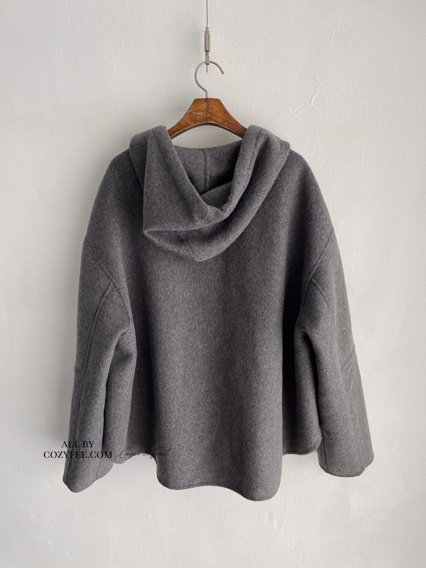 Connie推薦款!斗篷感連帽100%手工羊毛大衣(特)