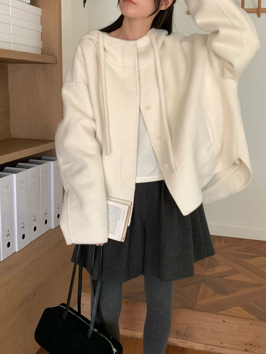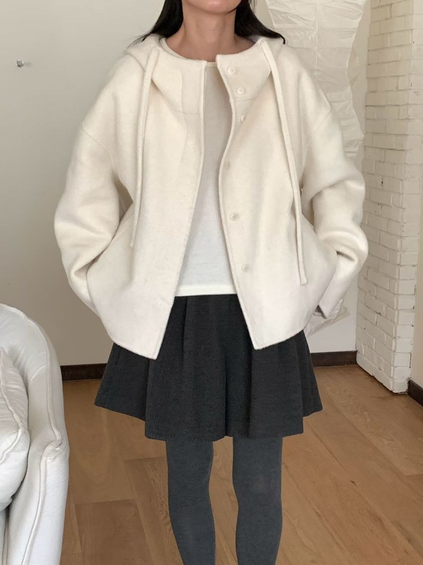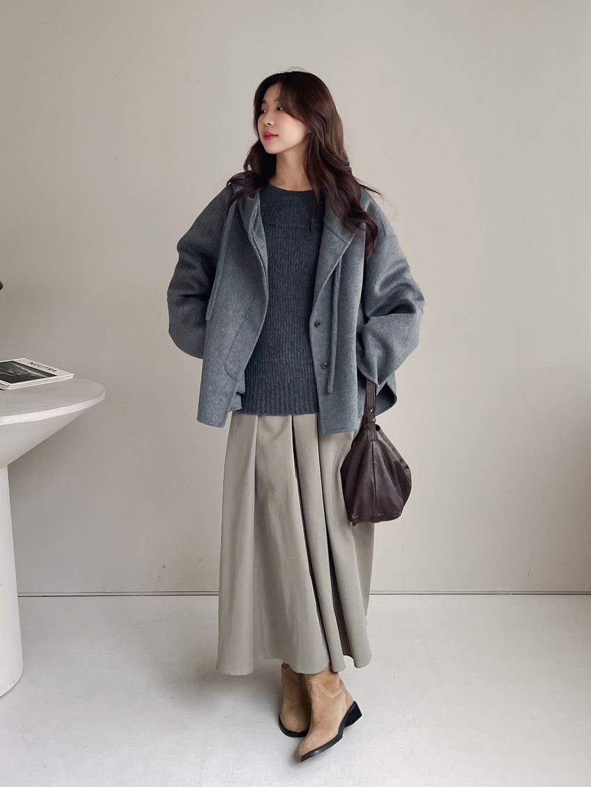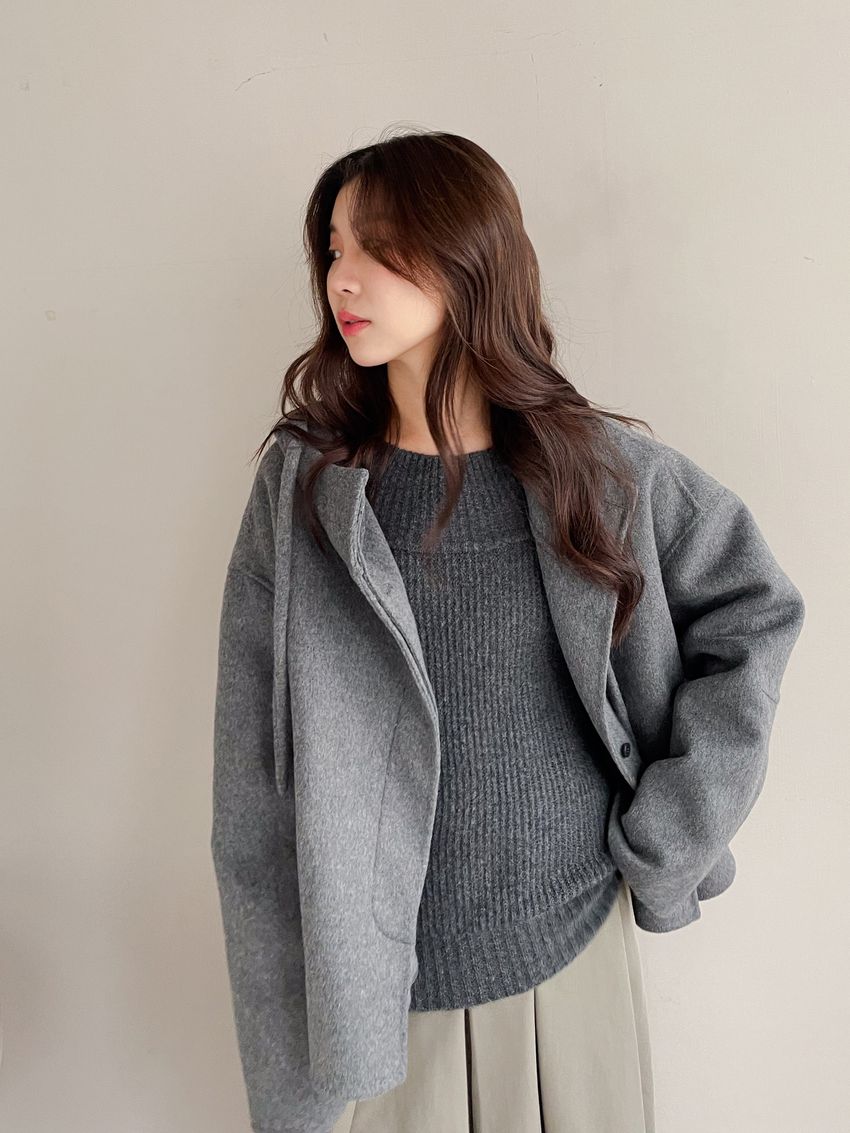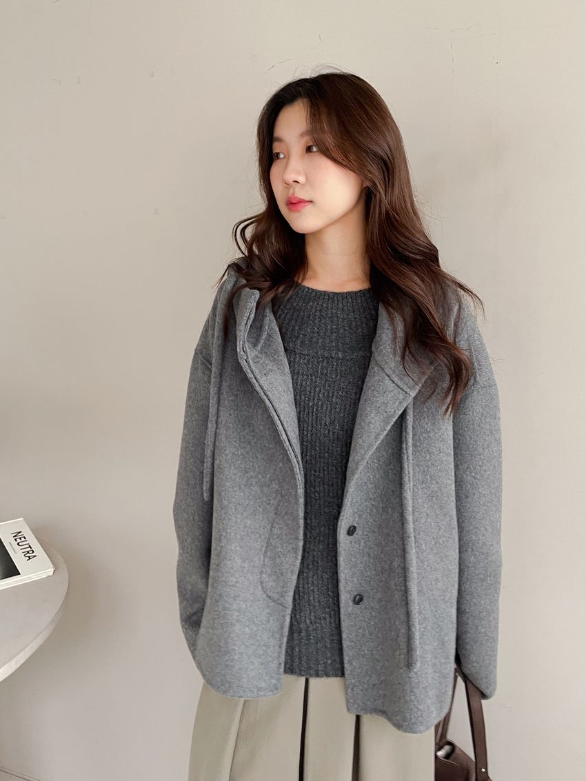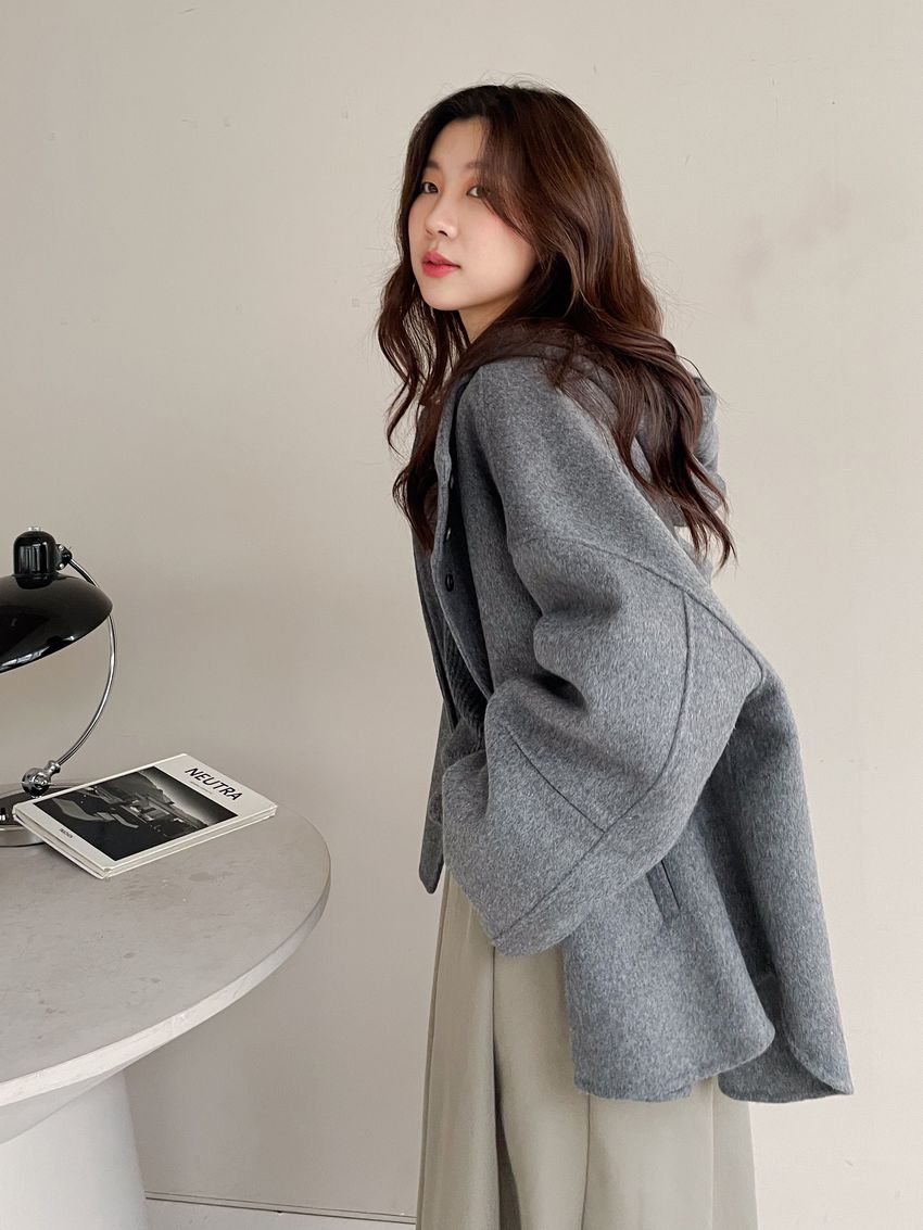 Connie推薦款!斗篷感連帽100%手工羊毛大衣(特)