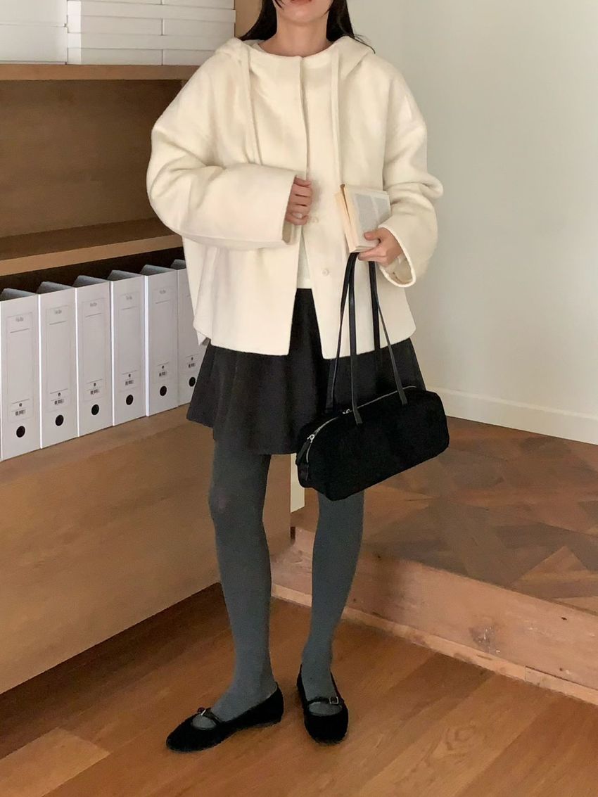 > Connie推薦款!斗篷感連帽100%手工羊毛大衣(特)