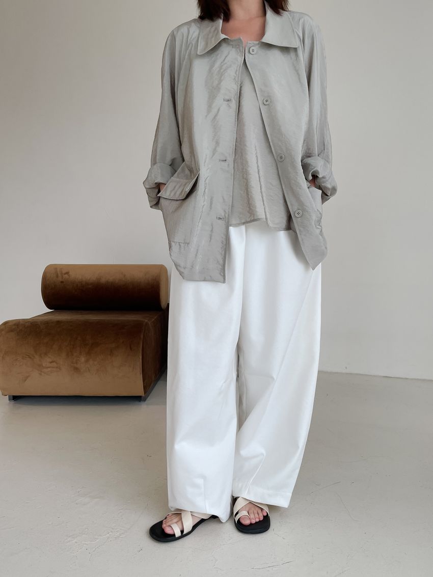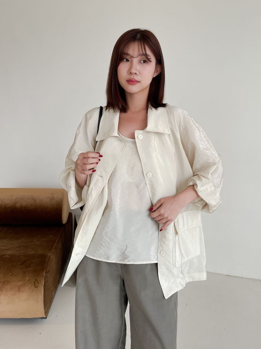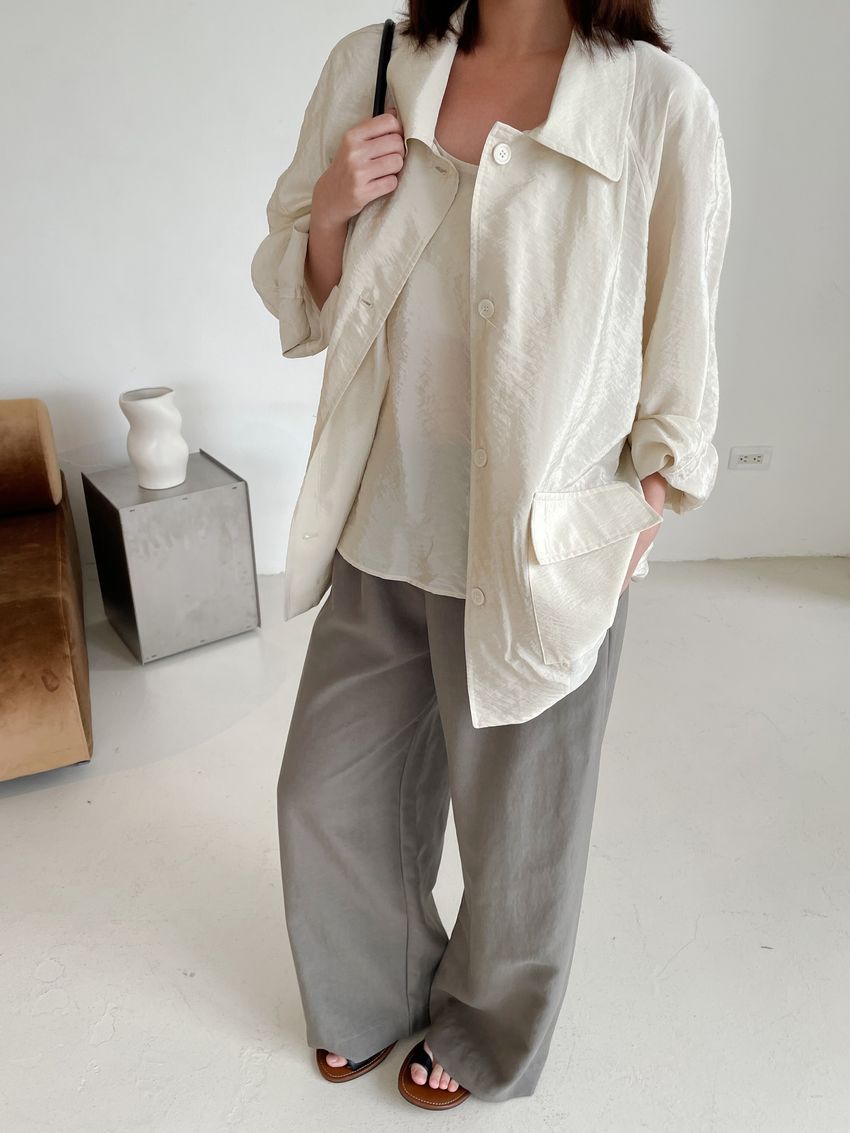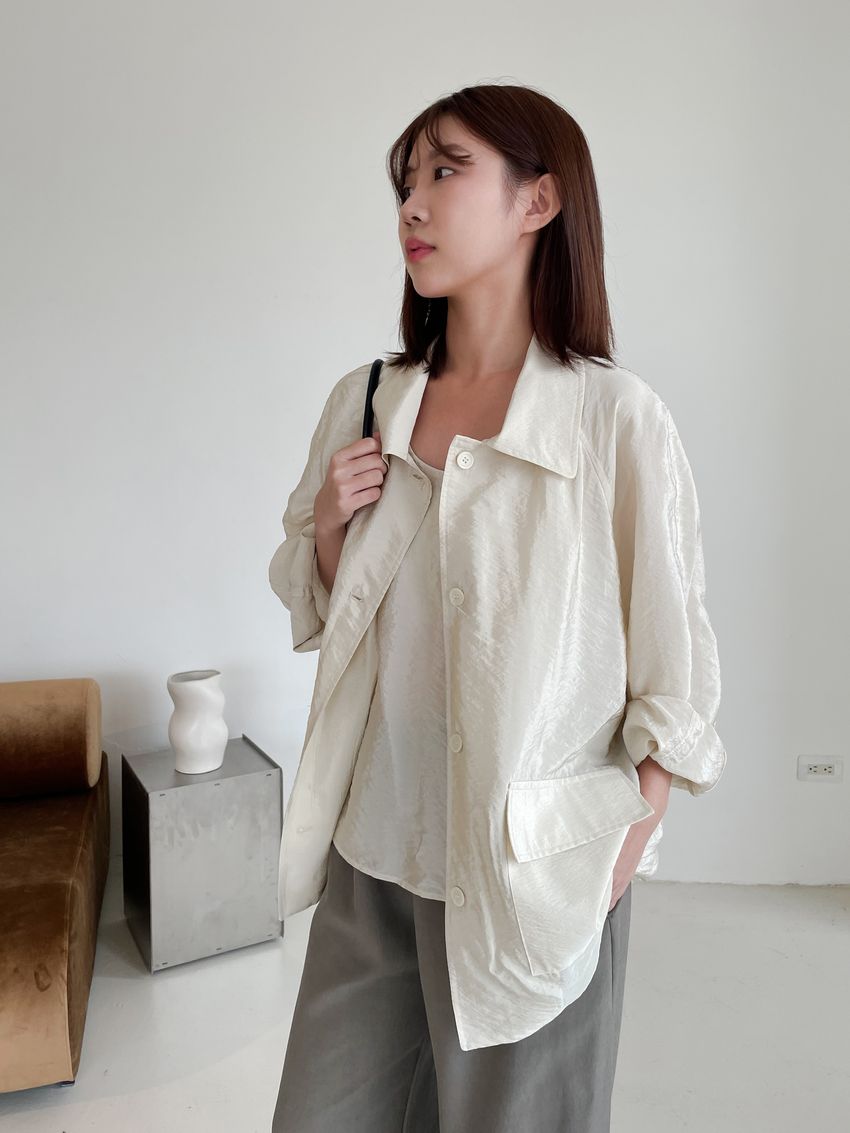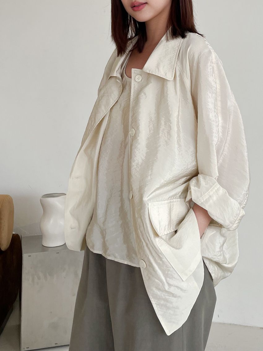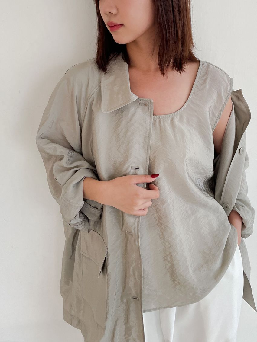軟料光澤感翻領外套