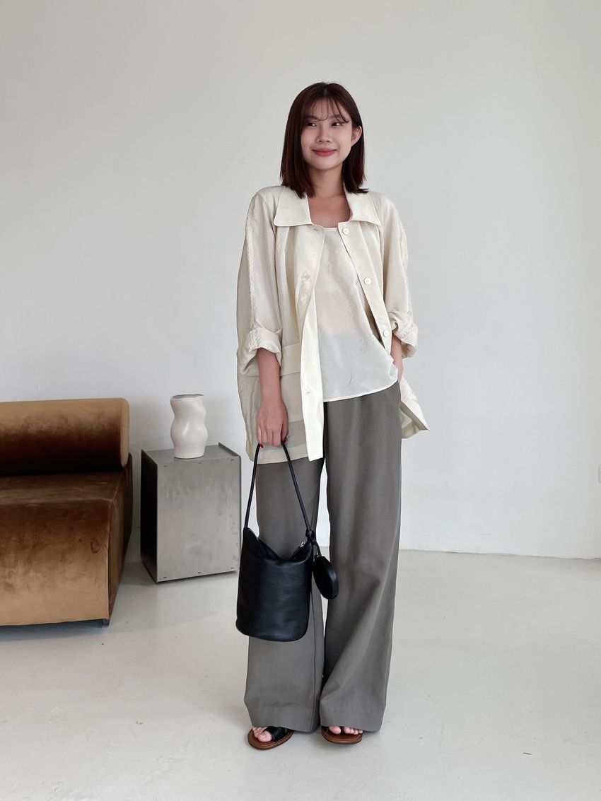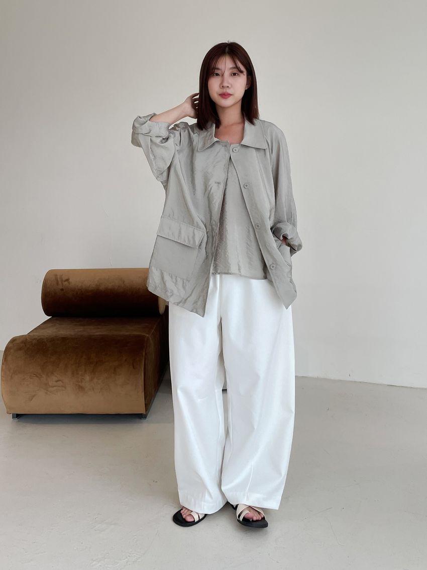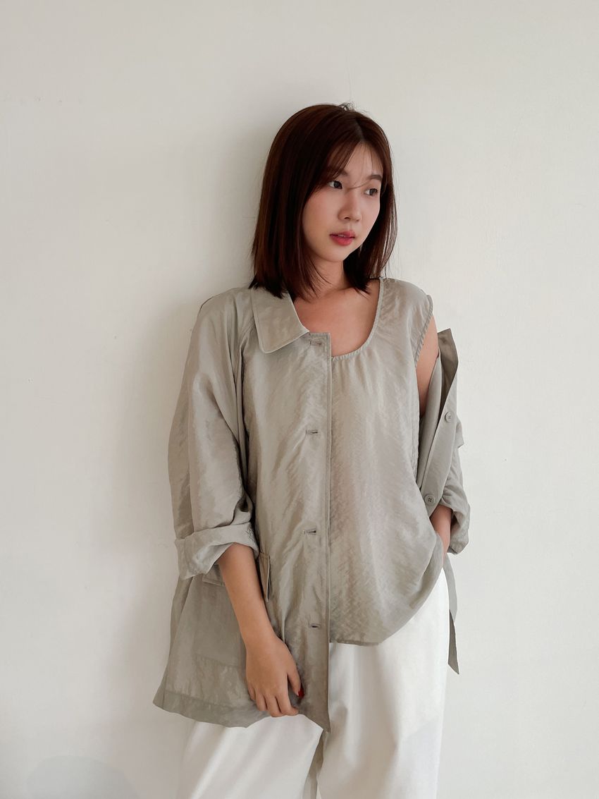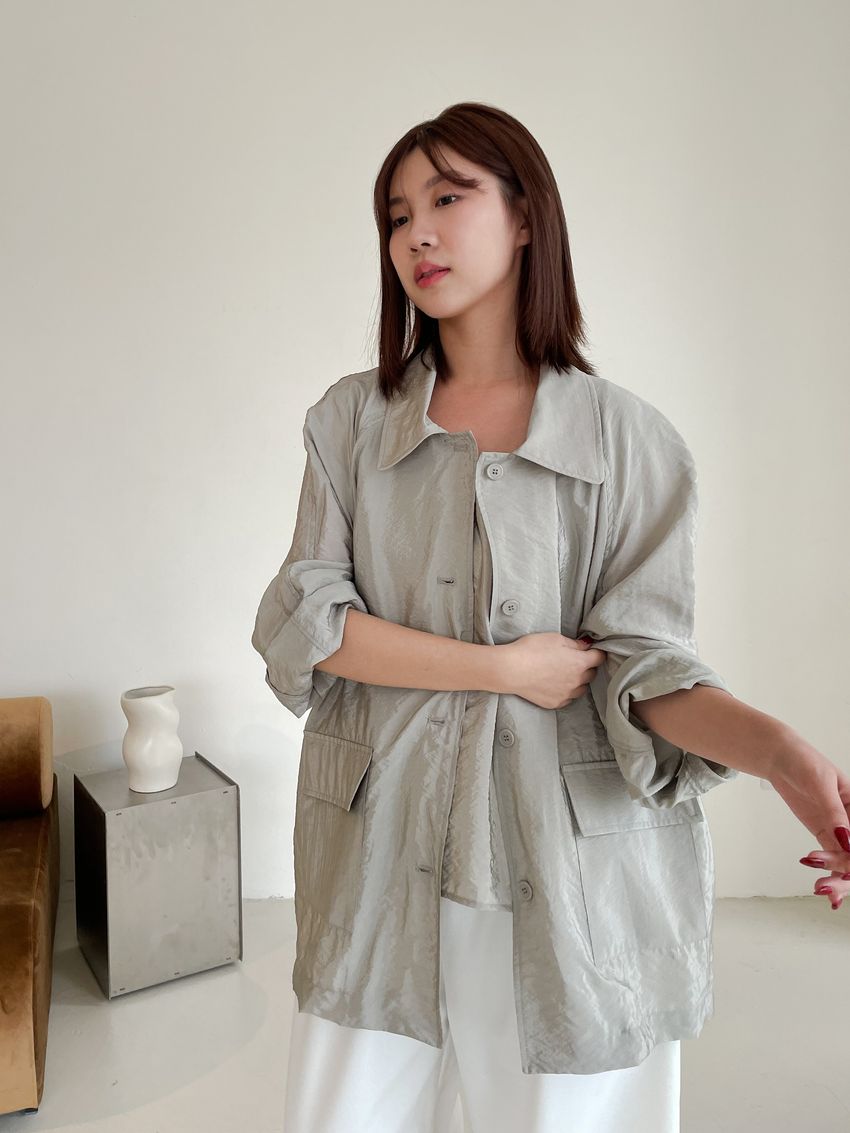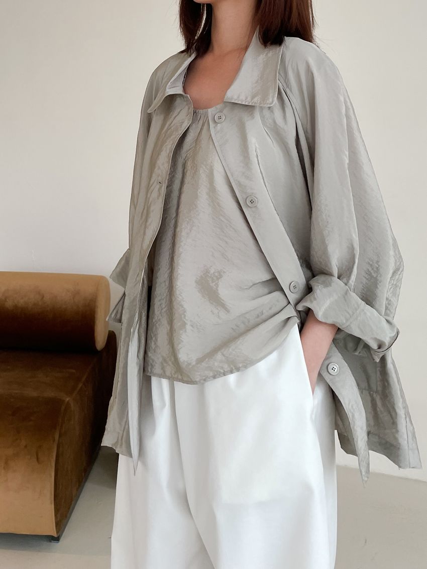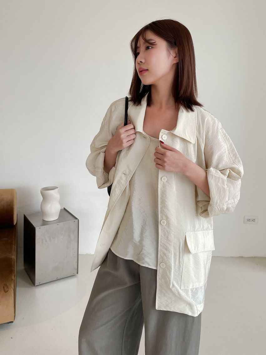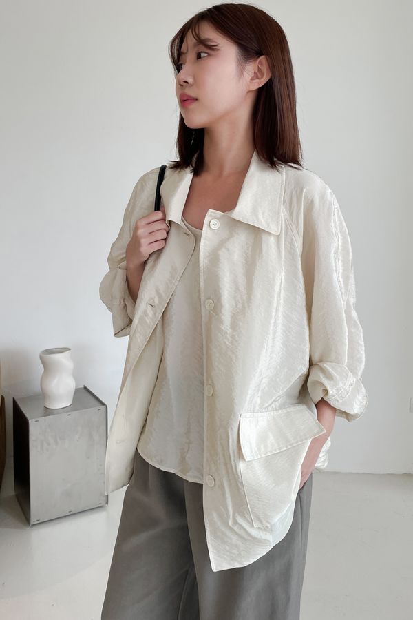 軟料光澤感翻領外套