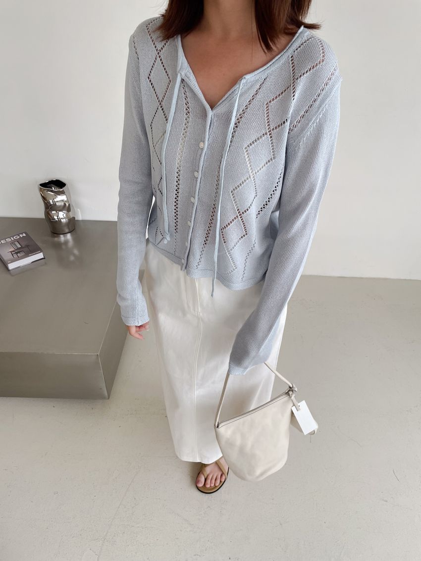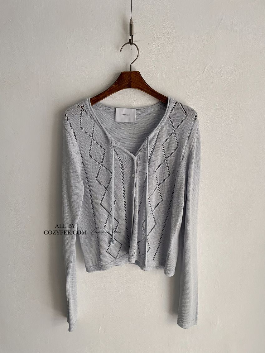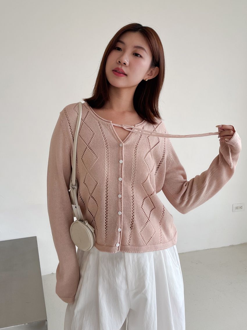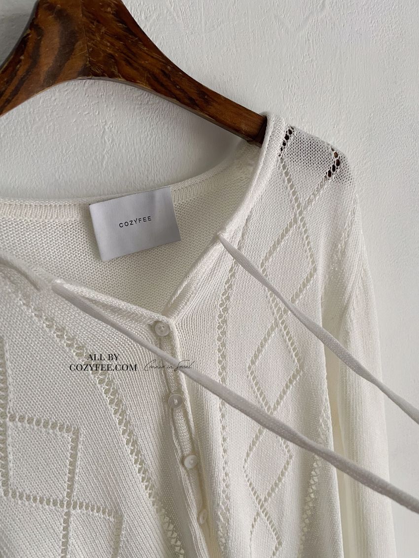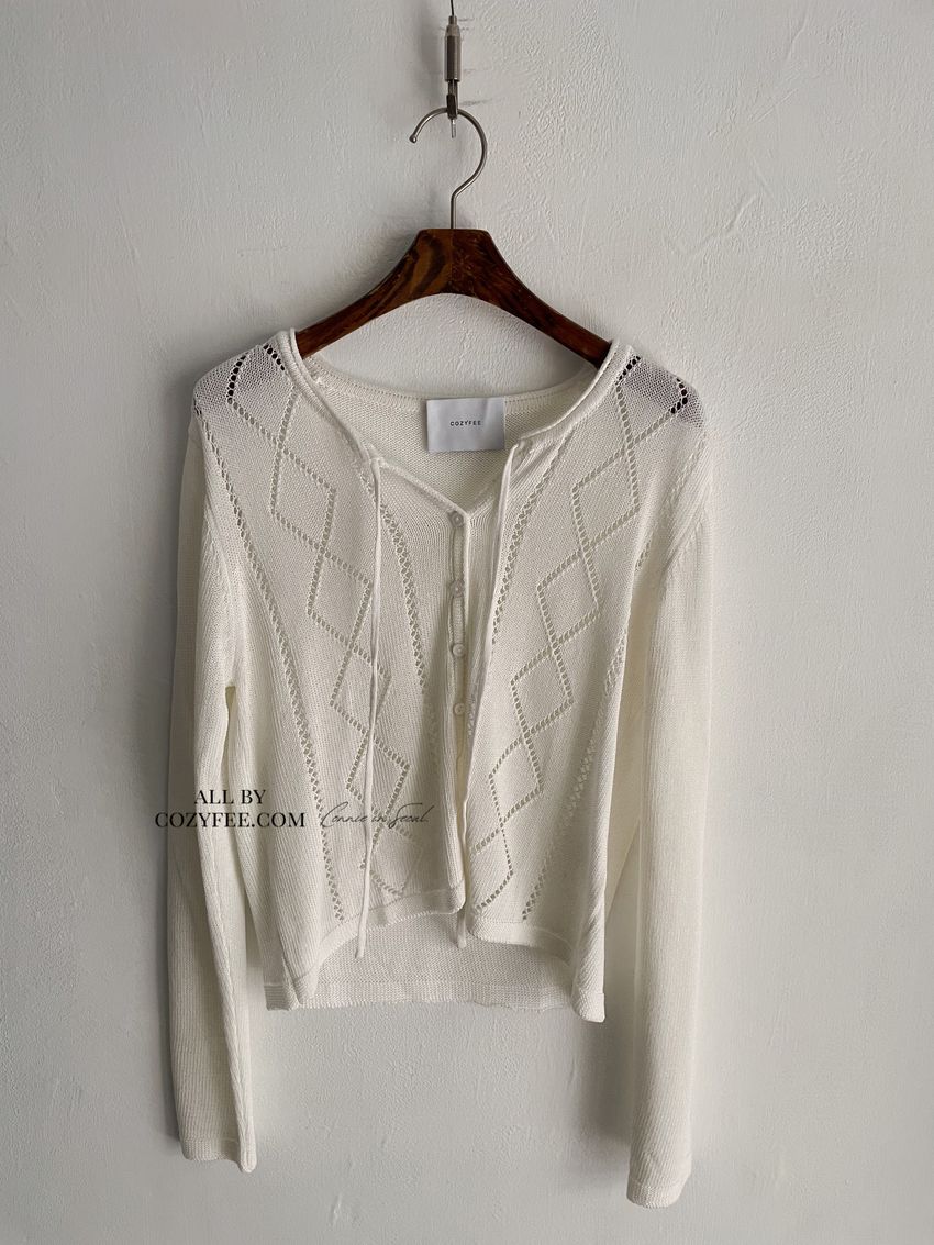> 菱紋簍空細帶針織外套(直播款)