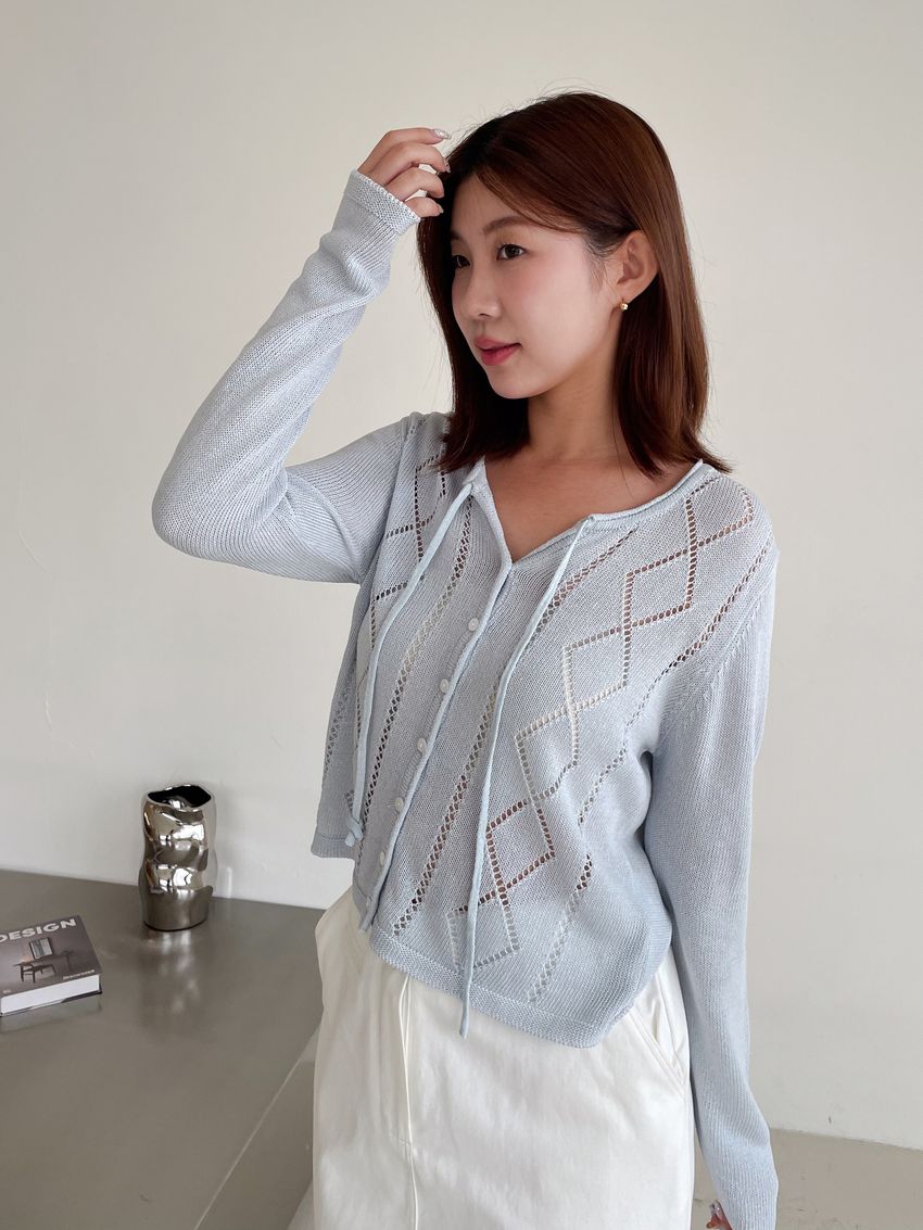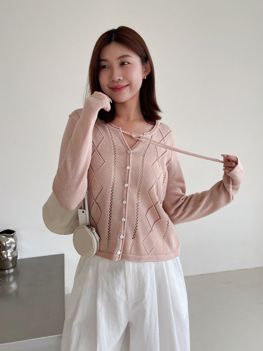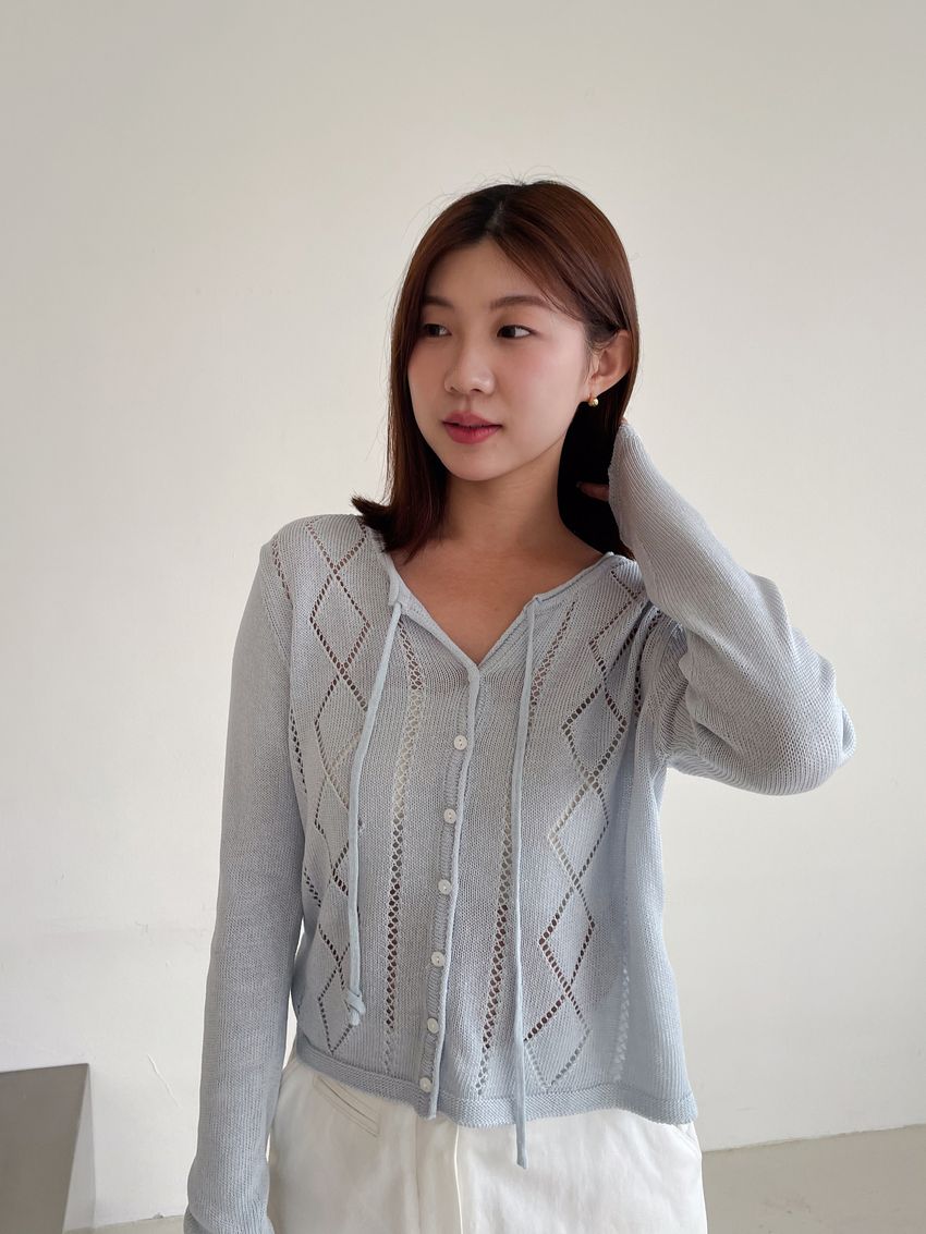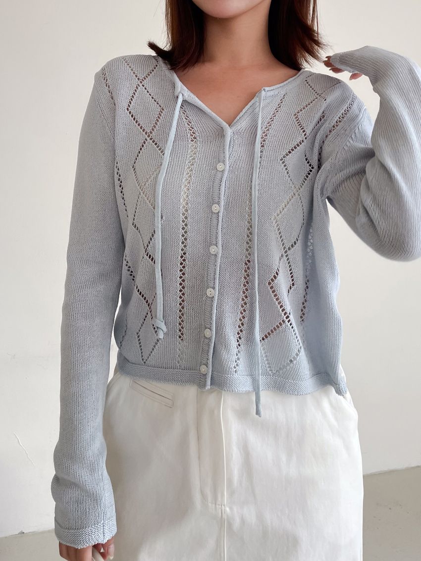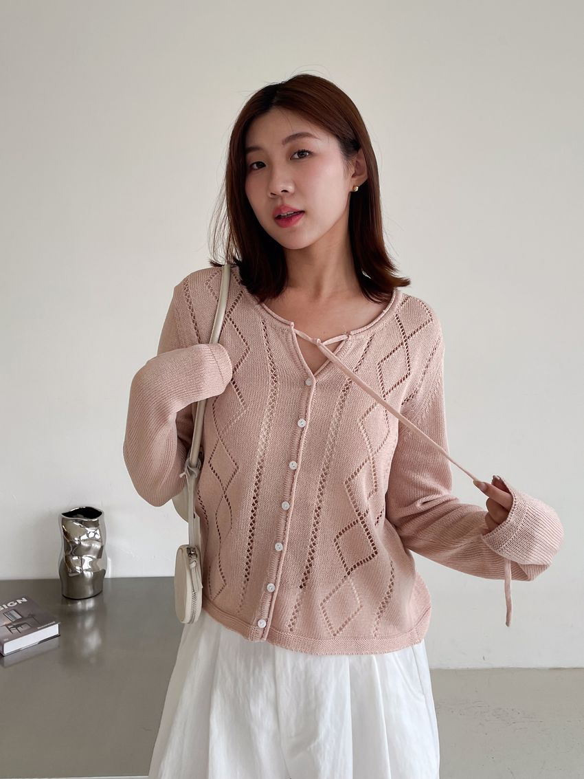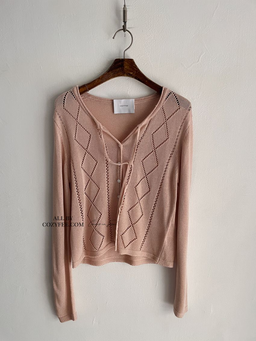 > 菱紋簍空細帶針織外套(直播款)