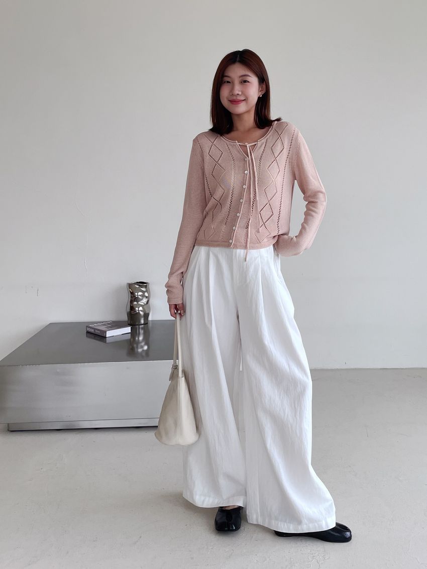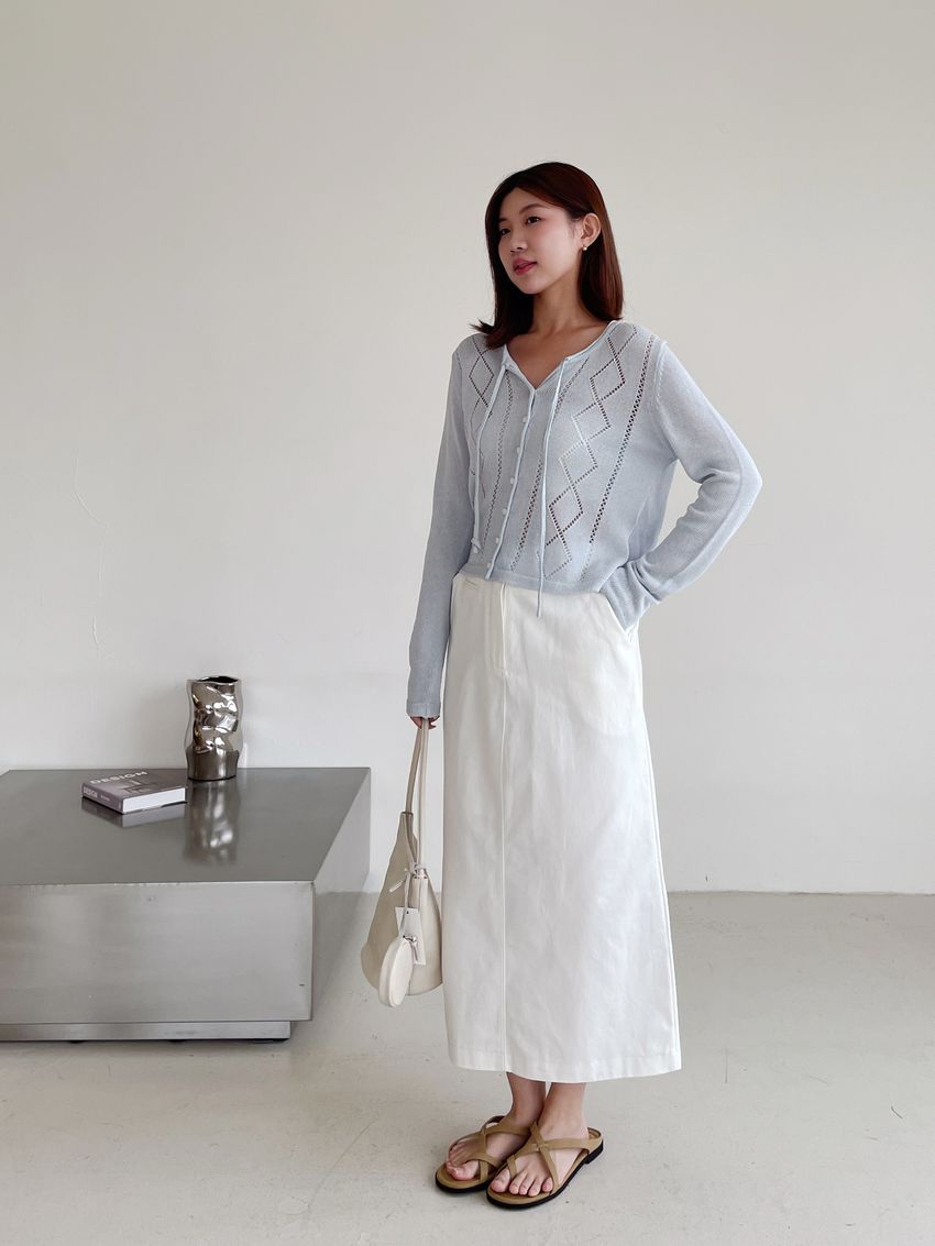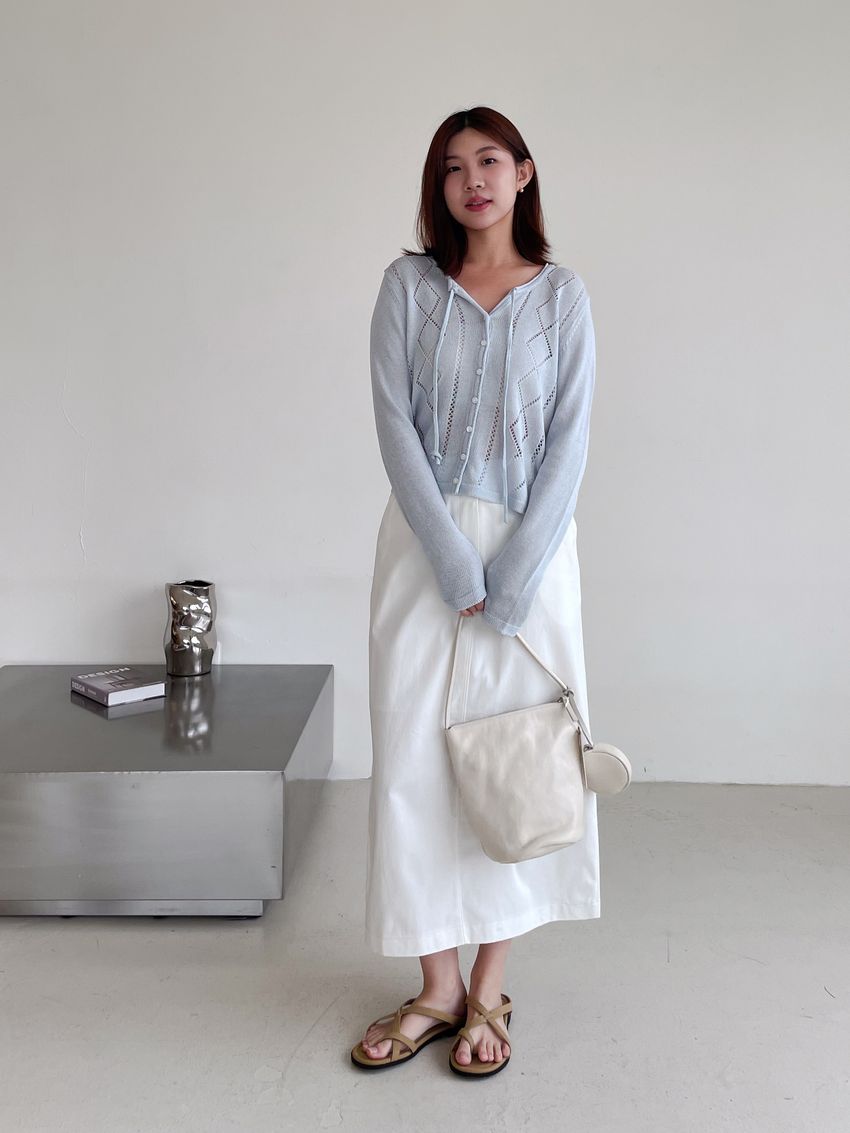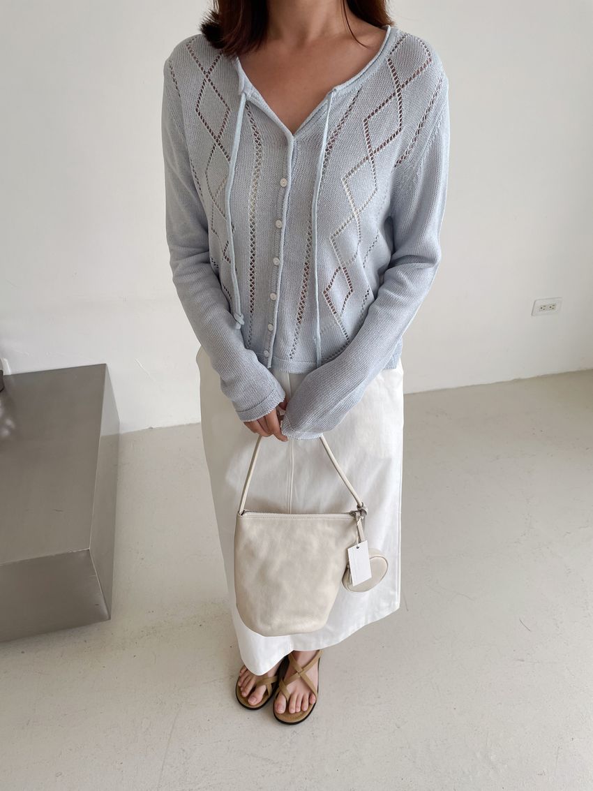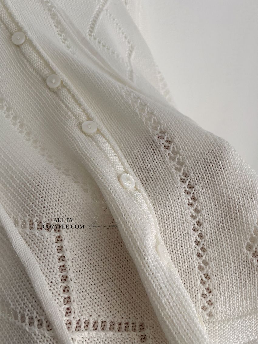 > 菱紋簍空細帶針織外套(直播款)