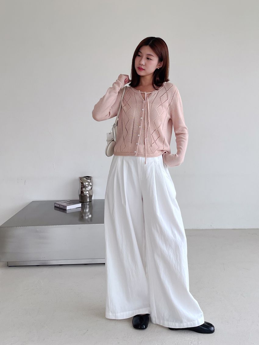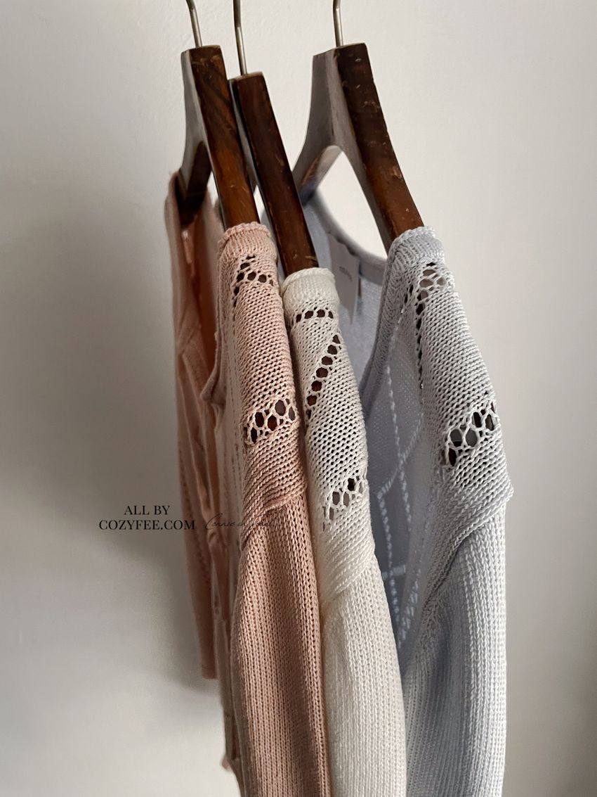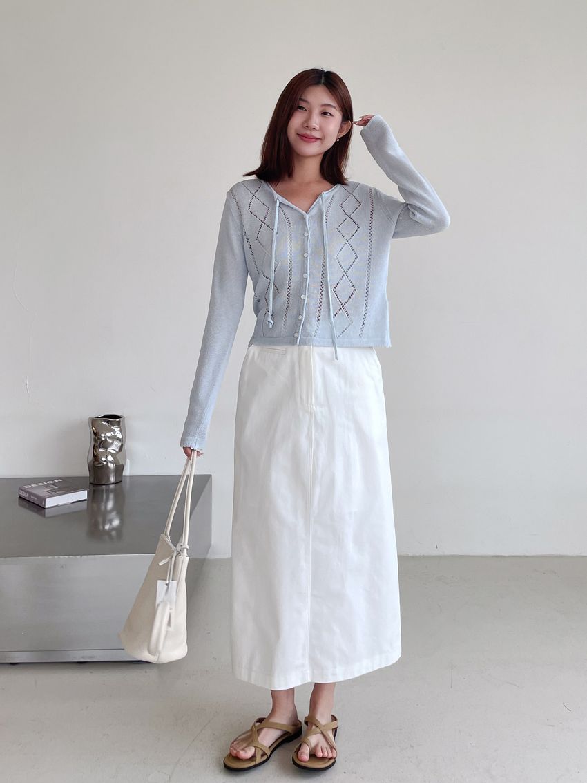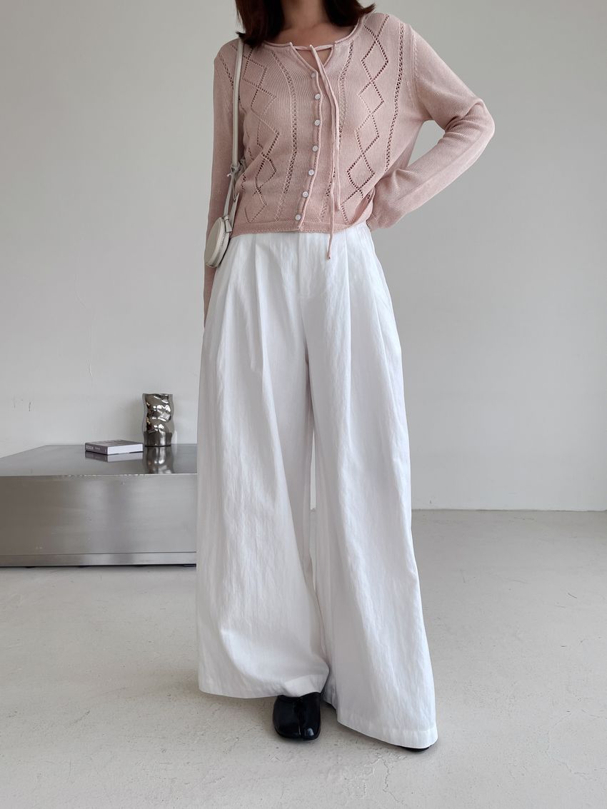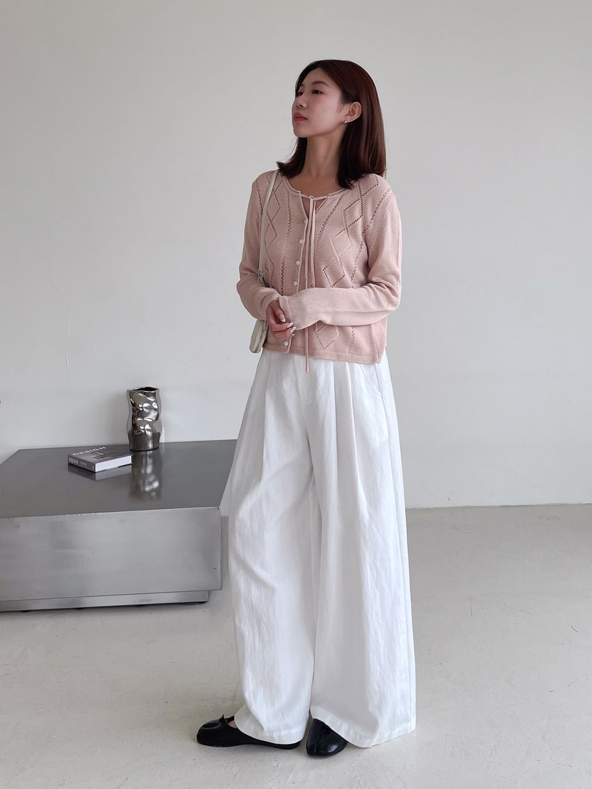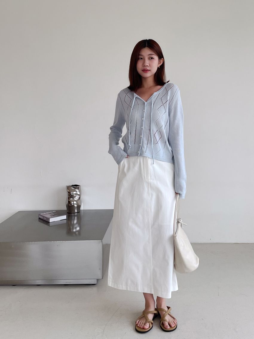 > 菱紋簍空細帶針織外套(直播款)