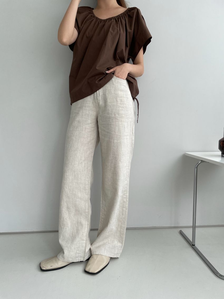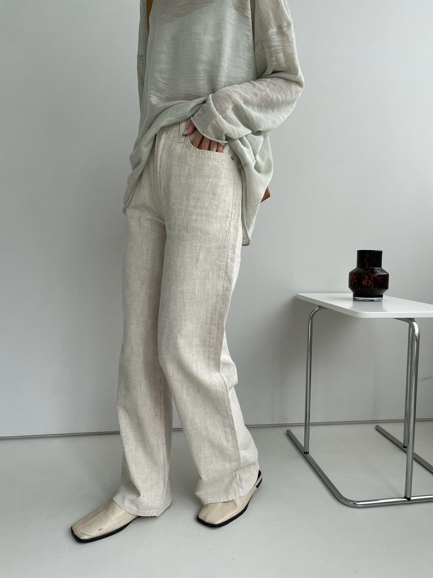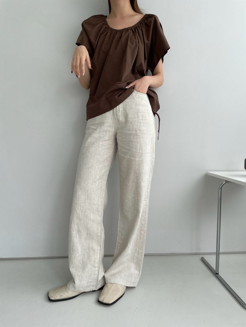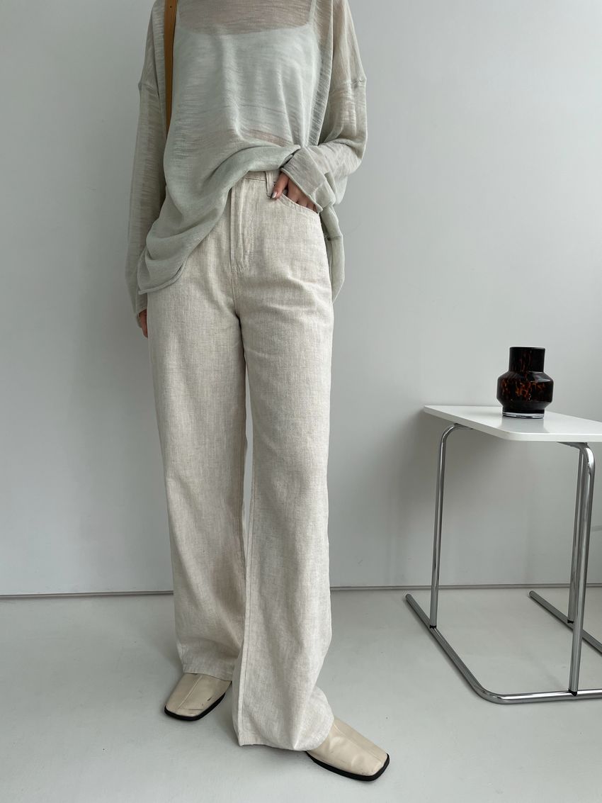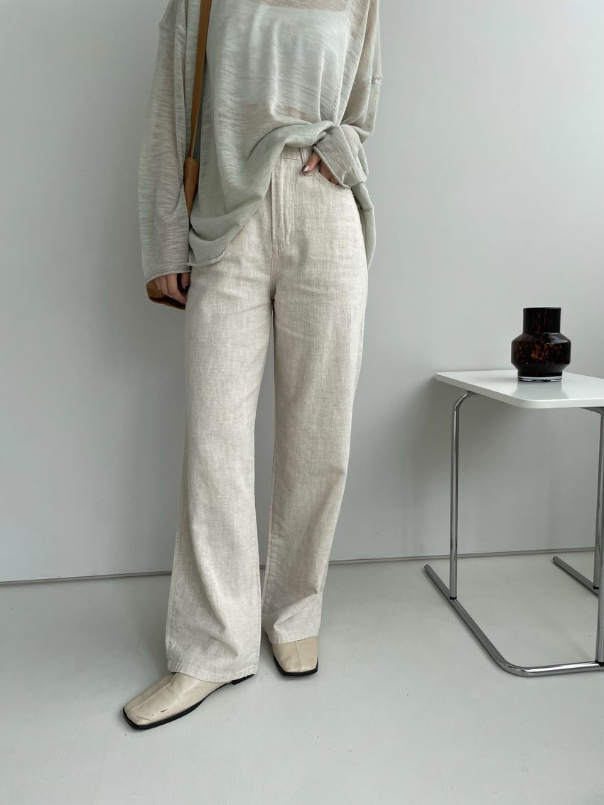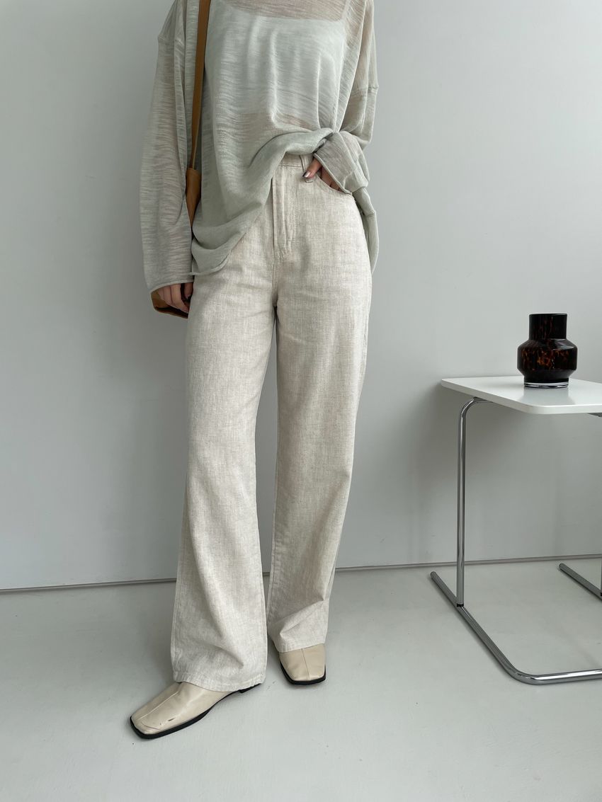 燕麥混色水洗棉麻寬褲(直播影片)(特)