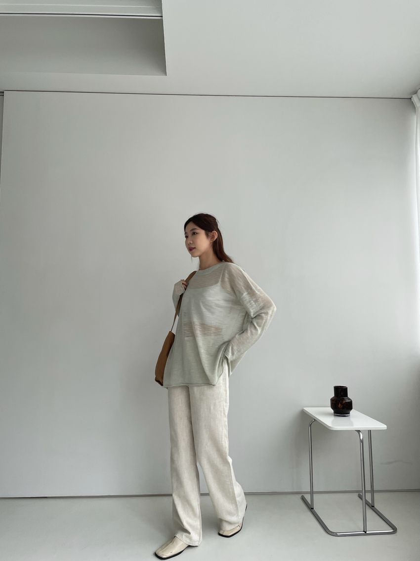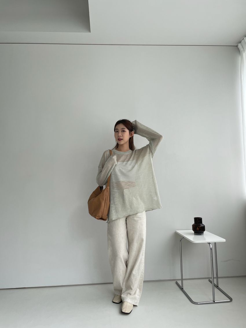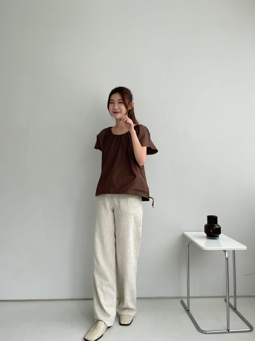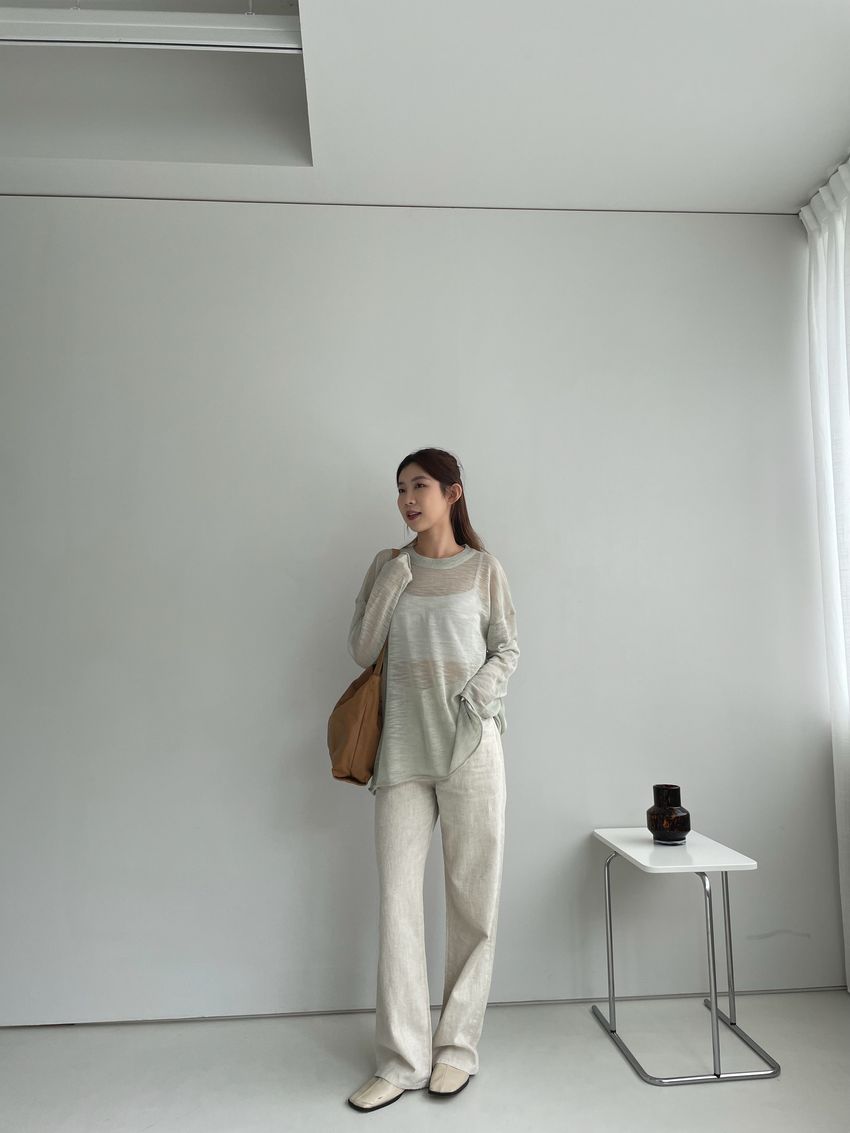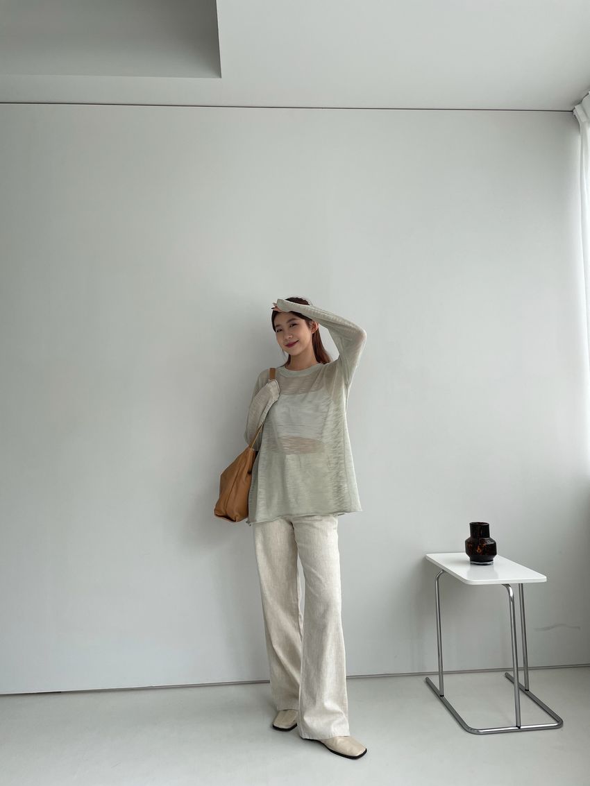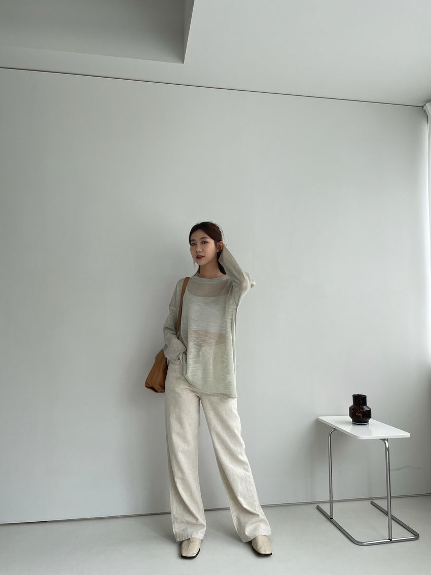 燕麥混色水洗棉麻寬褲(直播影片)(特)