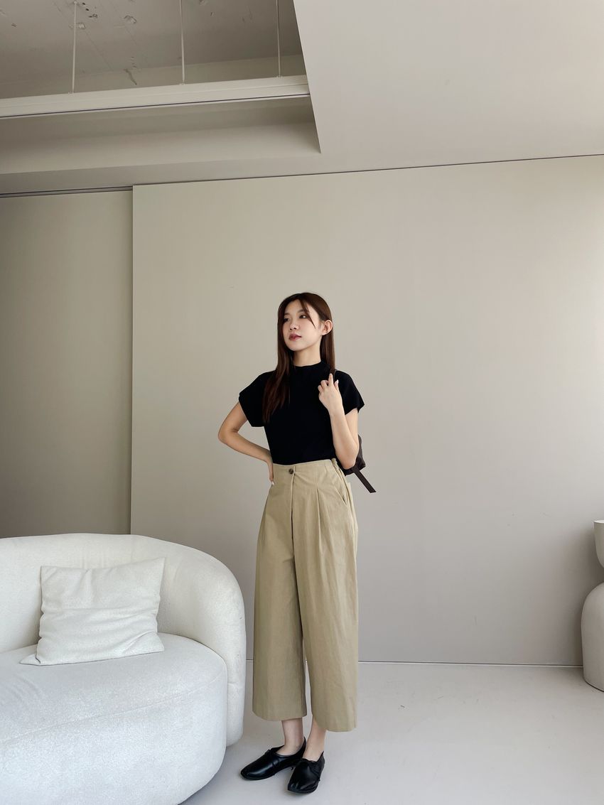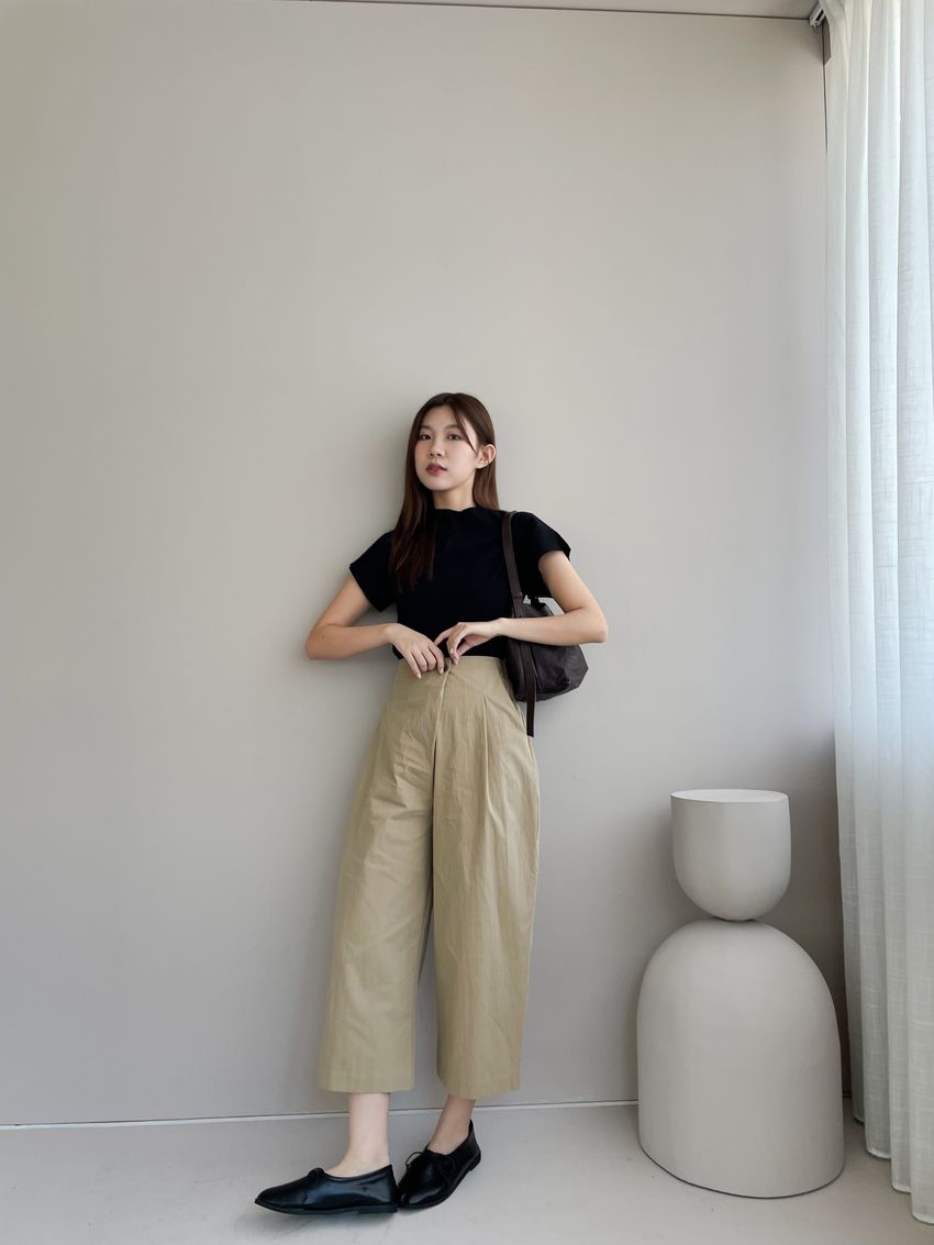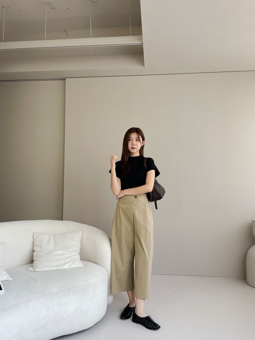 正面褲頭斜壓摺設計 讓整體不會太過休閒