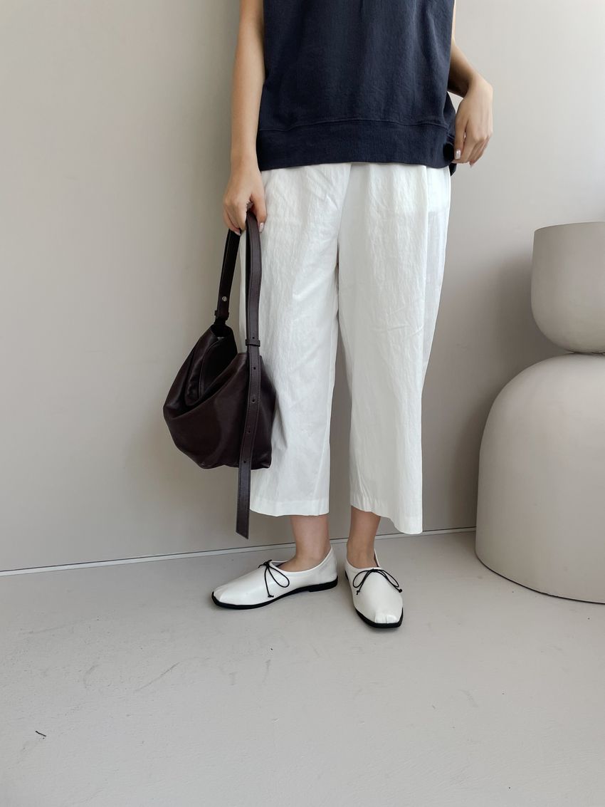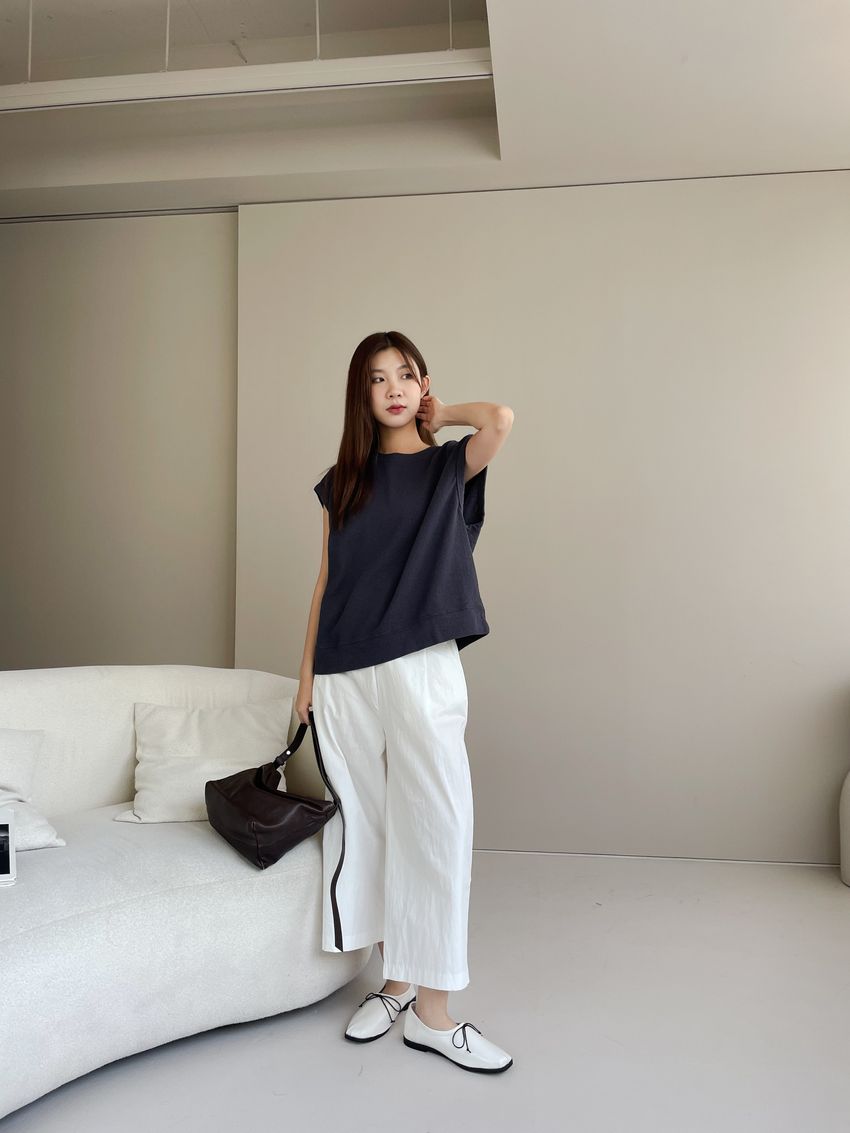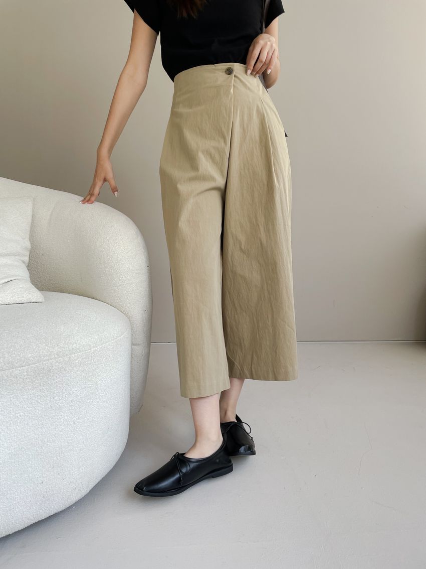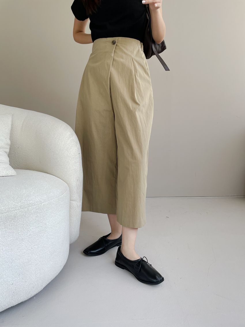 正面褲頭斜壓摺設計 讓整體不會太過休閒