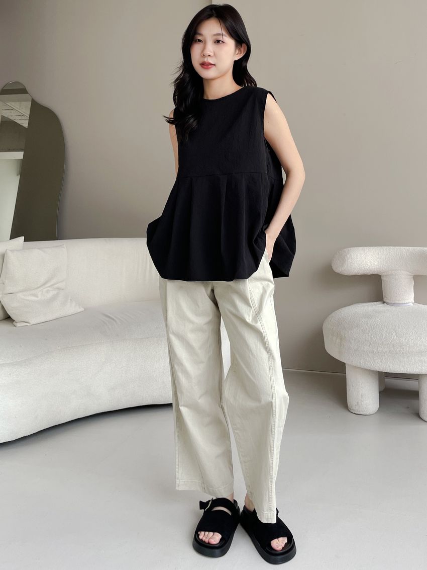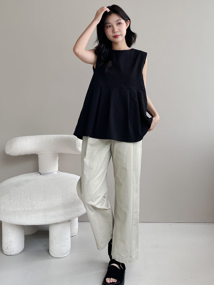 > 水洗棉單摺小寬褲(直播影片)(特)