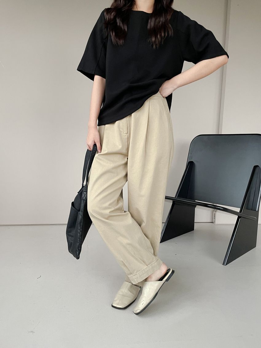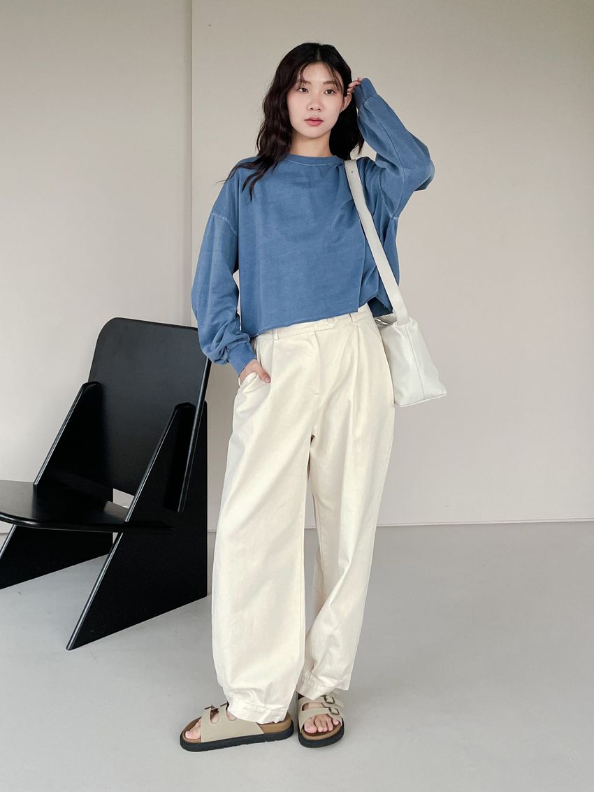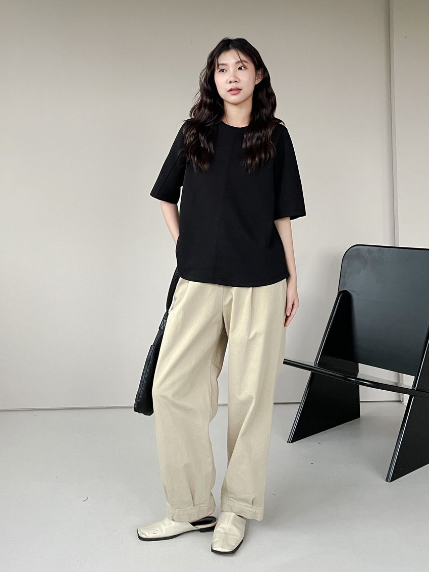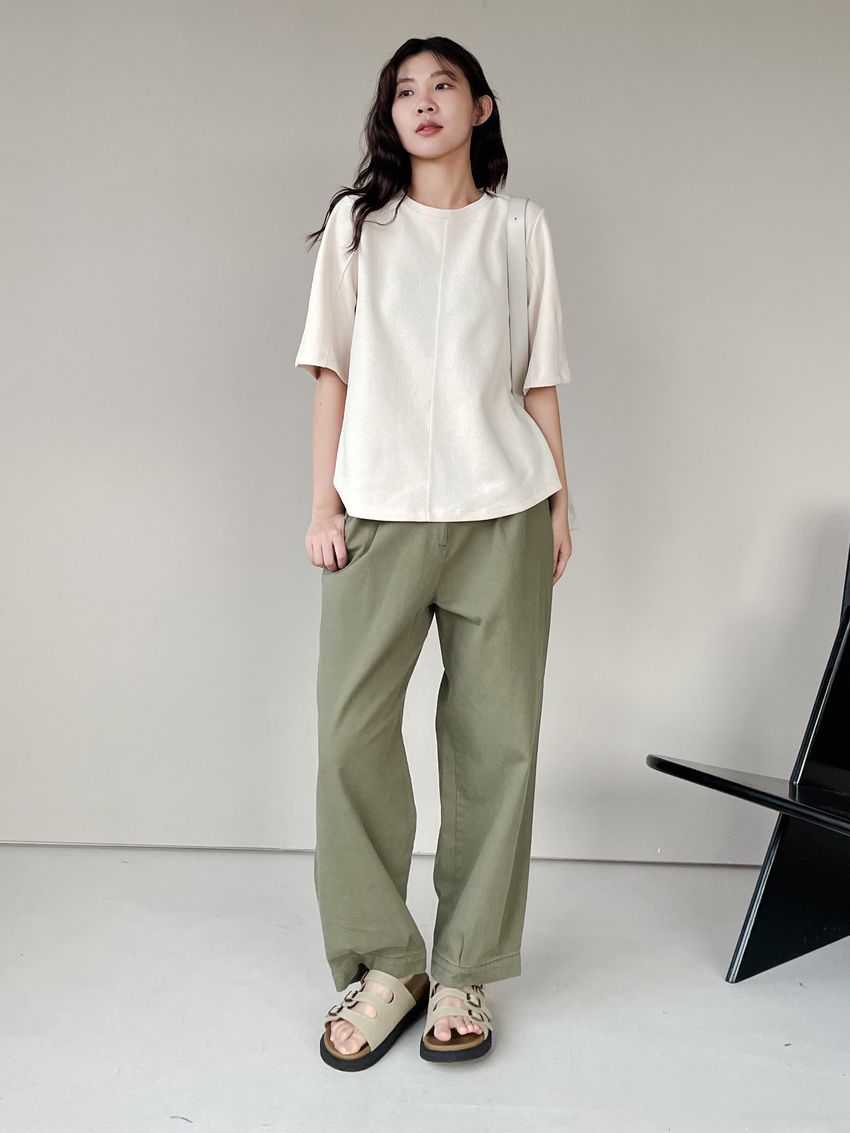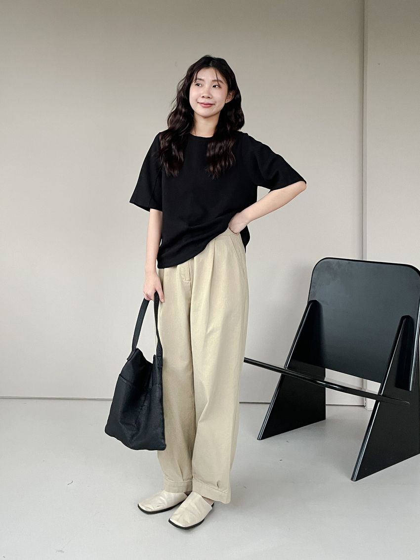 褲腳壓摺收邊設計 內縮褲腳 褲子版型略帶圓弧感