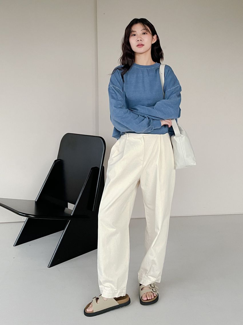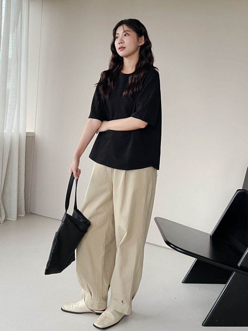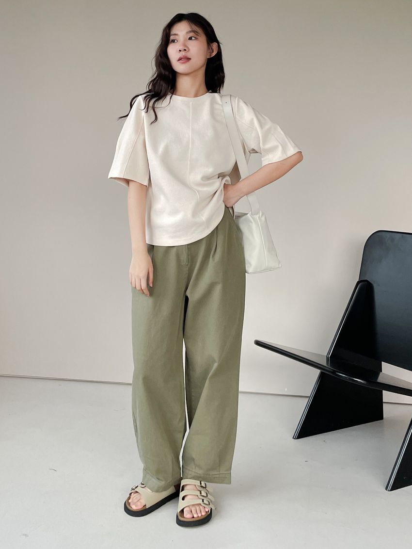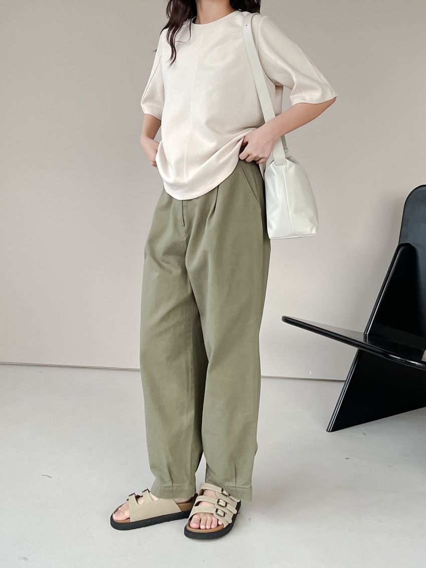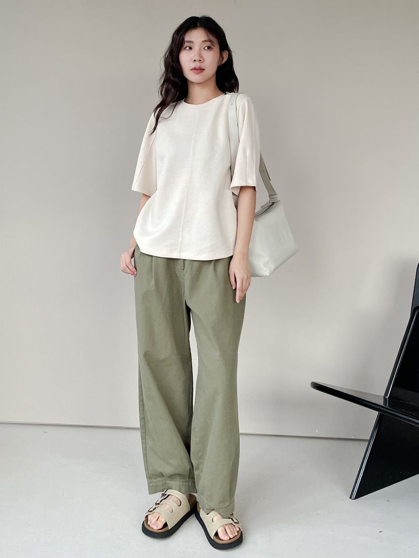 褲腳壓摺收邊設計 內縮褲腳 褲子版型略帶圓弧感