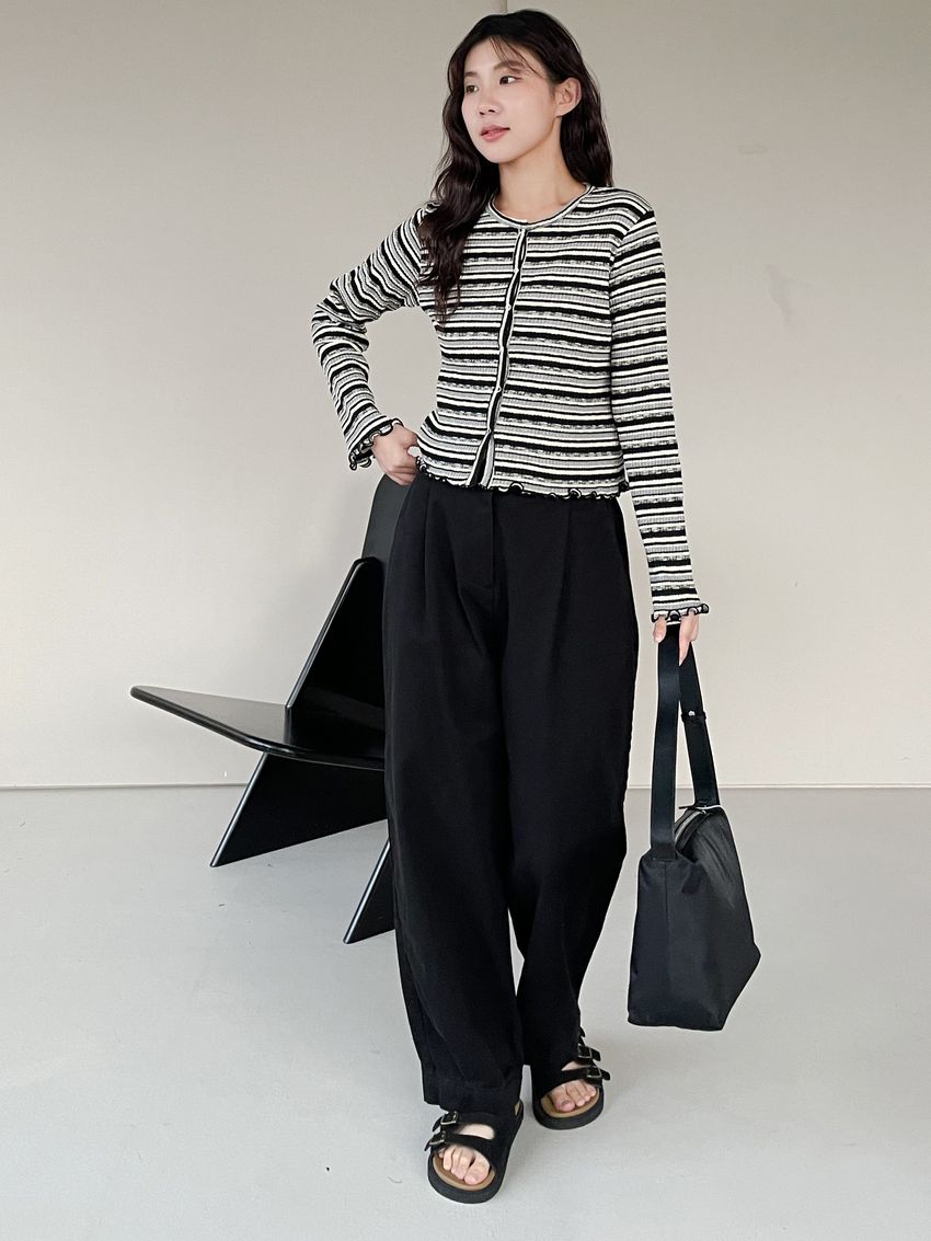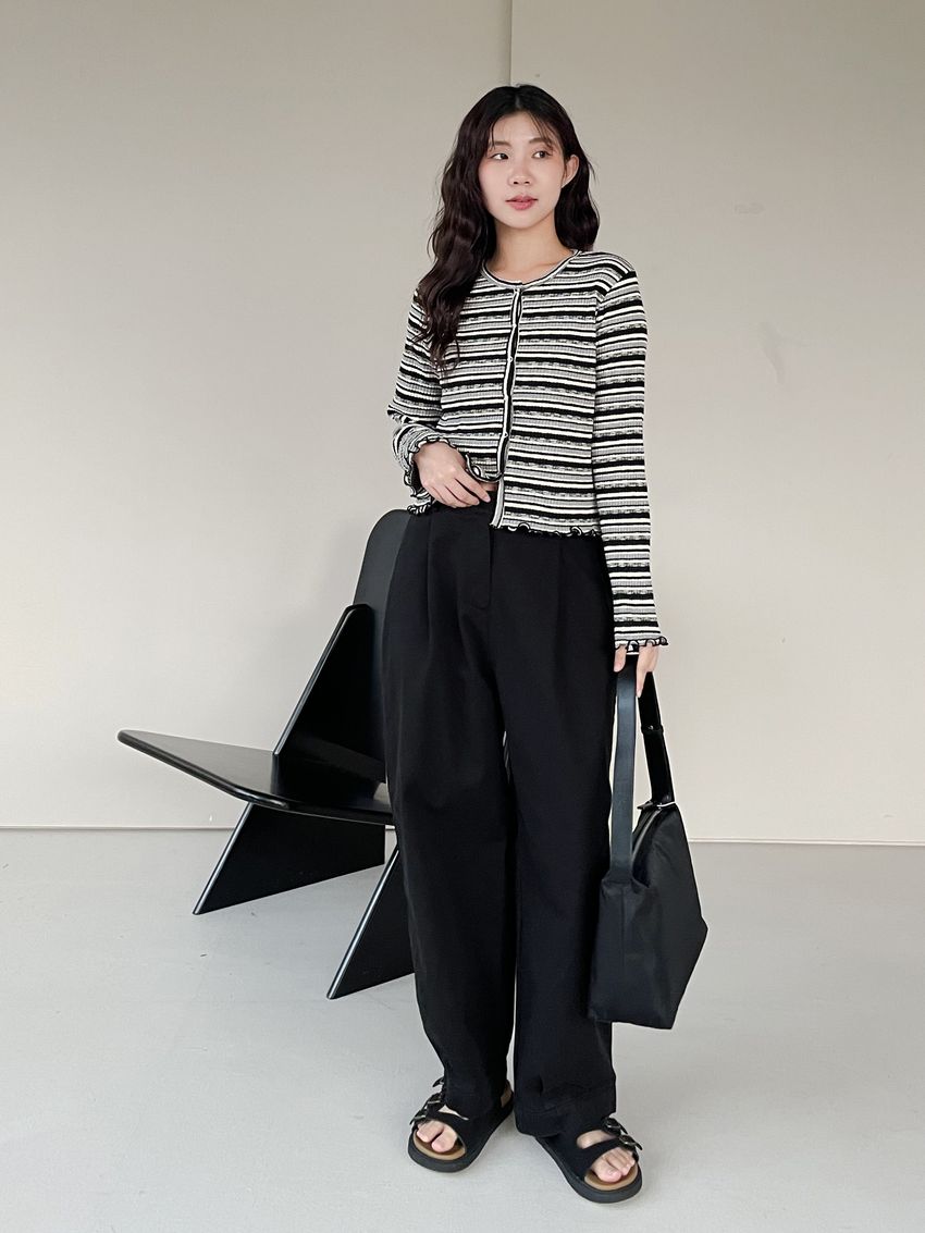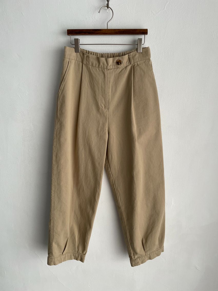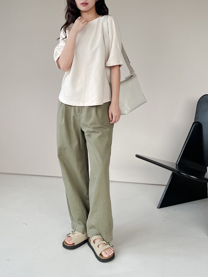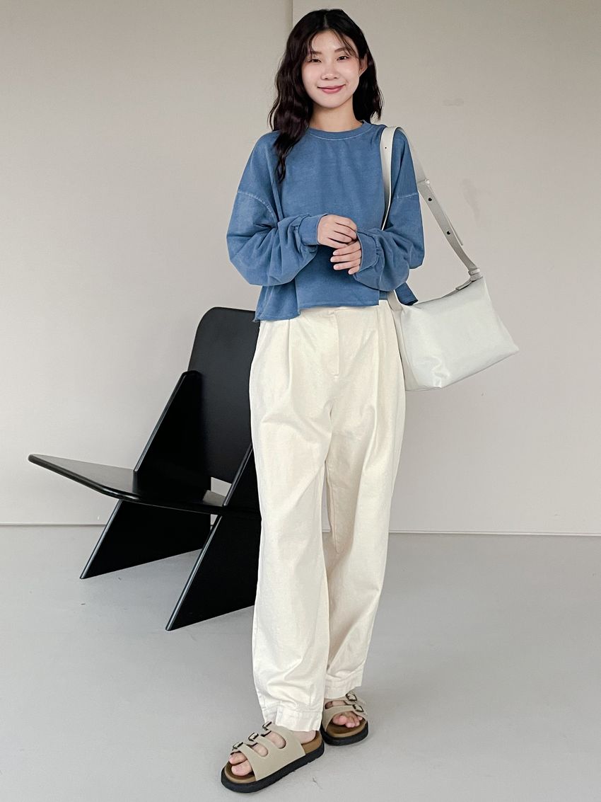 褲腳壓摺收邊設計 內縮褲腳 褲子版型略帶圓弧感